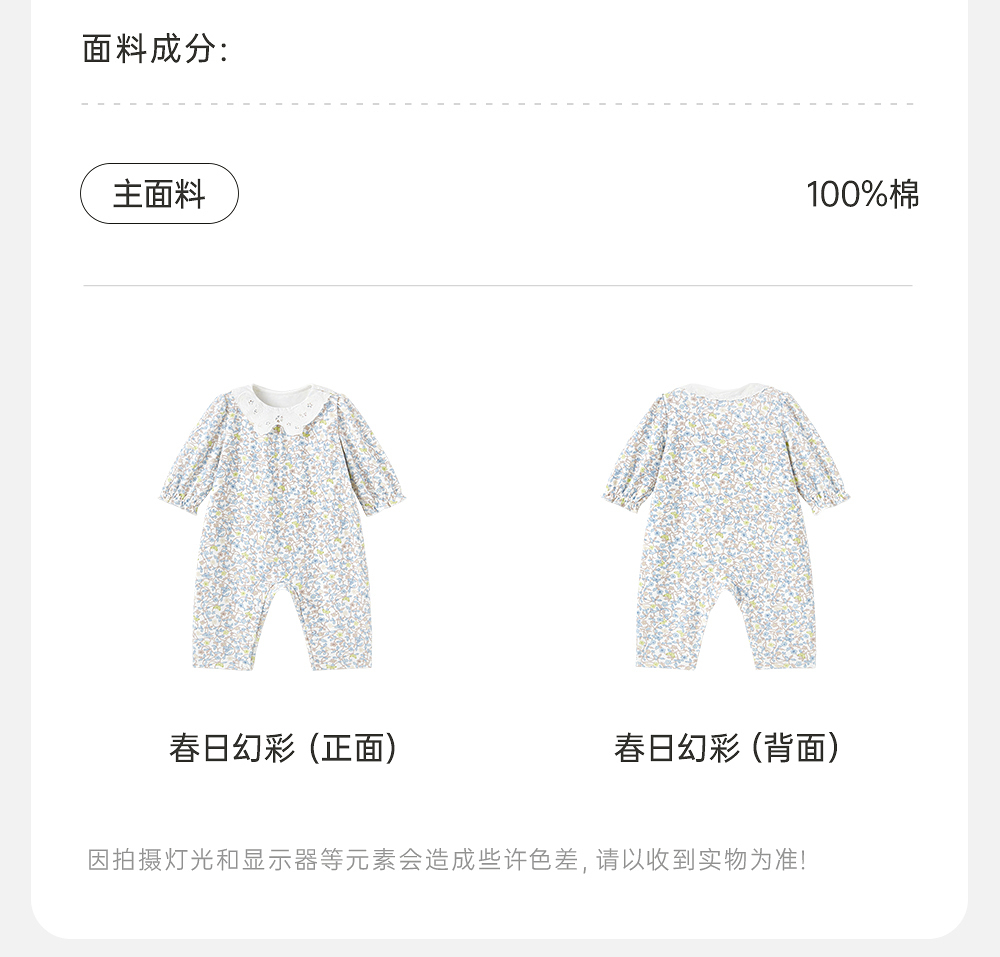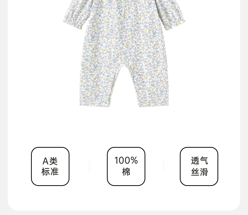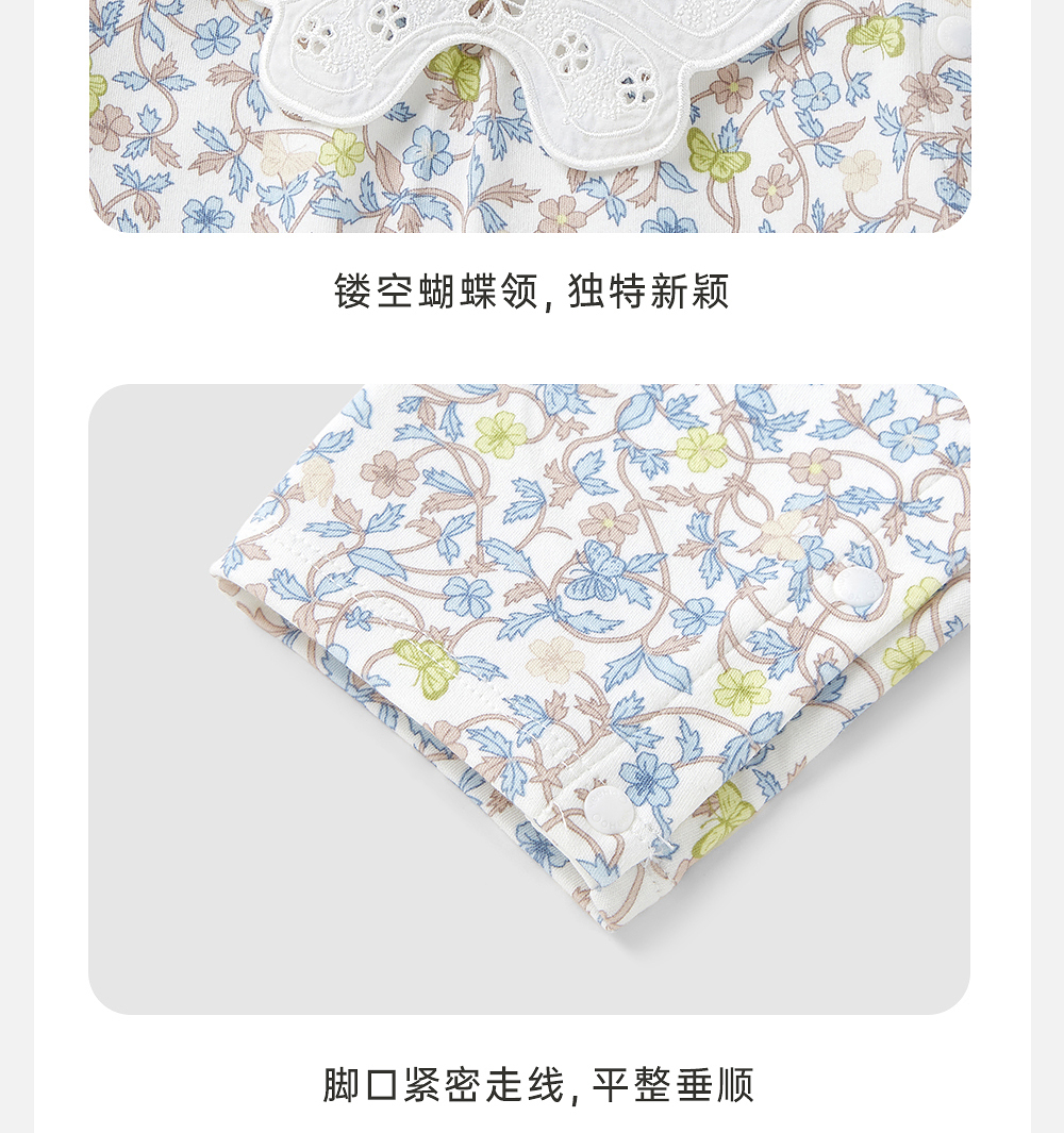【商场同款】英氏婴儿衣服夏长袖透气女童印花连体衣纯棉2025新款