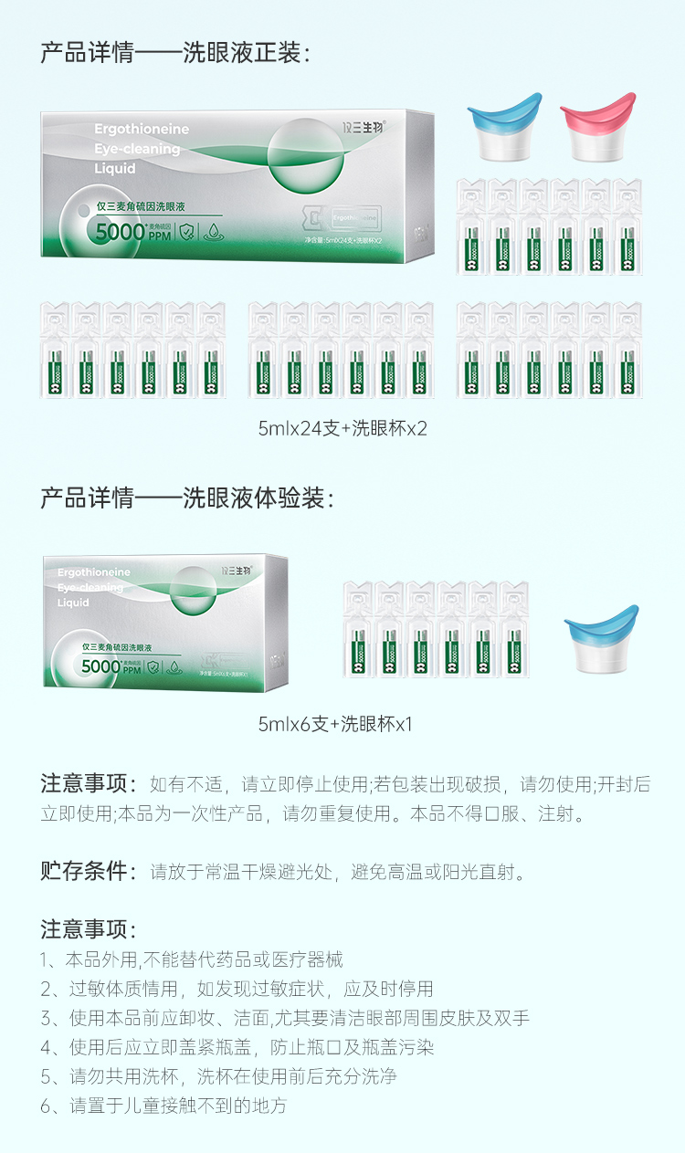 【GENEIII】仅三麦角硫因次抛洗眼液纯洗款5mk*24支+洗眼杯*2