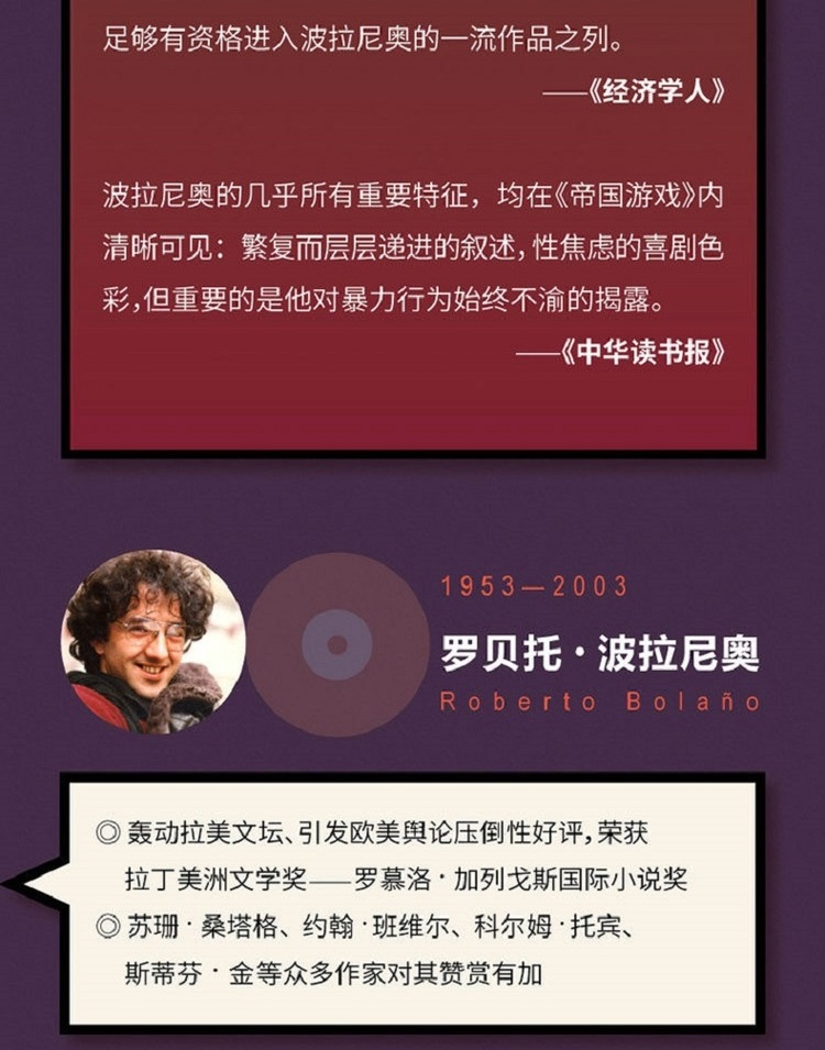 • “《帝国游戏》可以当作《2666》的长序言来读——它试图探索波拉尼奥深信的那种潜伏在每个人内心深处的残忍暴行的起源。就像托尔斯泰在一百多年前所说的那样,把战争当作战争,而非游戏。”