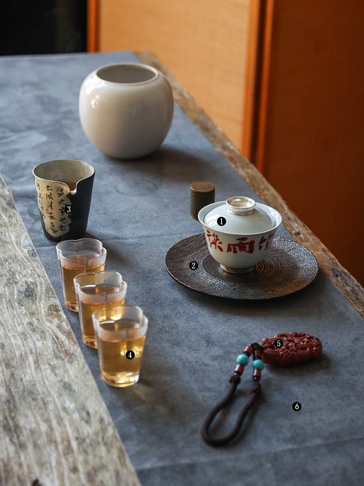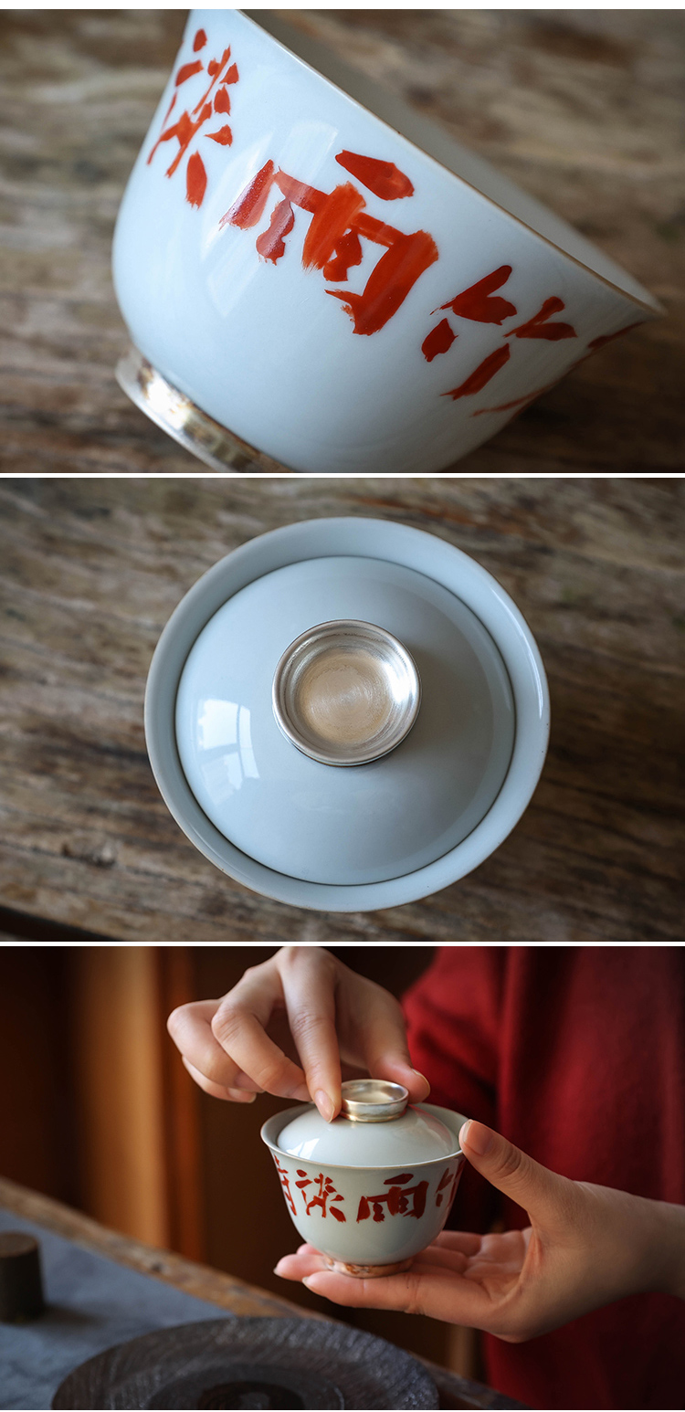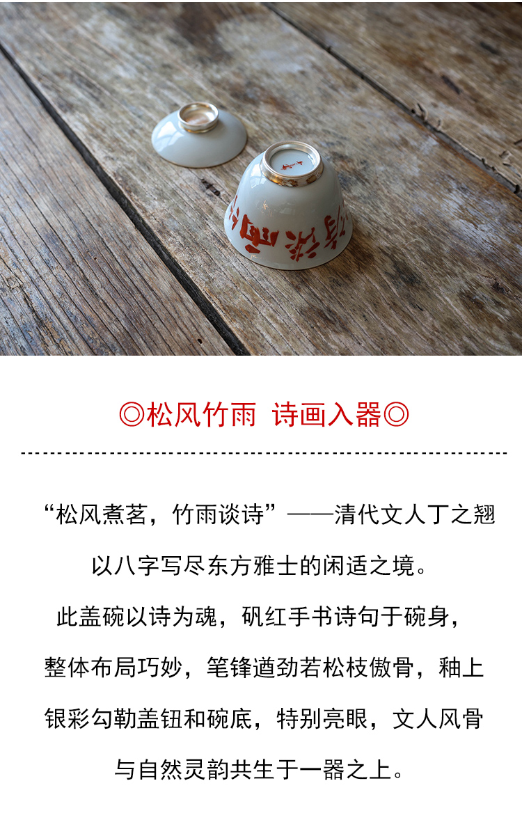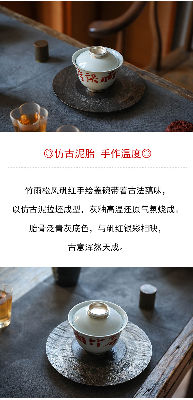 茶香记 乎上堂竹雨松风矾红手绘盖碗150ml景德镇陶瓷泡茶碗茶具