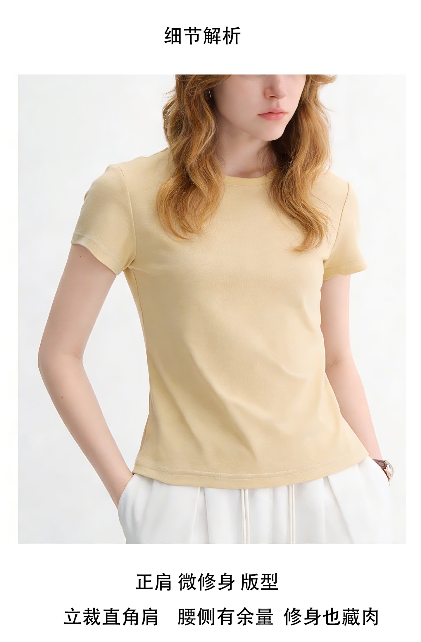 【品名】LS竹纤维莱赛尔女士简约半袖6905