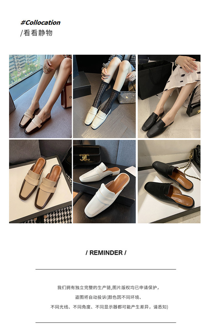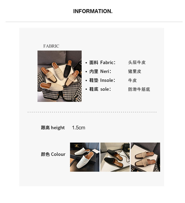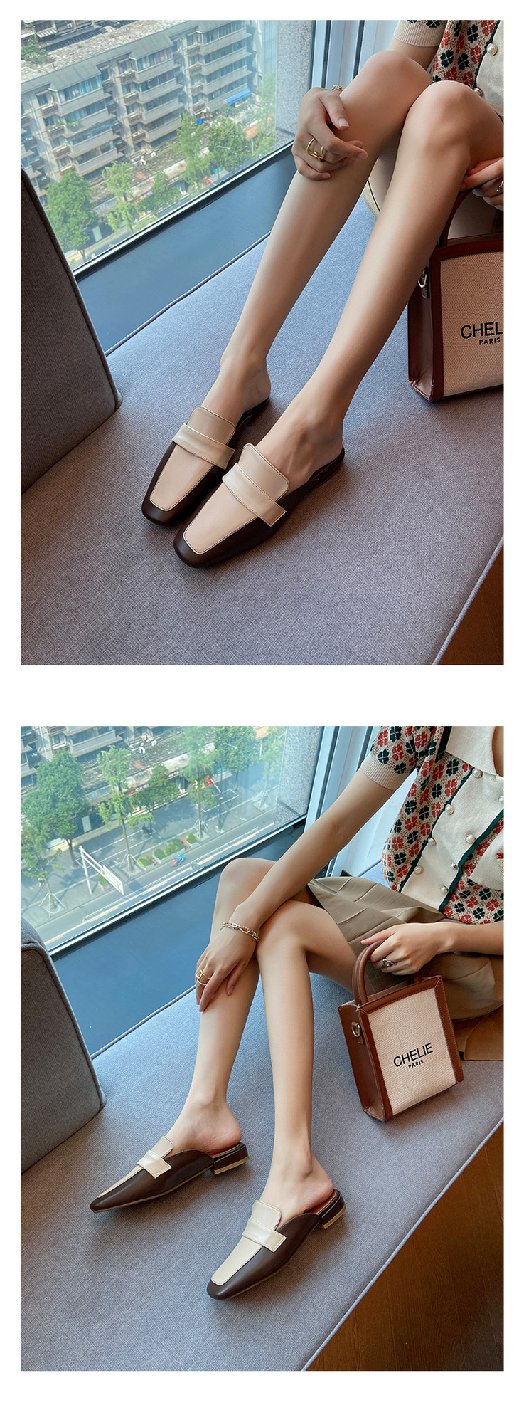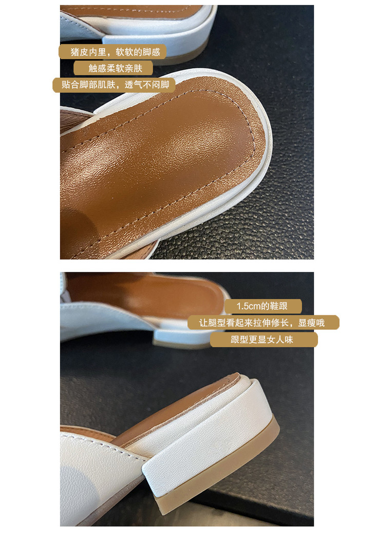 CV5071 新款包头套脚中跟女士半拖鞋韩版时尚方头搭扣懒人鞋休闲鞋