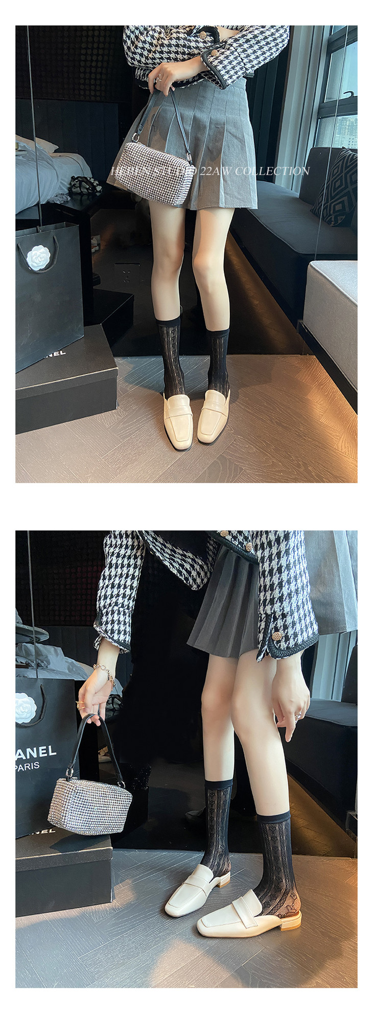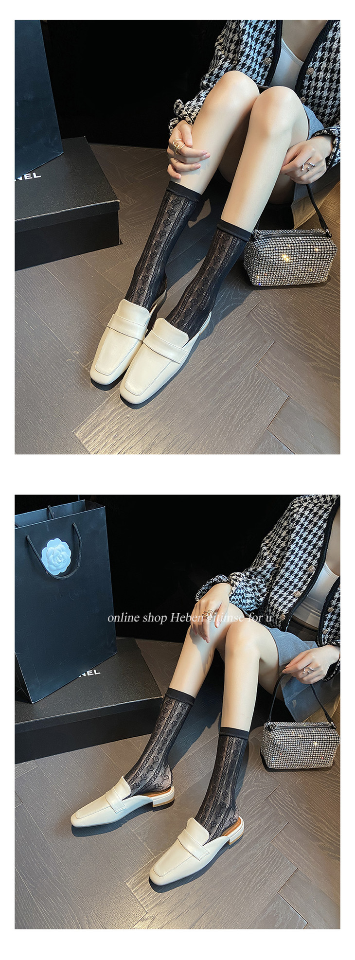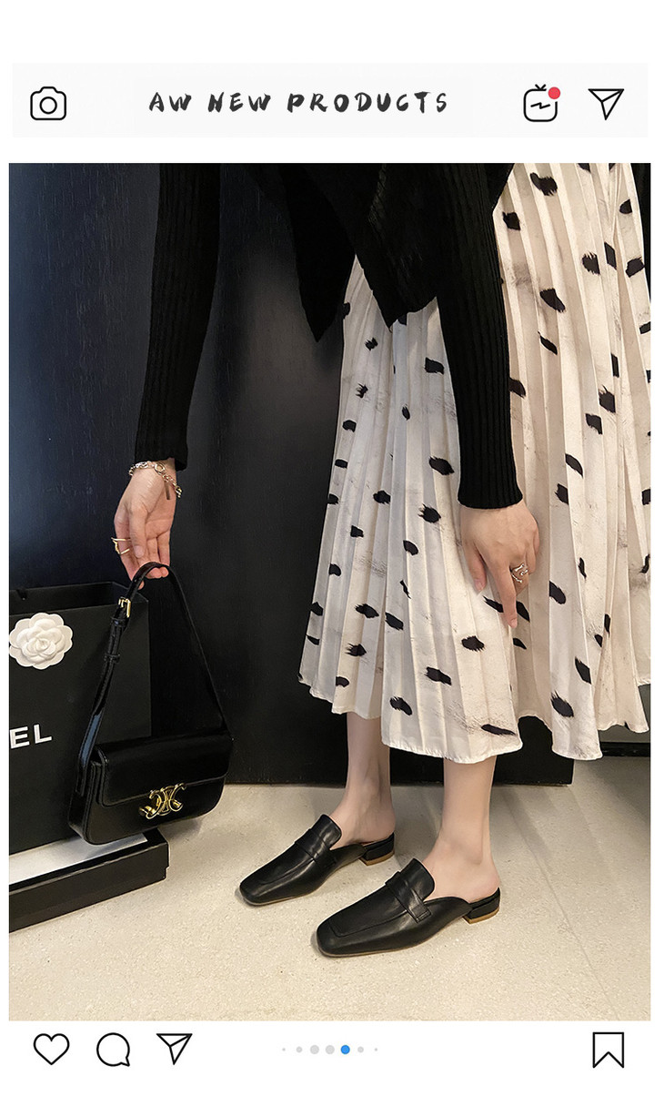 CV5071 新款包头套脚中跟女士半拖鞋韩版时尚方头搭扣懒人鞋休闲鞋