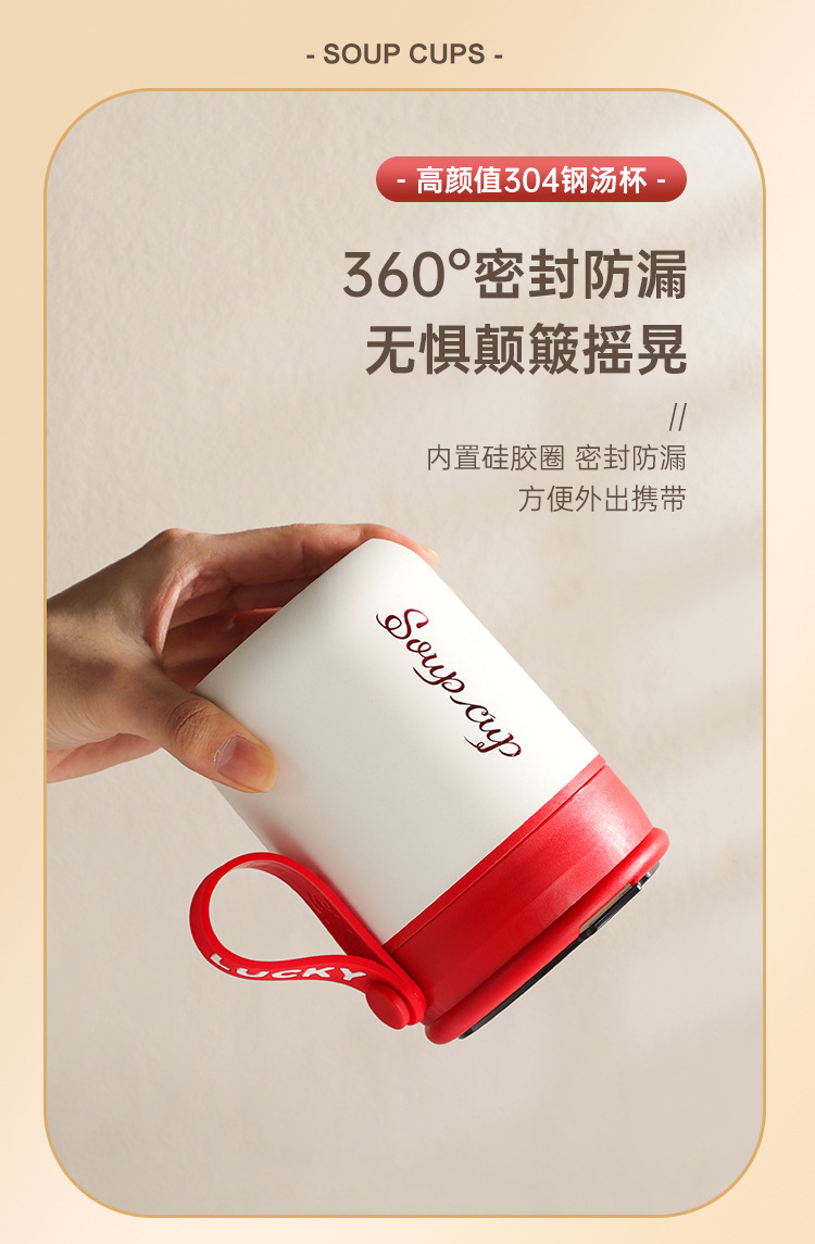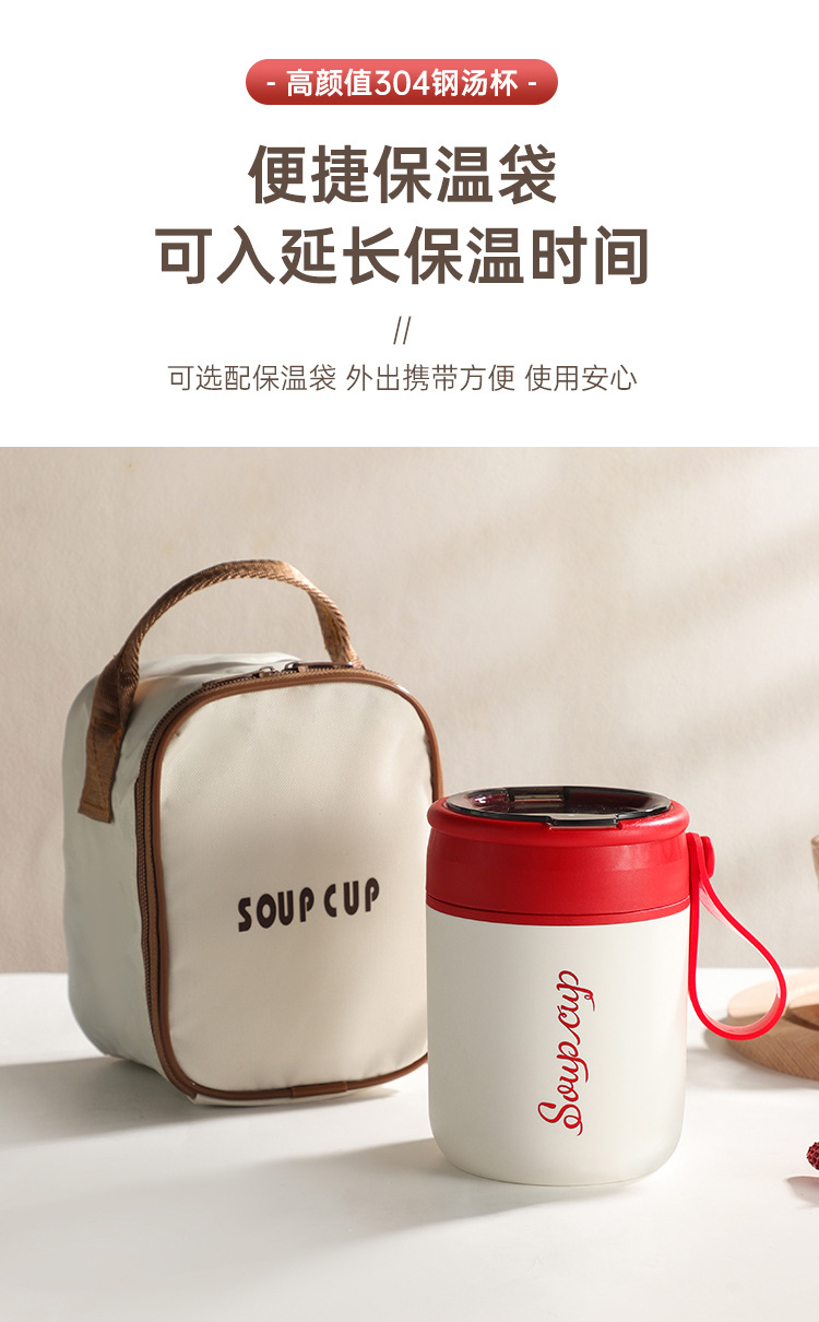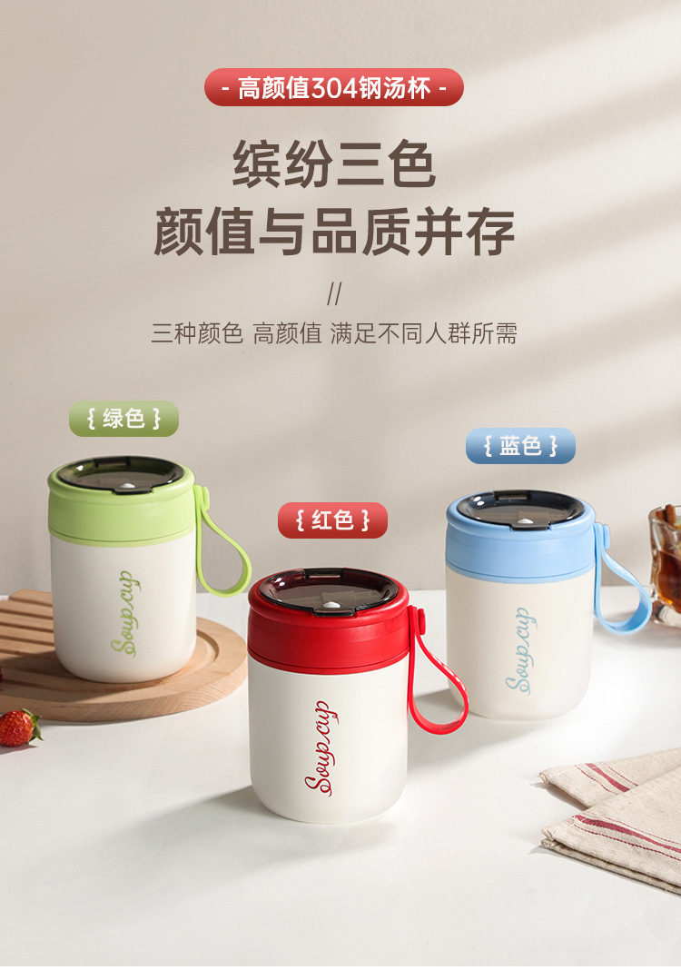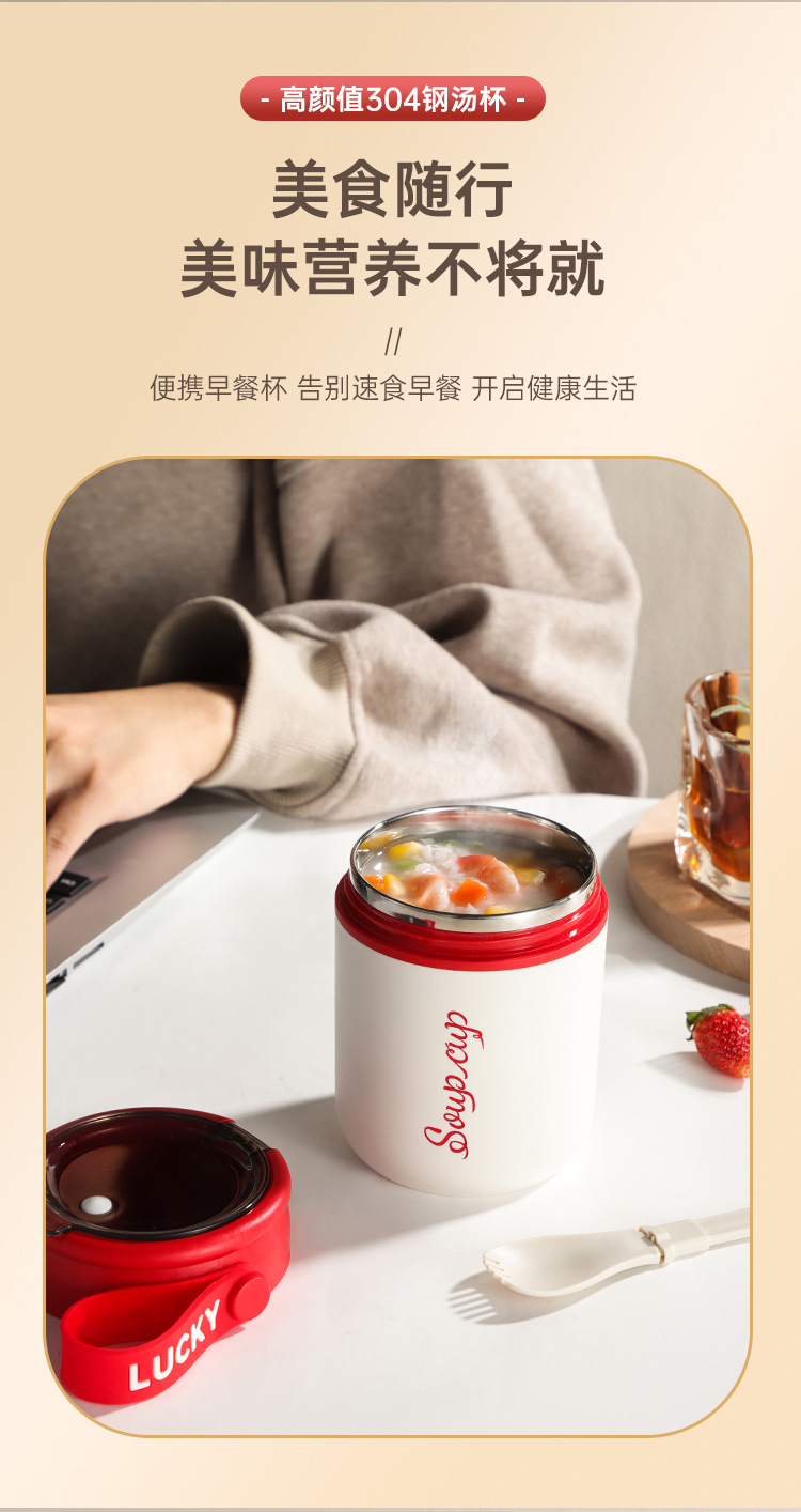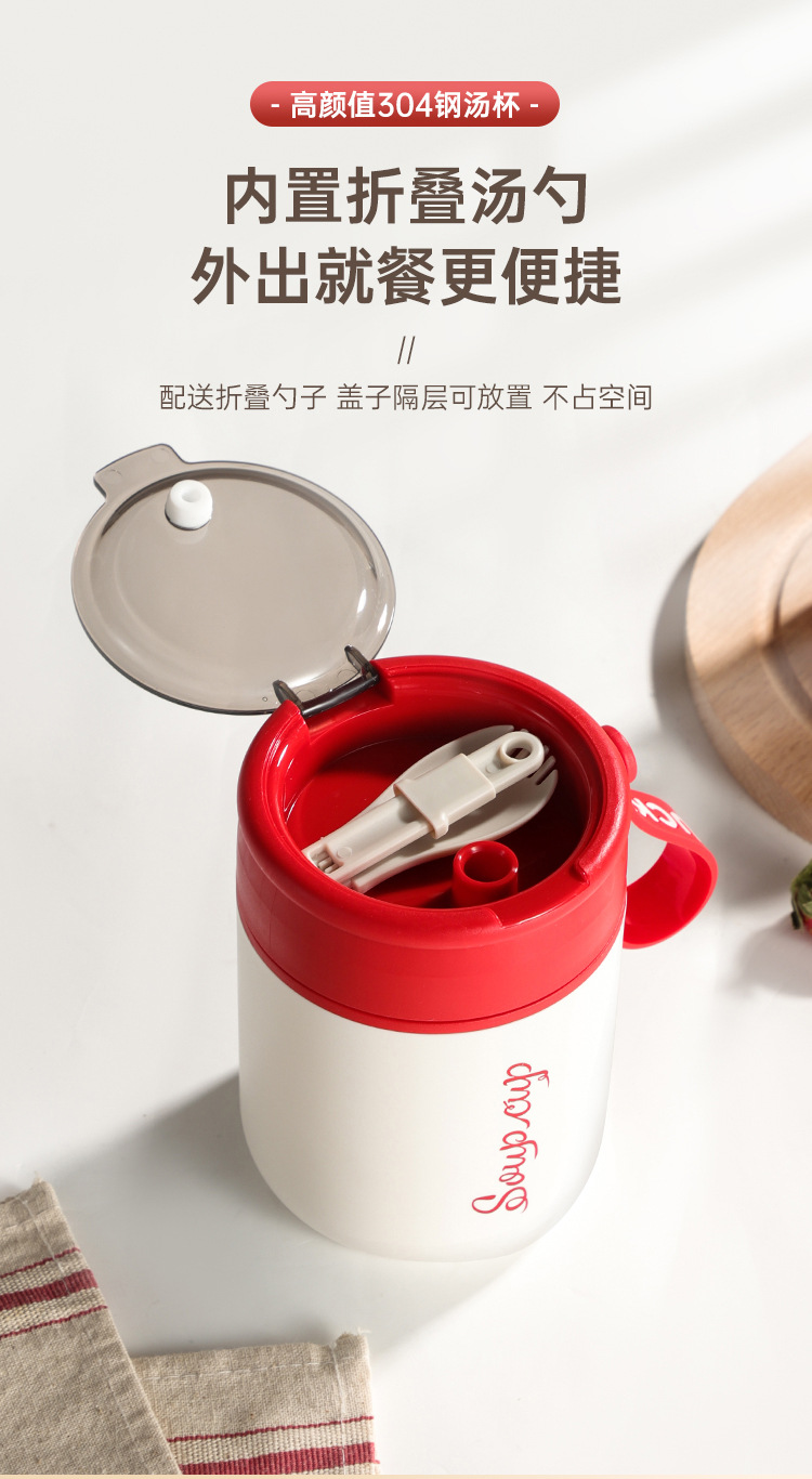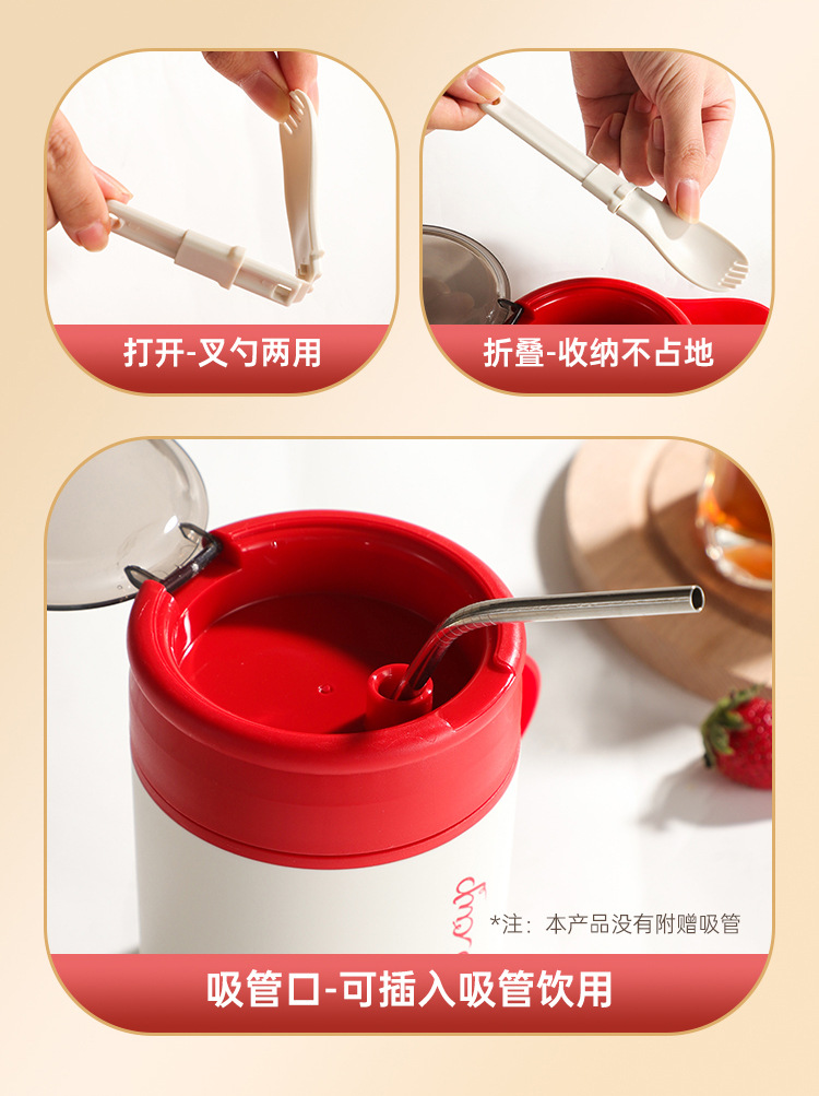 内置折叠勺【优质材质❗️坚固耐用】304不锈钢早餐杯密封便携学生上班族防漏保温杯粥罐水杯保鲜碗杯。jb