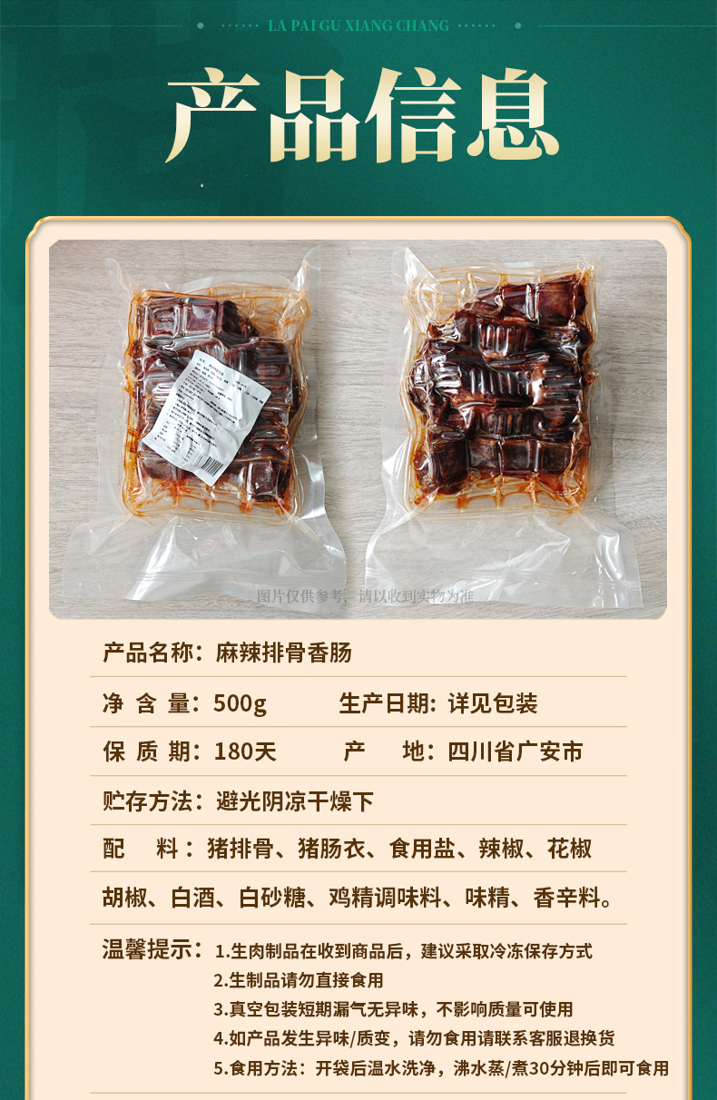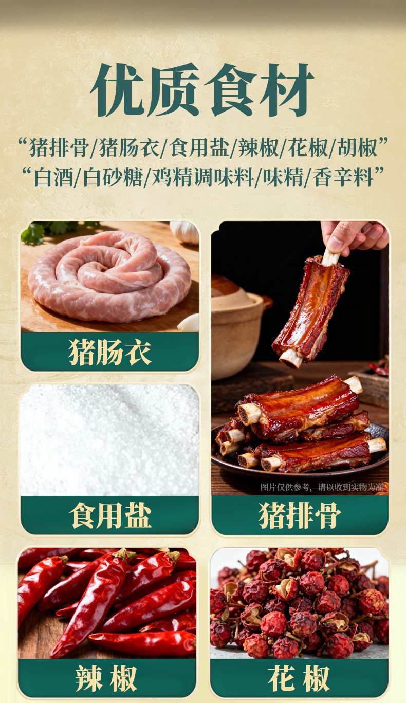 四川无添加烟熏麻辣味排骨香肠500g 地道川味