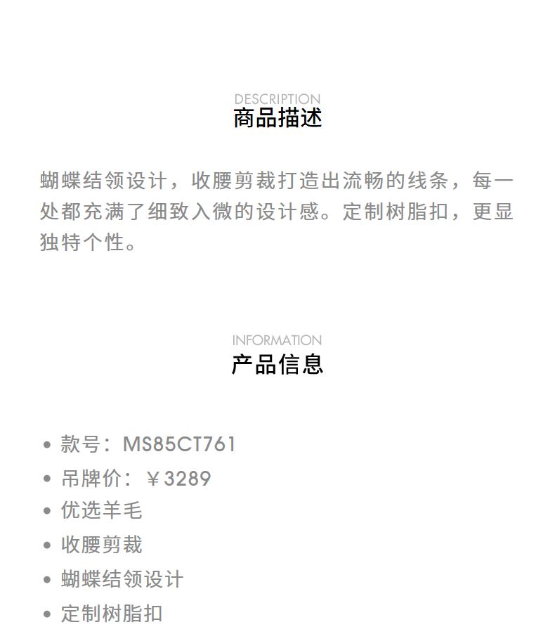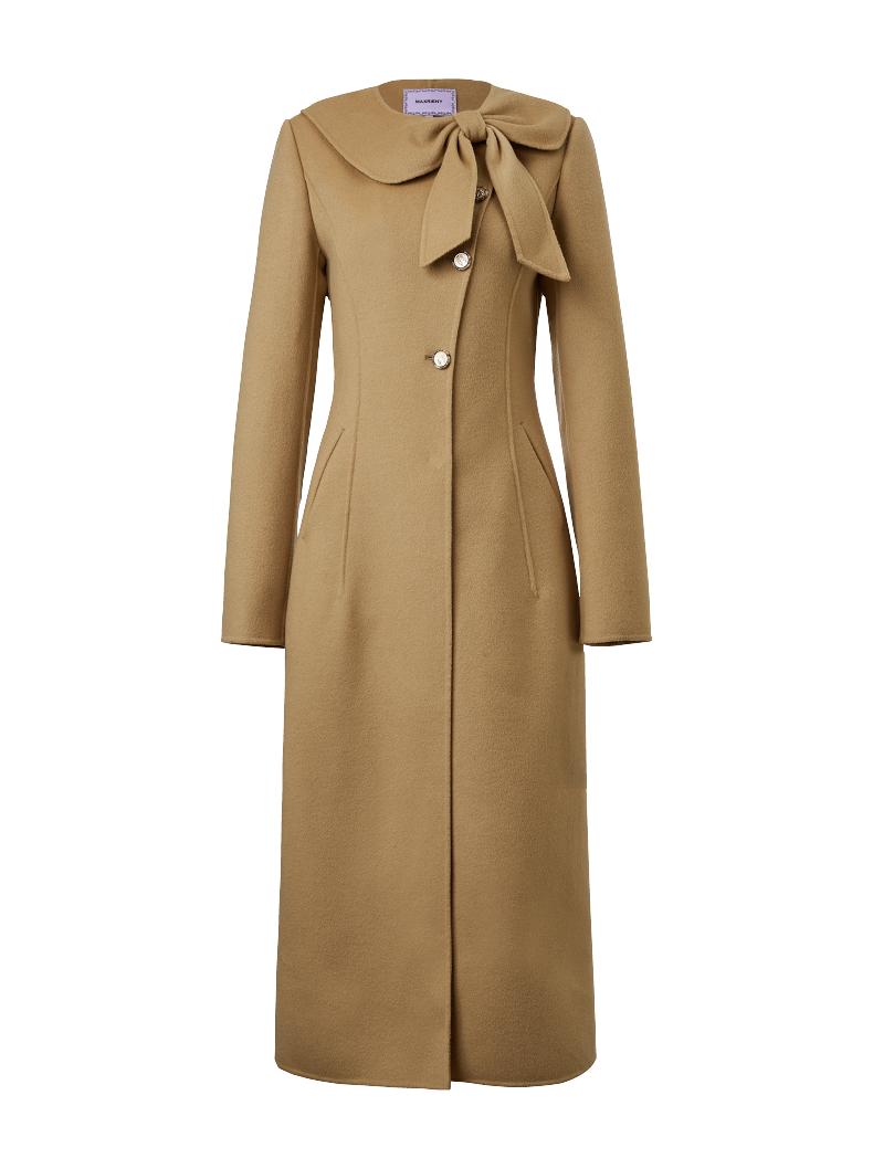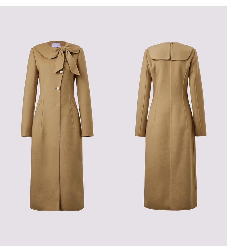 MAXRIENY法式千金蝴蝶结领中长款大衣高级感24秋新款羊毛外套澳毛(货号:MS85CT761)