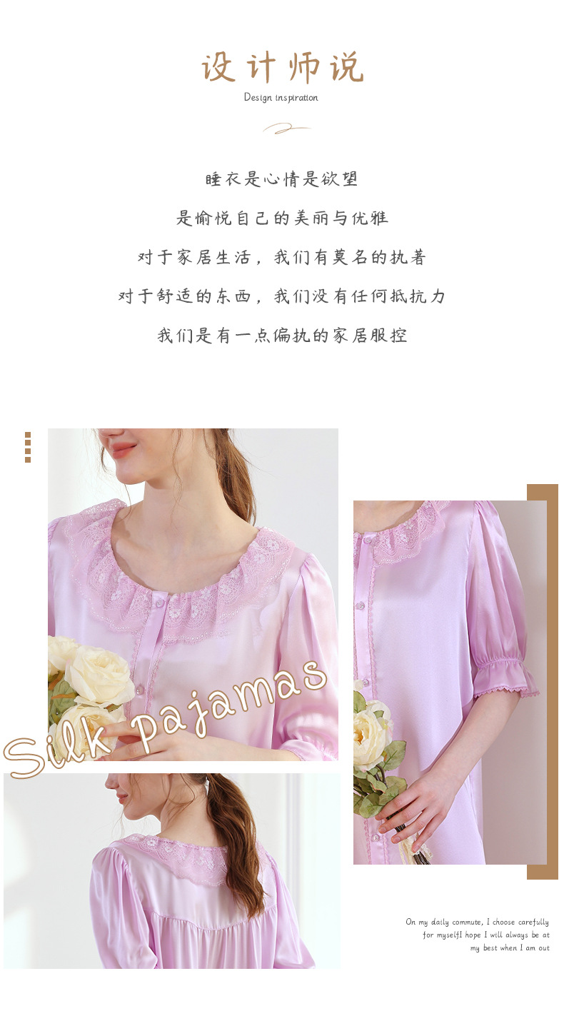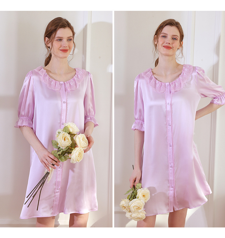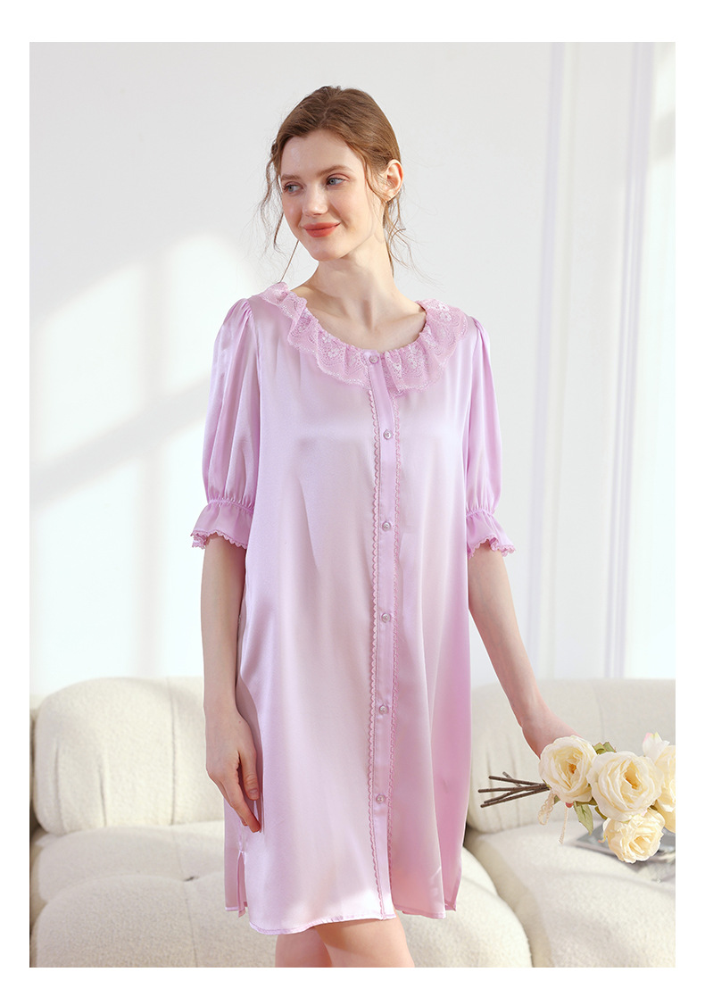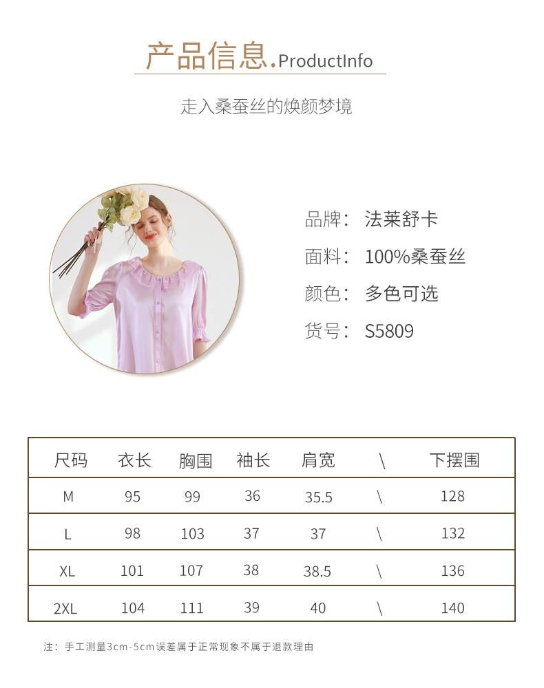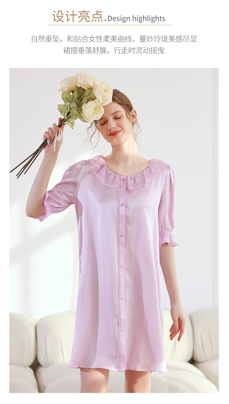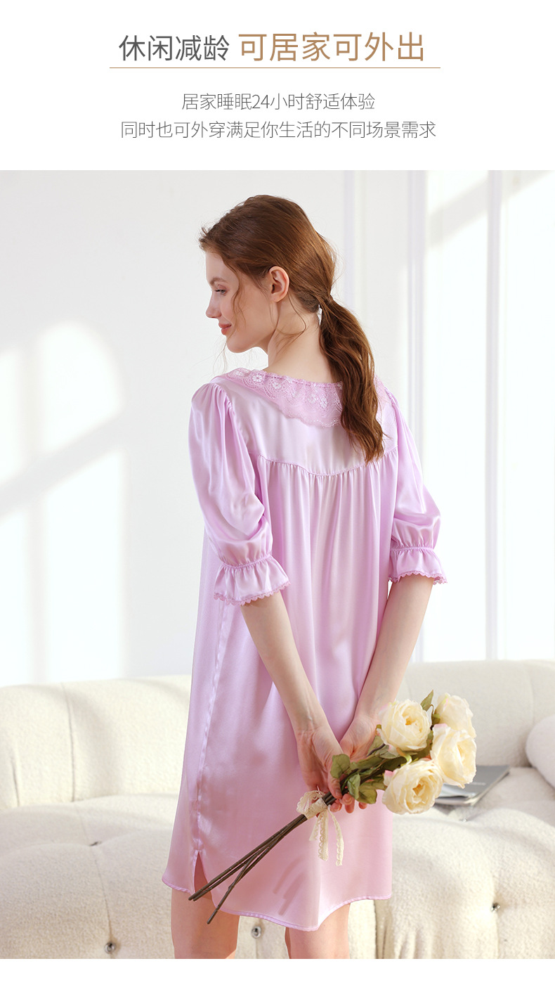 SK-S5809真丝睡裙女夏秋季桑蚕丝丝绸中袖宽松新款睡裙S5809
