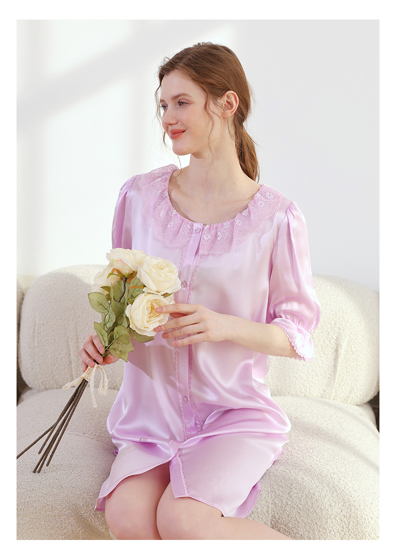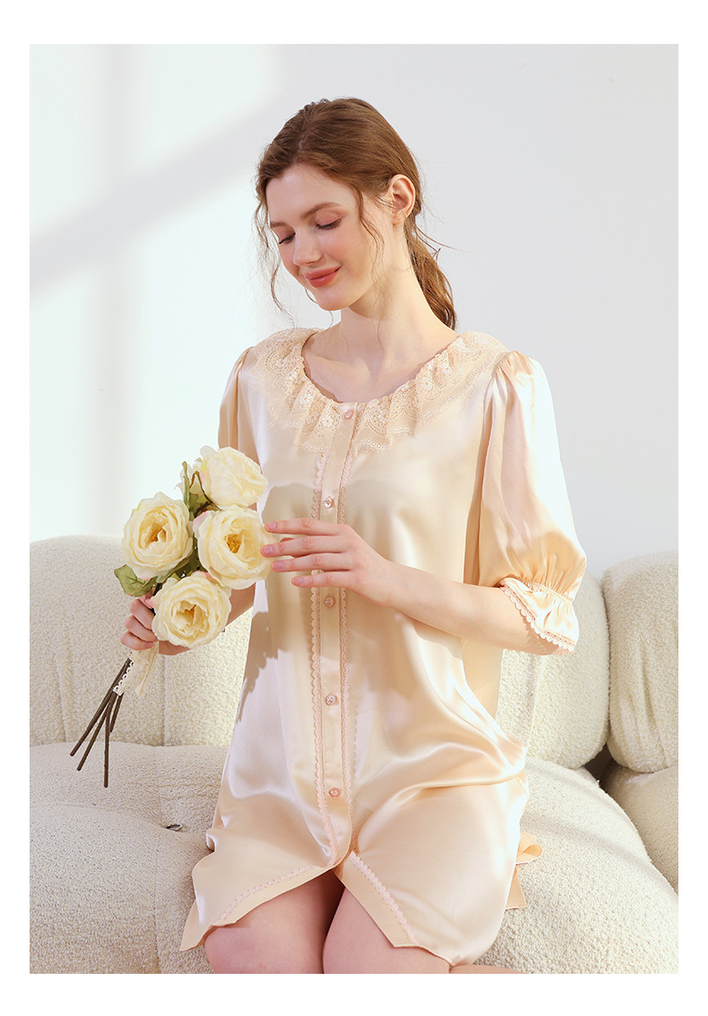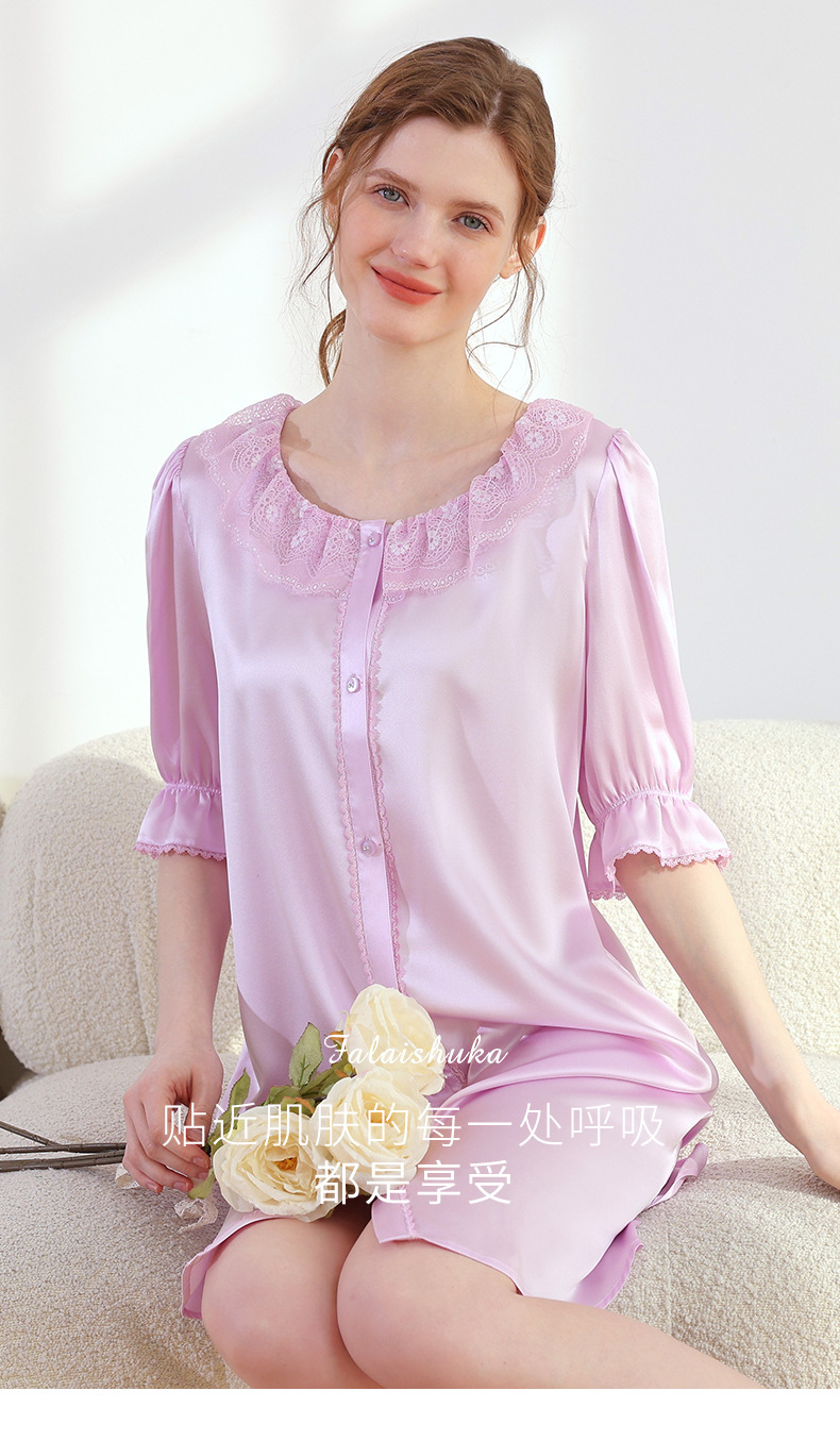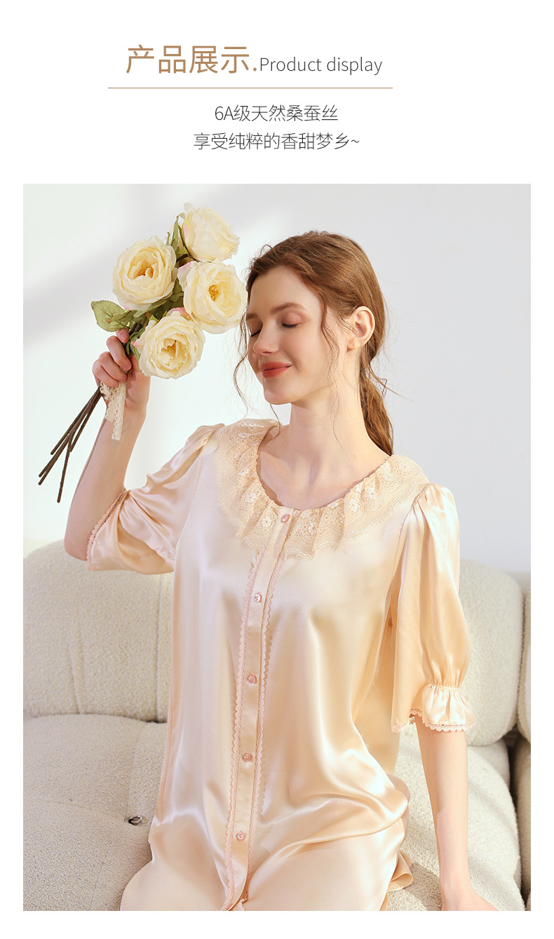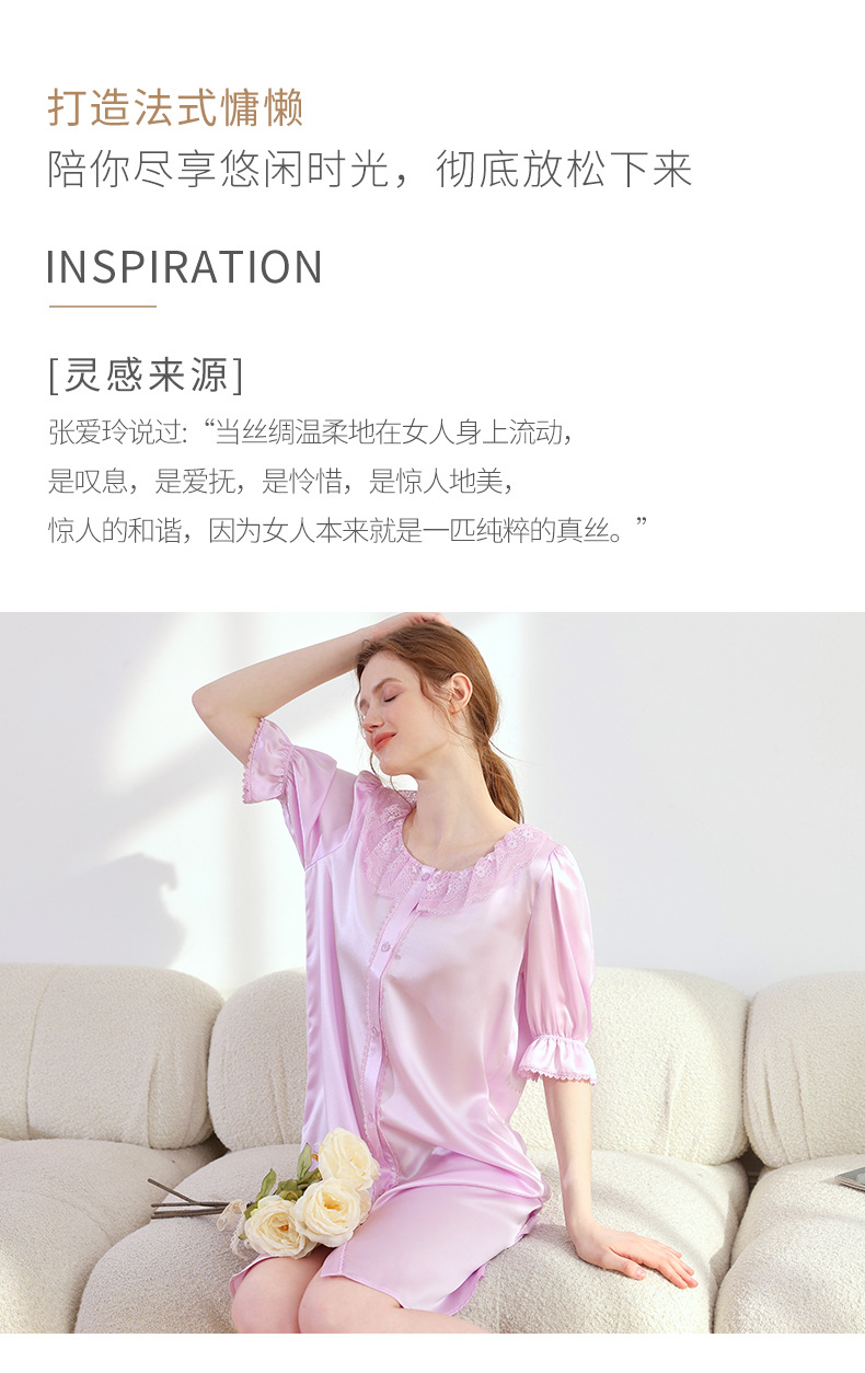 SK-S5809真丝睡裙女夏秋季桑蚕丝丝绸中袖宽松新款睡裙S5809