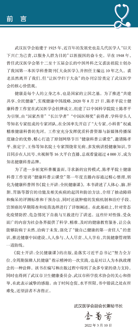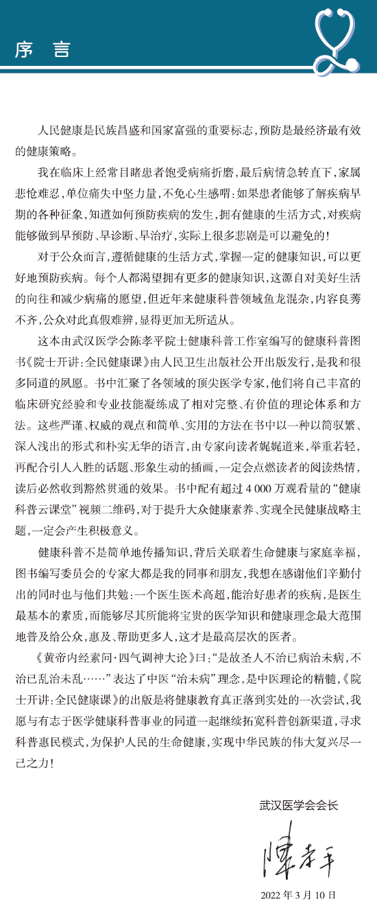 主 编:武汉医学会陈孝平院士健康科普工作室