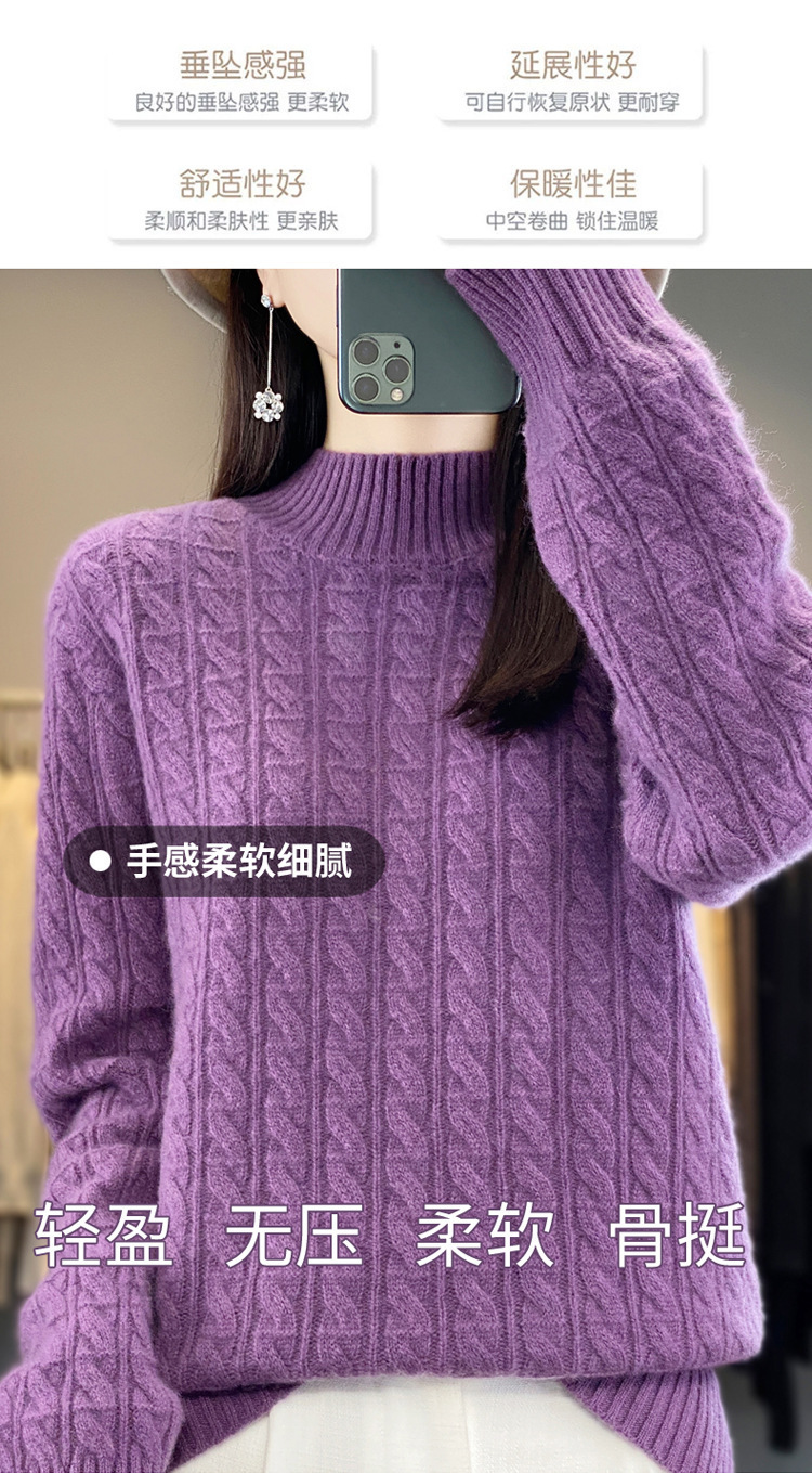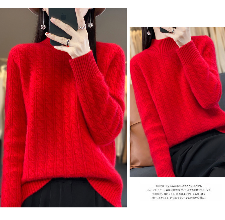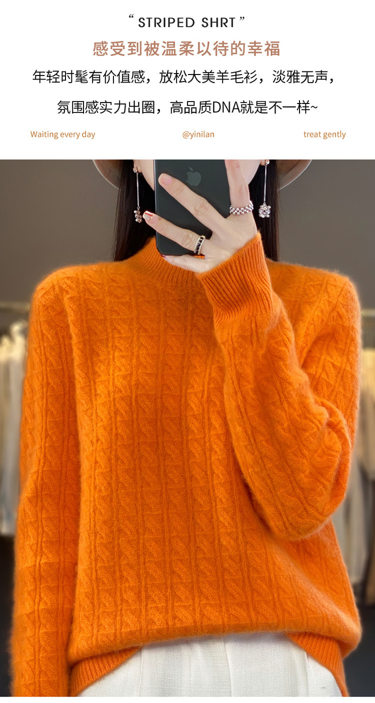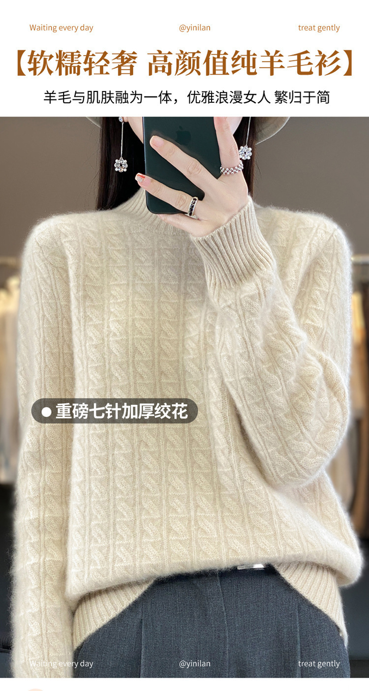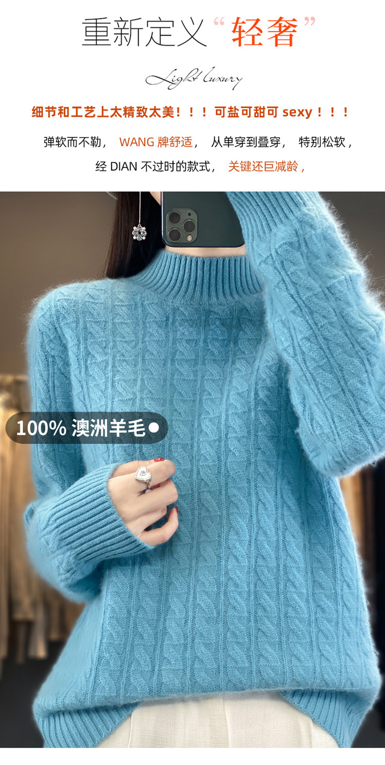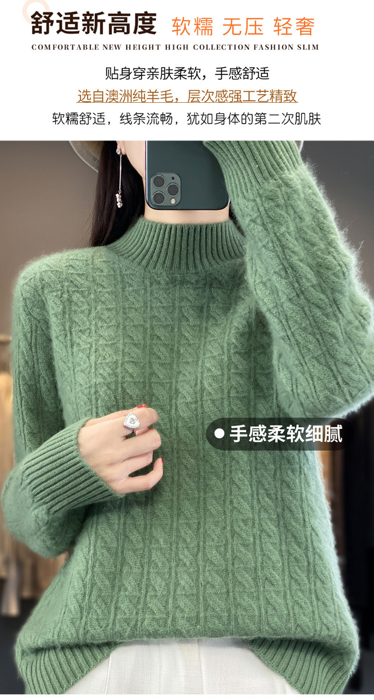 QHJY-DMR093 秋冬新款纯羊毛衫宽松女半高领套头纯色厚羊绒针织衫打底毛衣