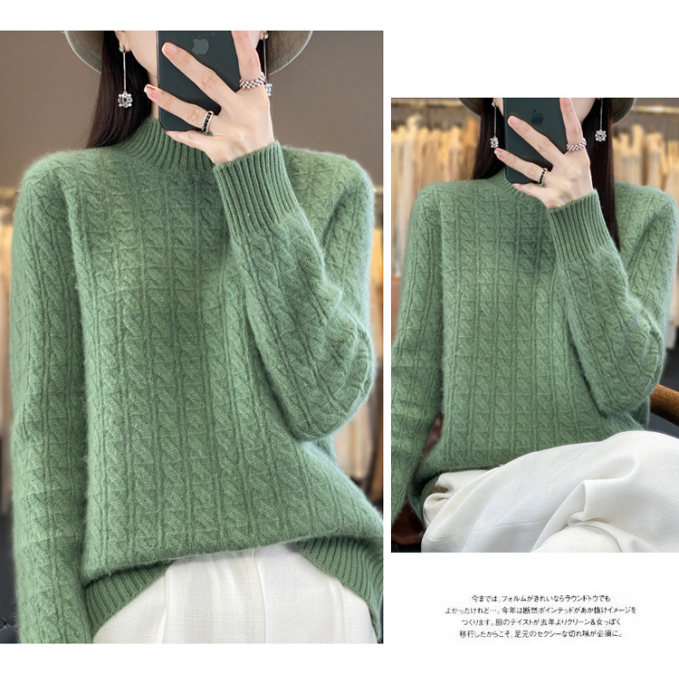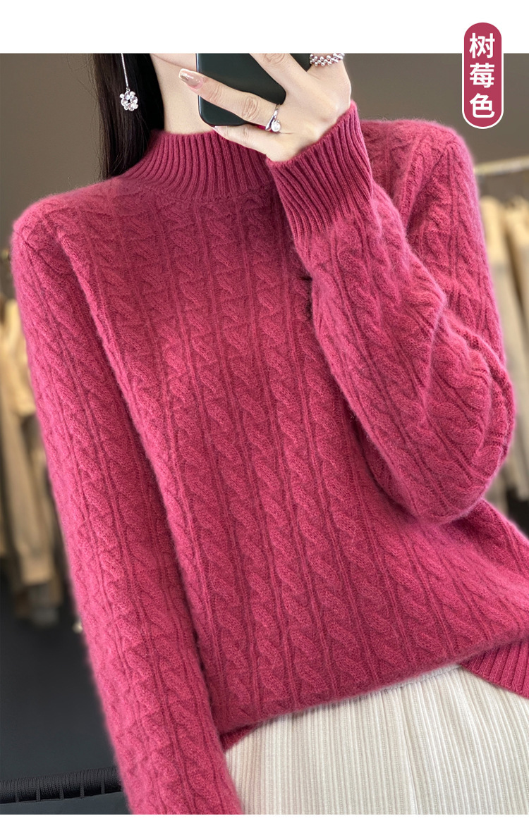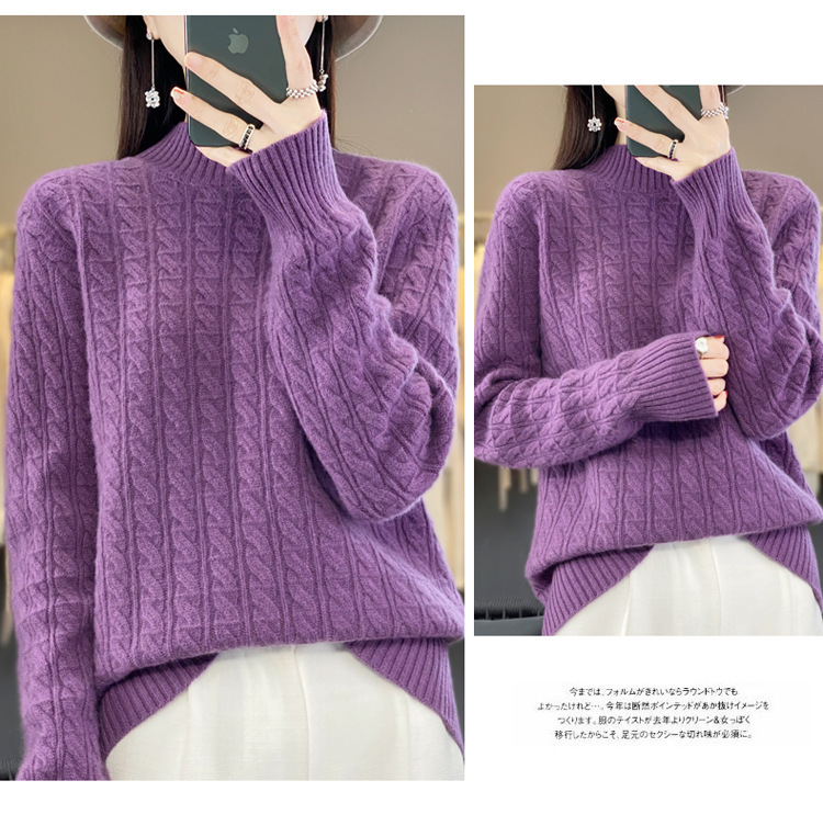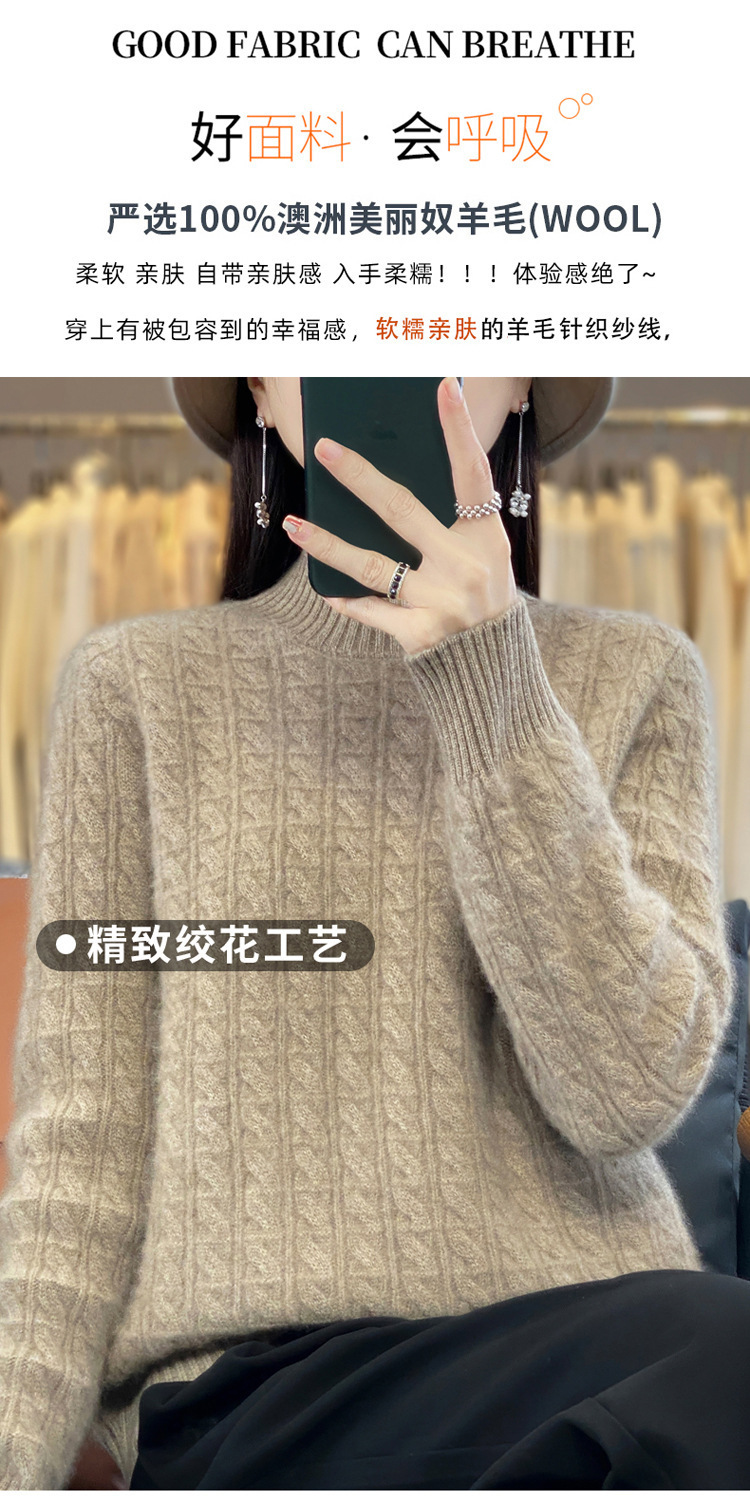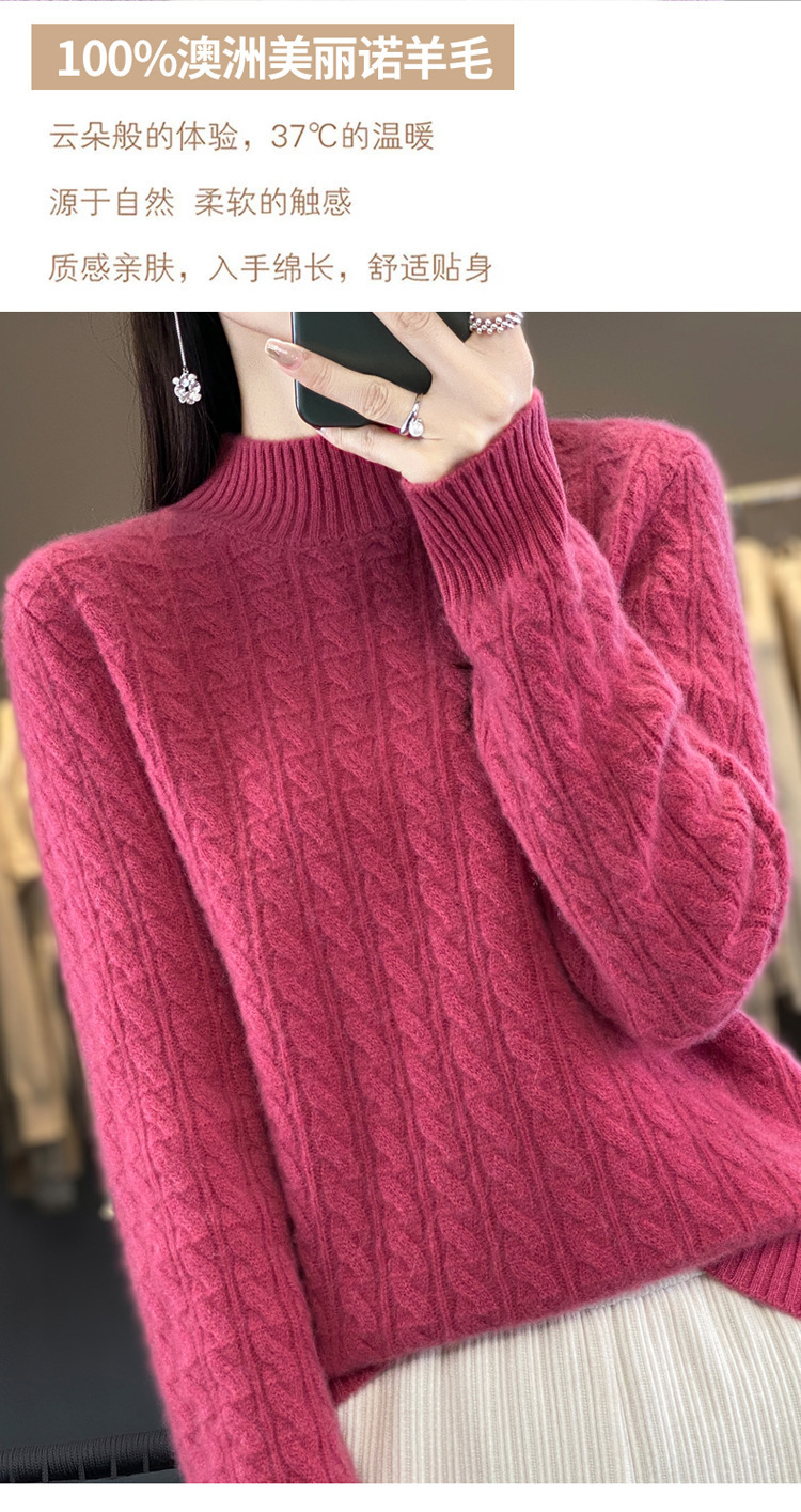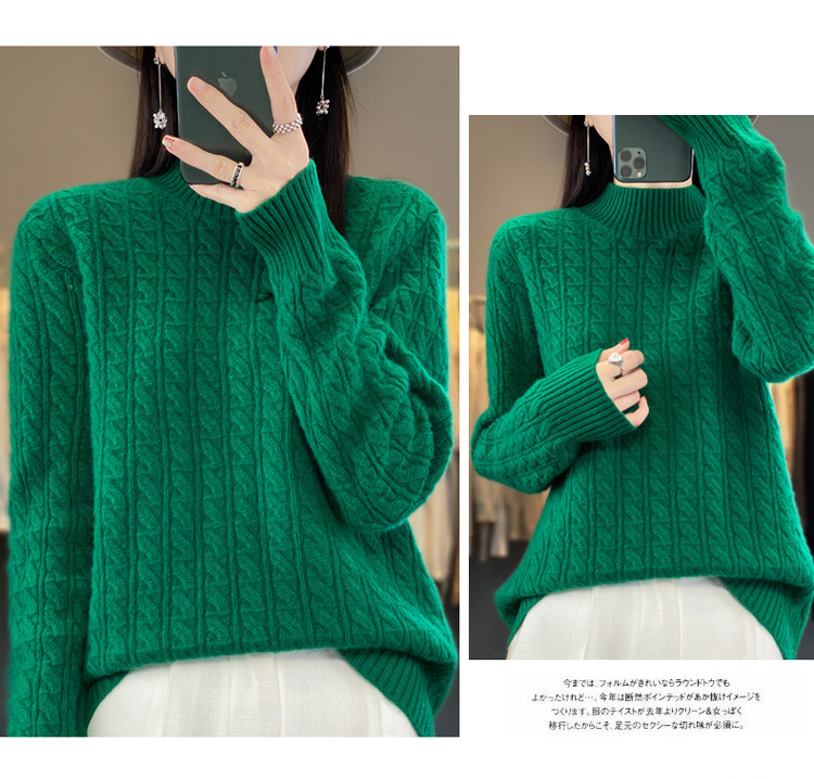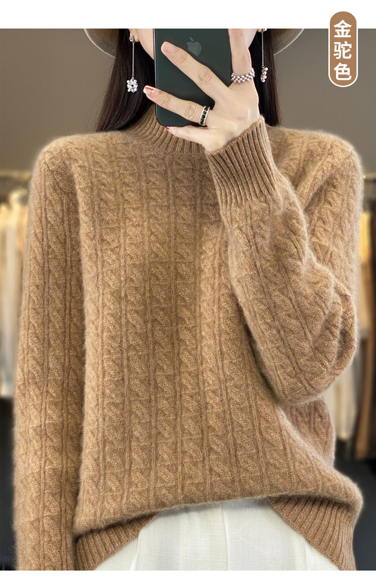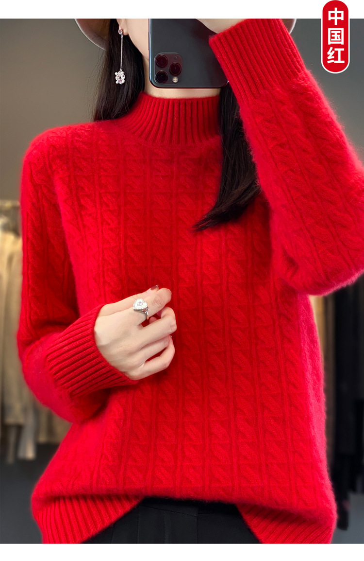 QHJY-DMR093 秋冬新款纯羊毛衫宽松女半高领套头纯色厚羊绒针织衫打底毛衣