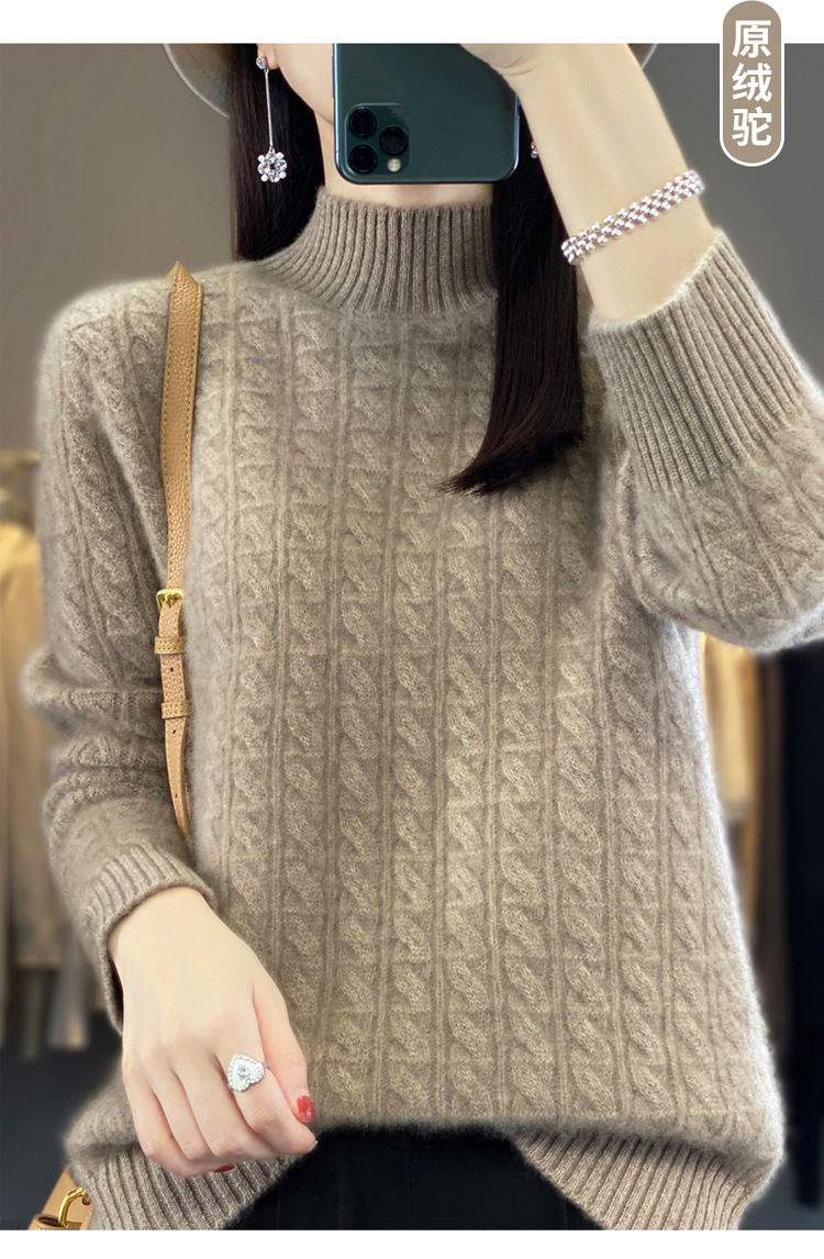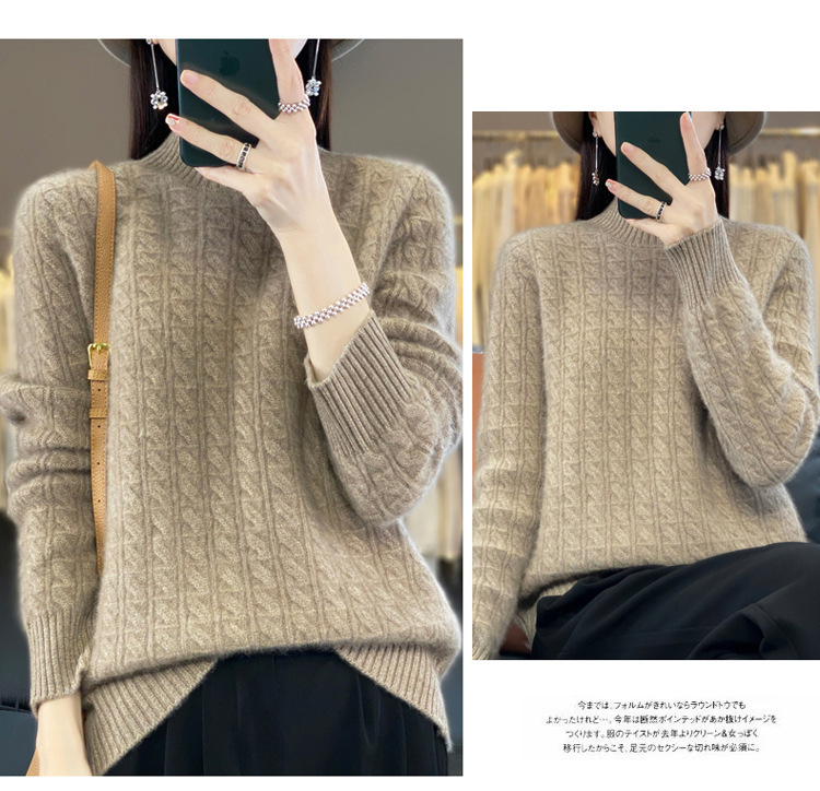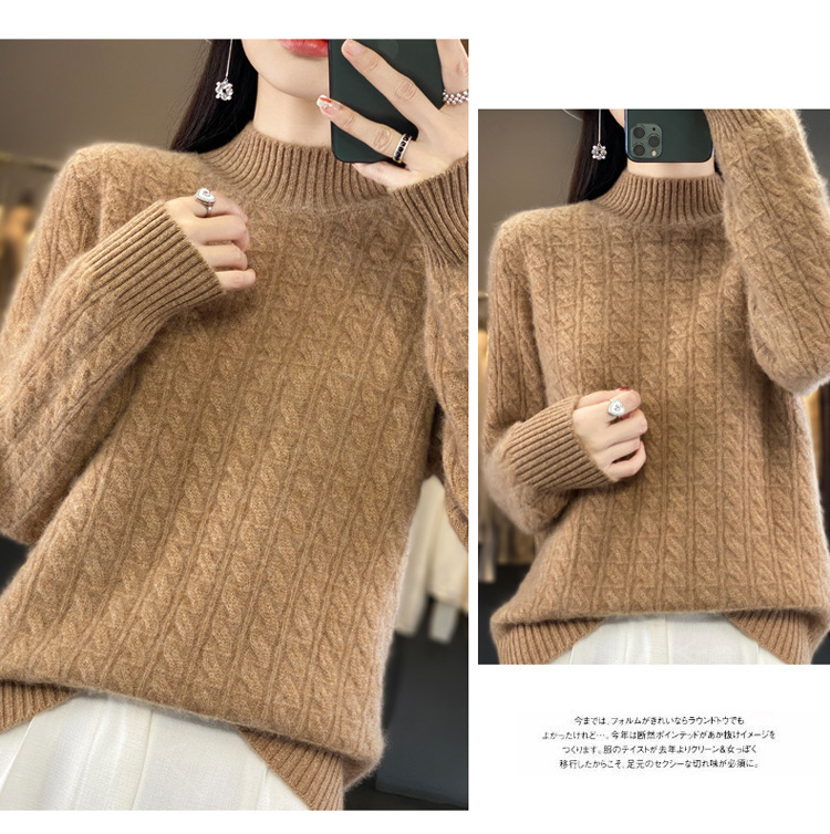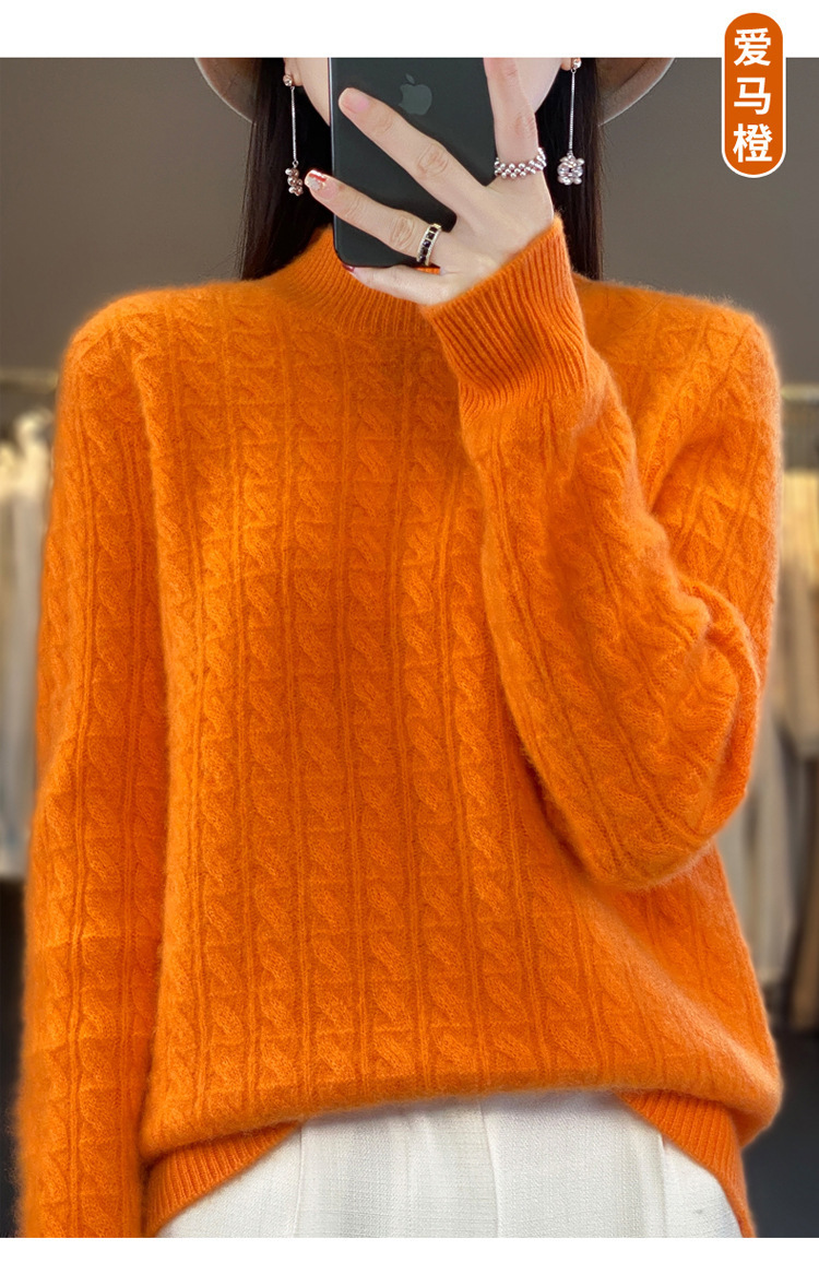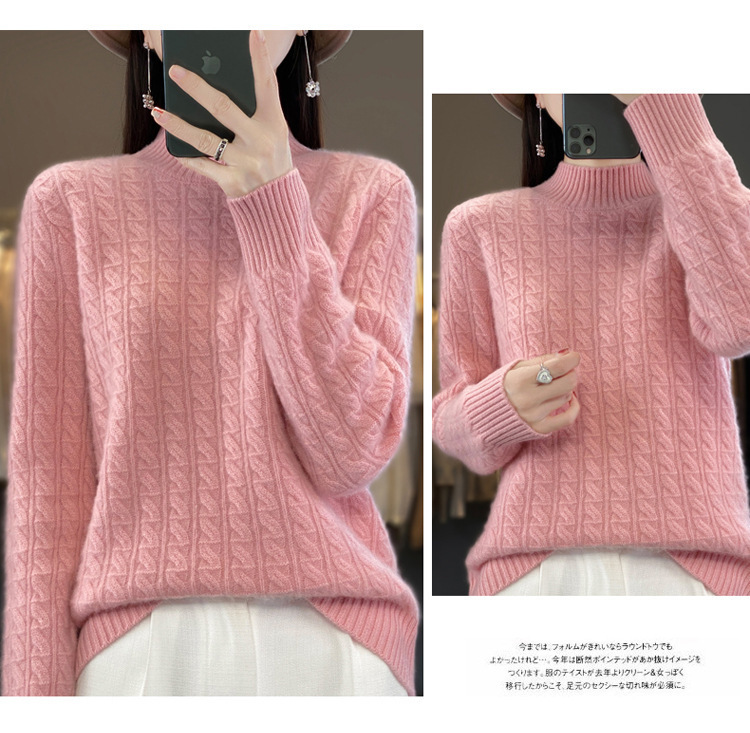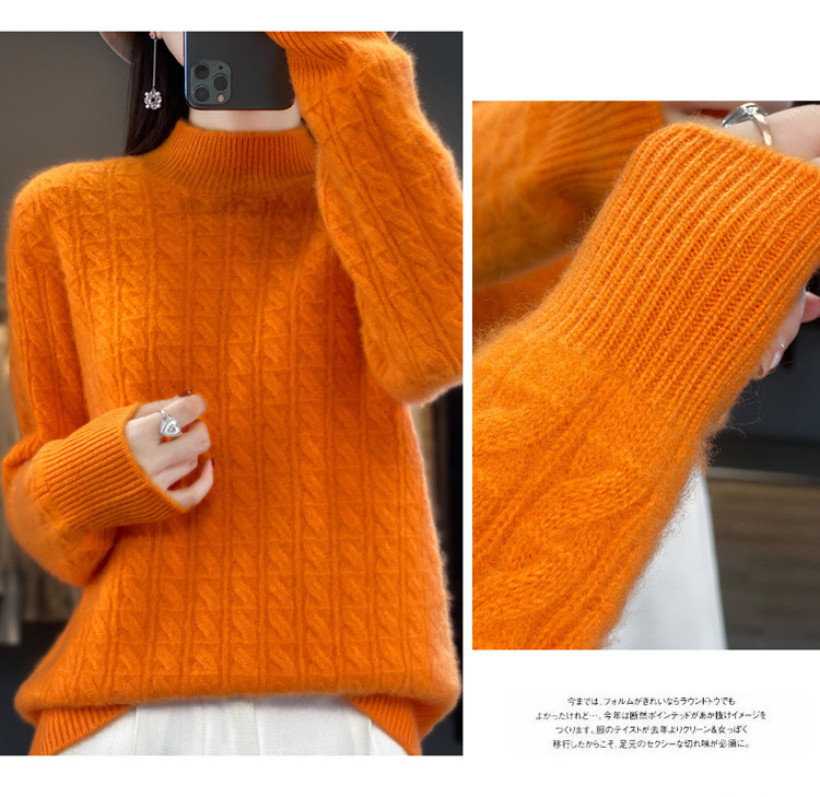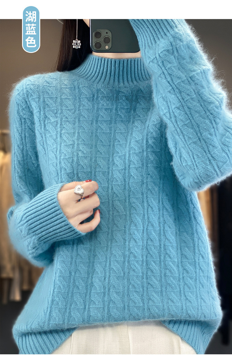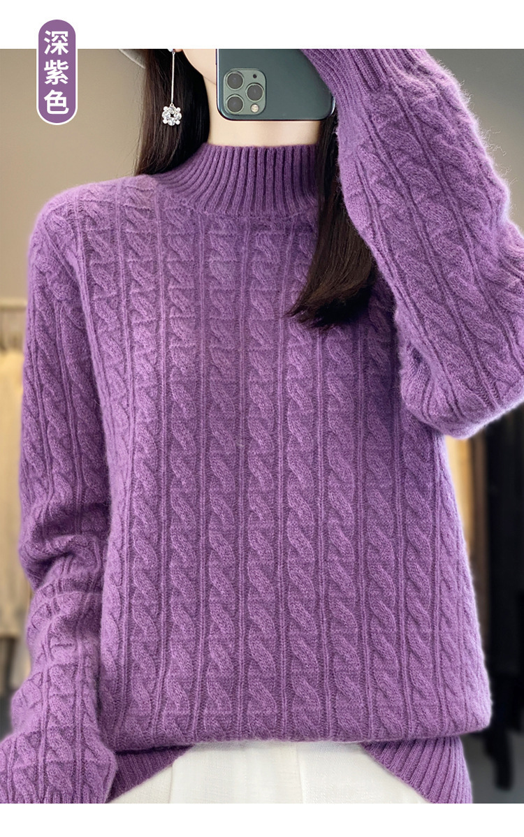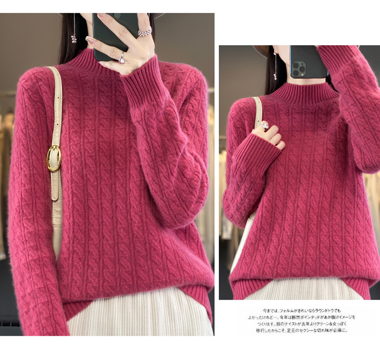 QHJY-DMR093 秋冬新款纯羊毛衫宽松女半高领套头纯色厚羊绒针织衫打底毛衣