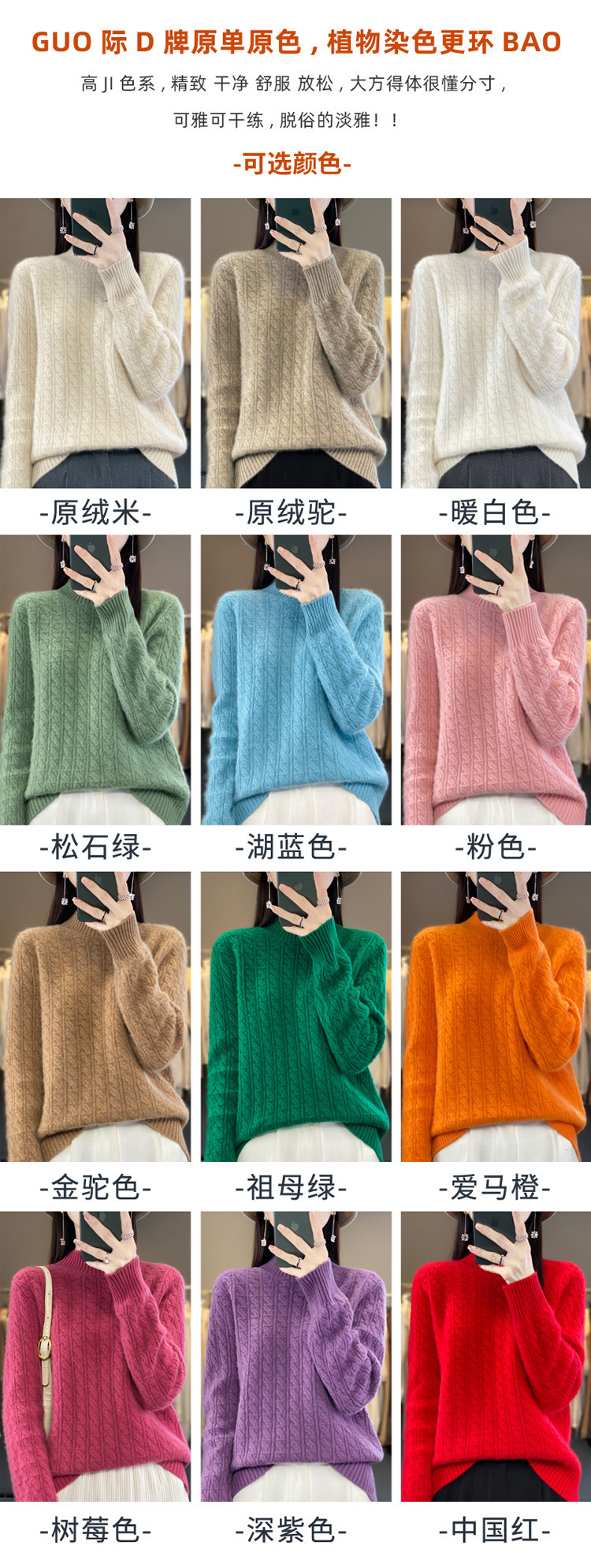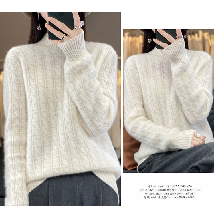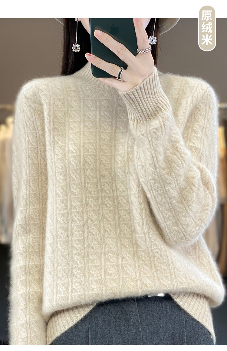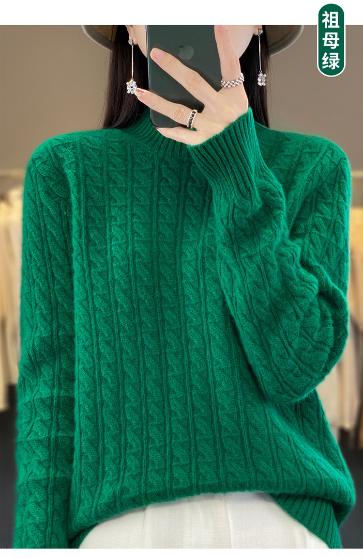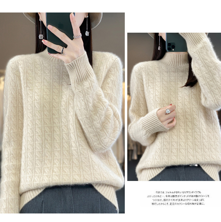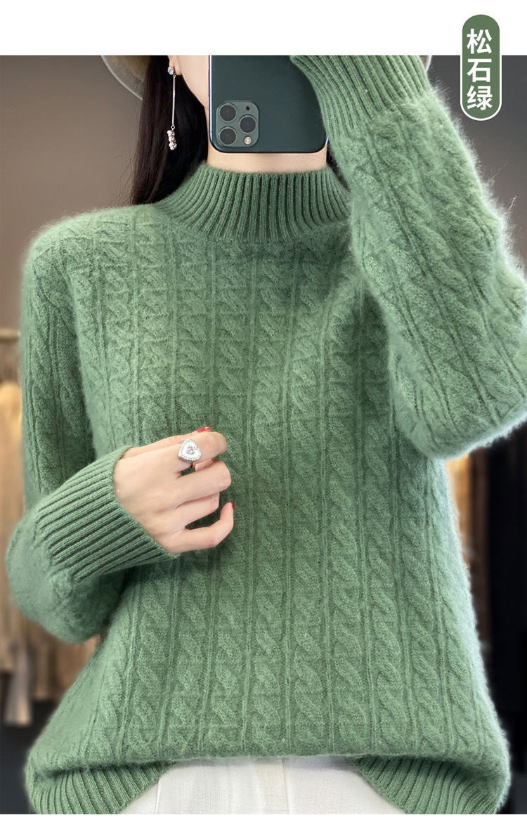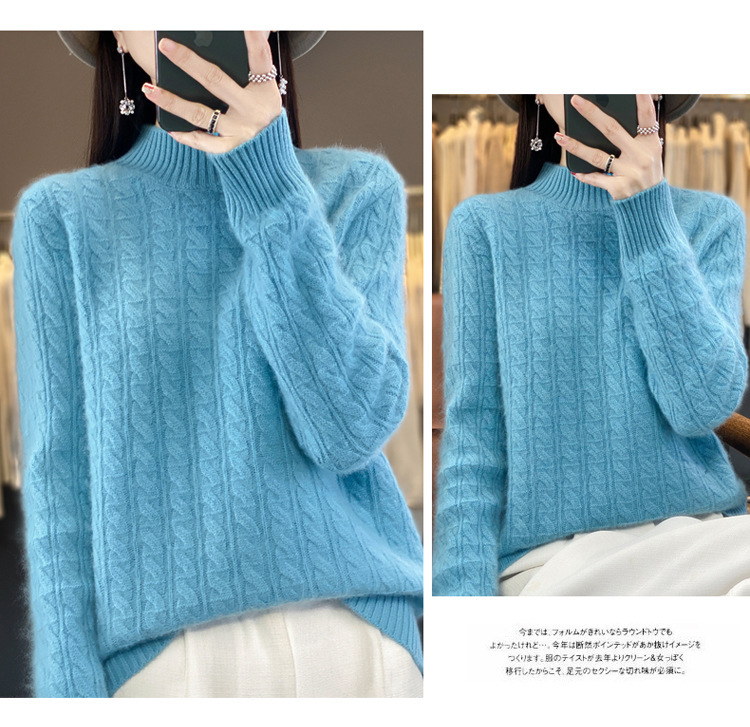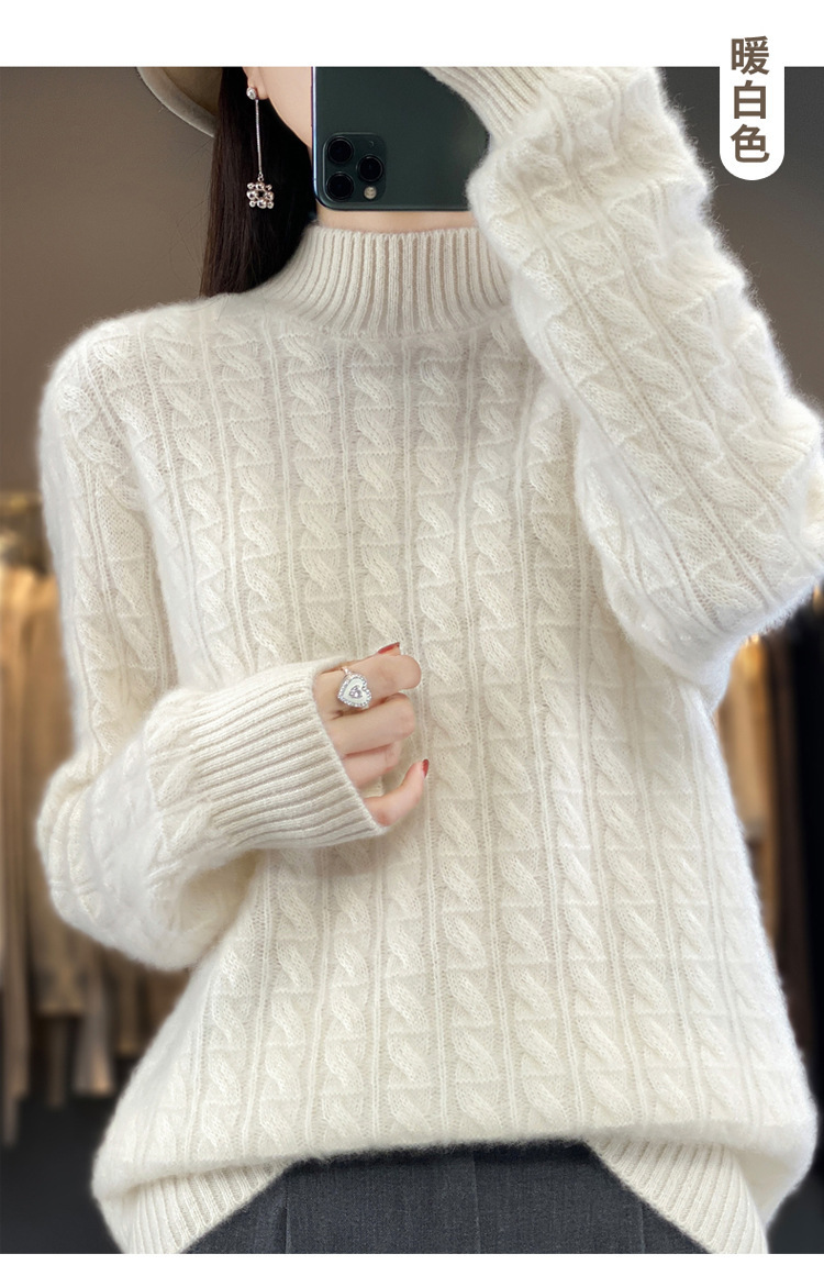 QHJY-DMR093 秋冬新款纯羊毛衫宽松女半高领套头纯色厚羊绒针织衫打底毛衣