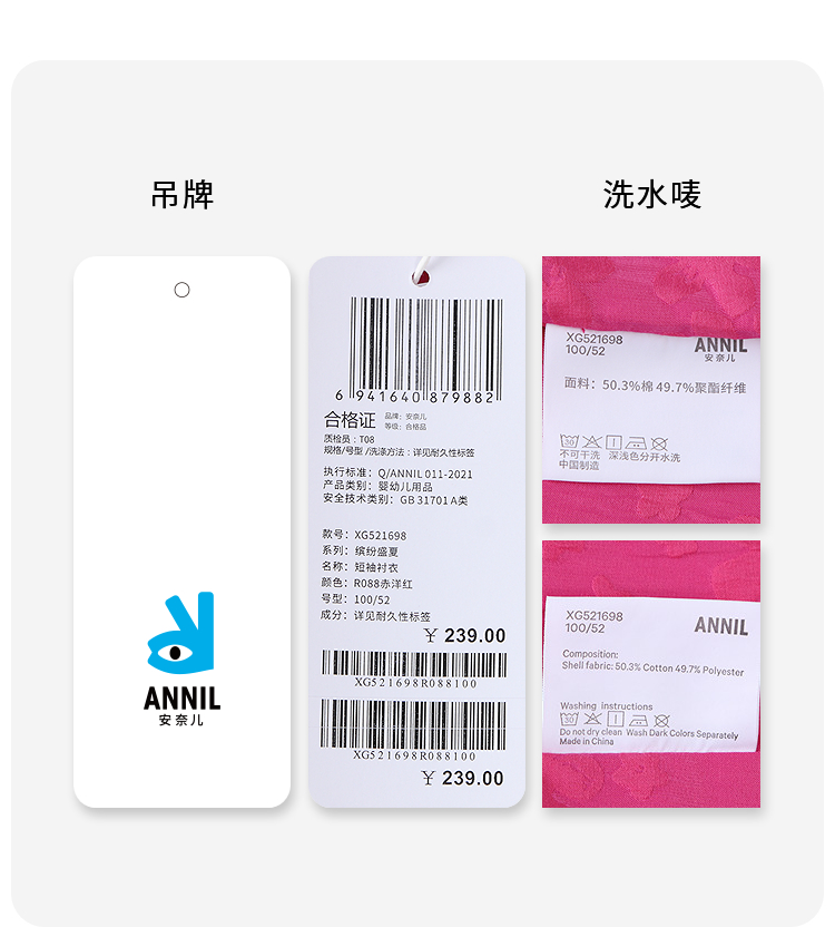 【实体店同款】女童短袖衬衣夏季新款安奈儿童装XG521698