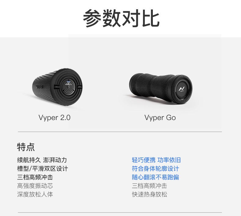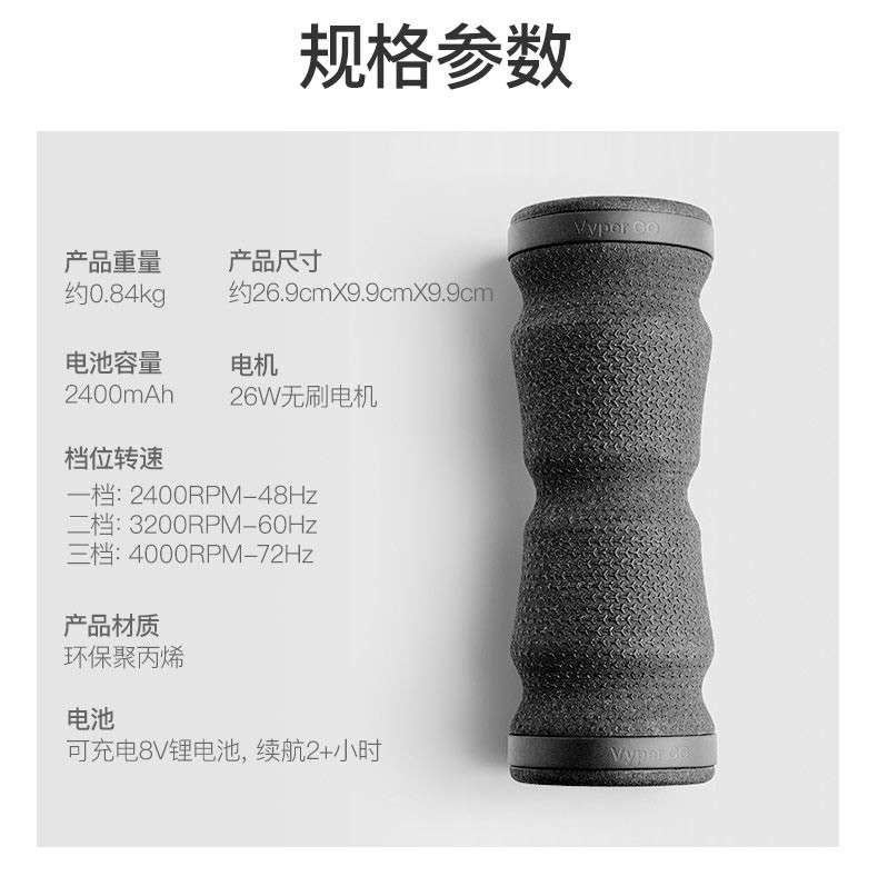 【莫兰特同款】HYPERICE海博艾斯 Vyper Go新品充电电动泡沫轴滚桶瑜伽柱健身棒