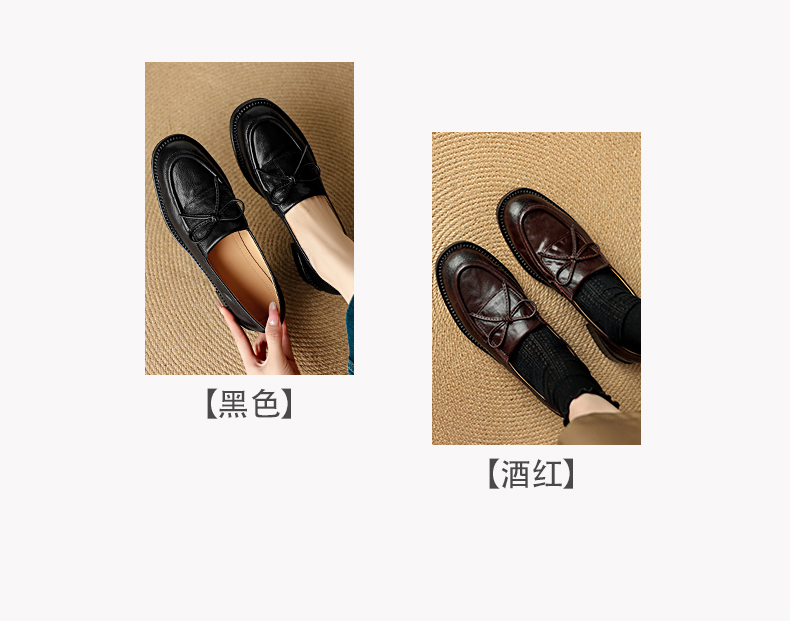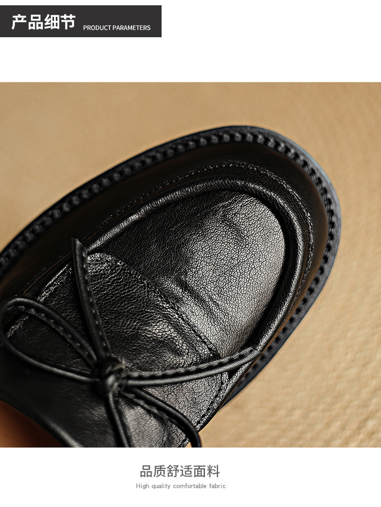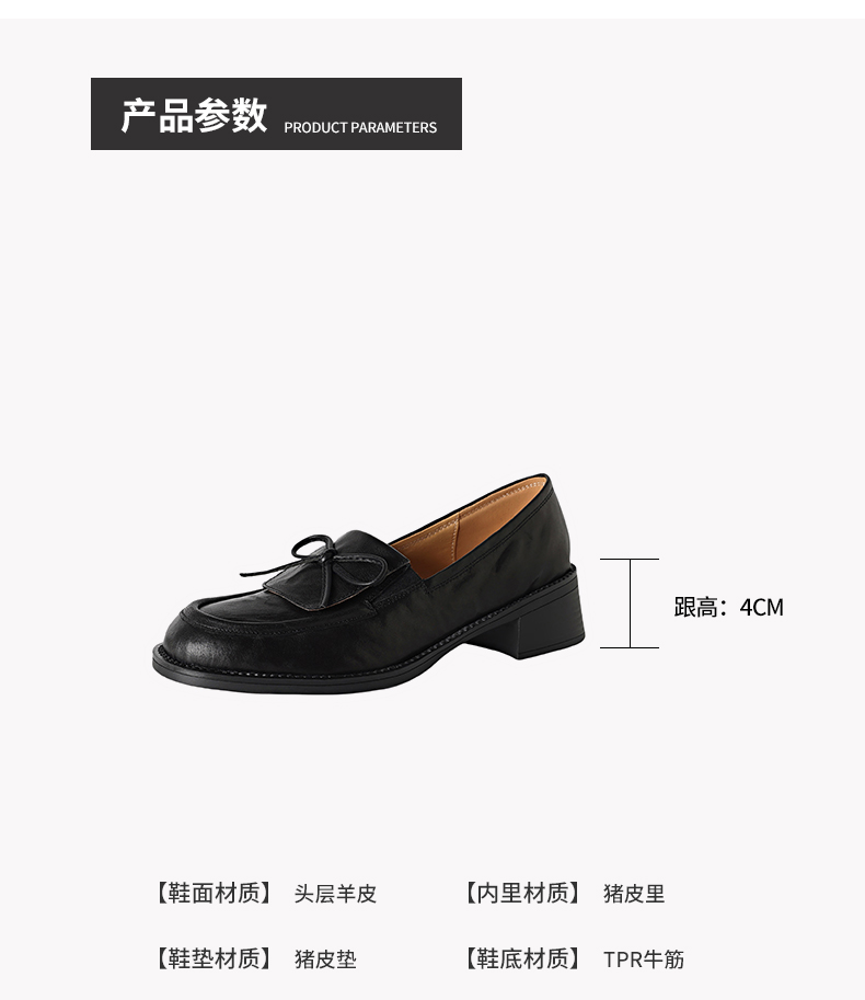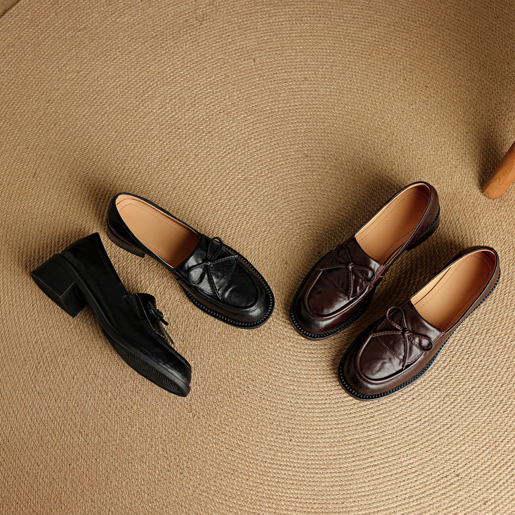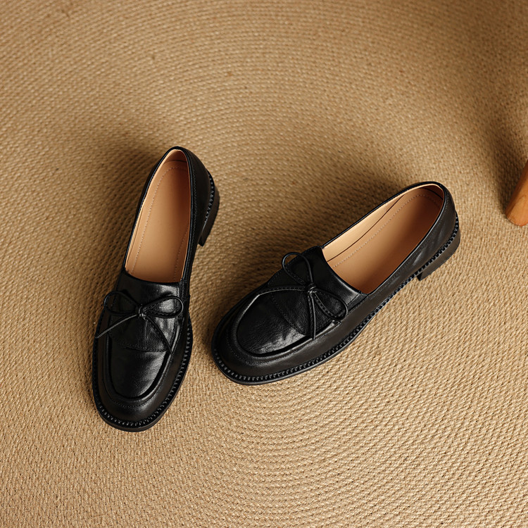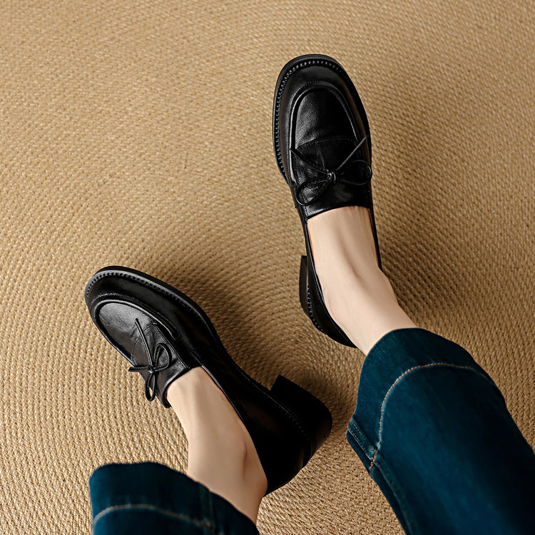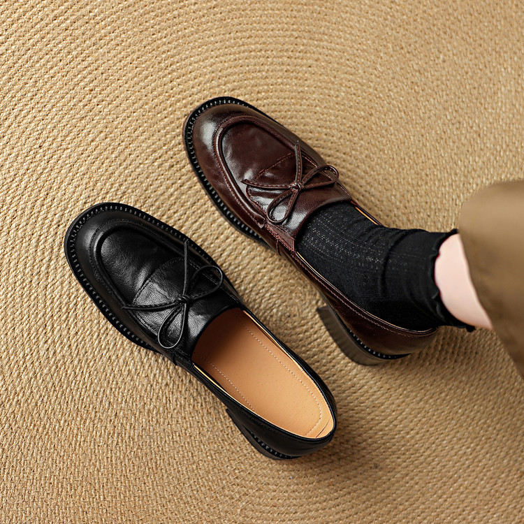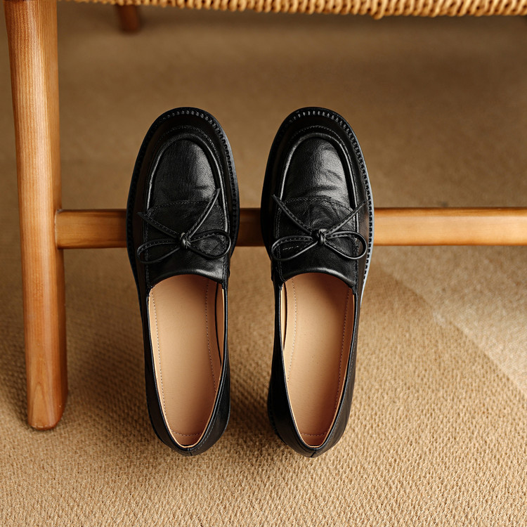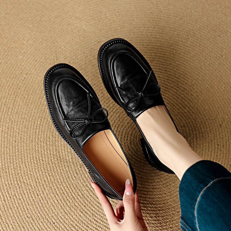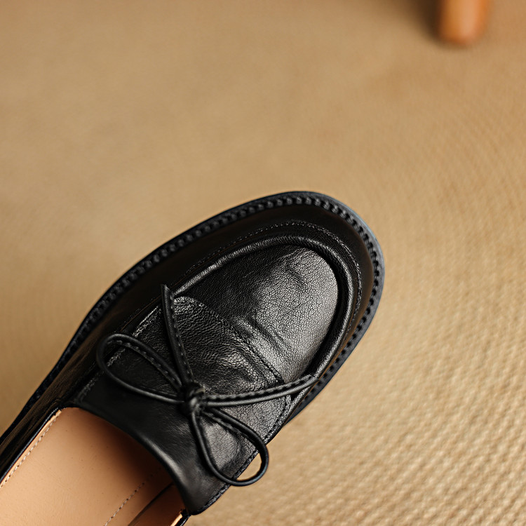 【预售5天】秋季新款羊皮英伦风小皮鞋圆头粗跟单鞋蝴蝶结中粗跟乐福鞋女NJMK&K1722