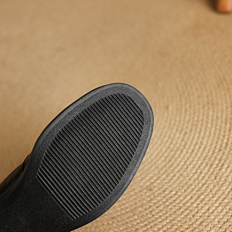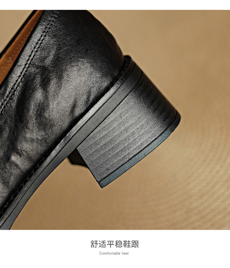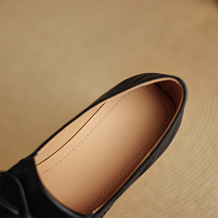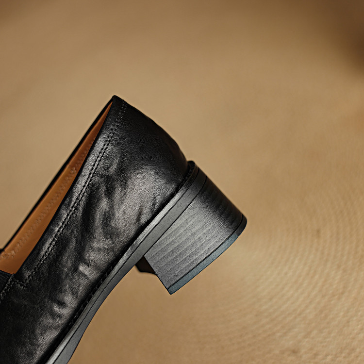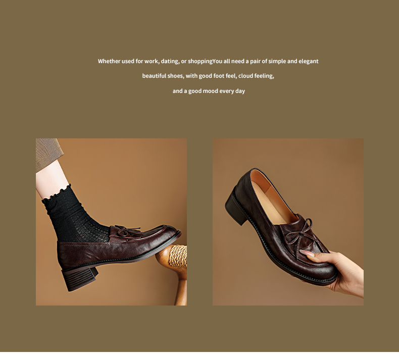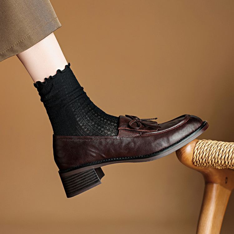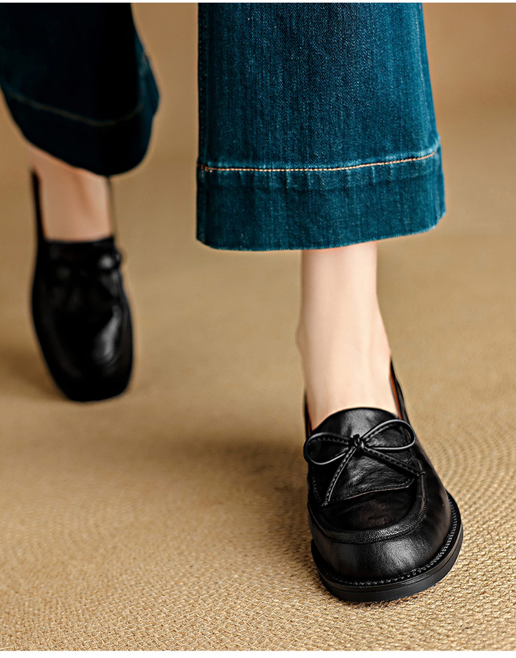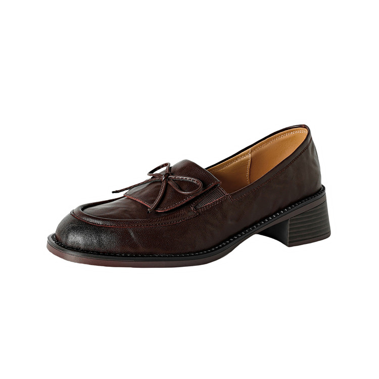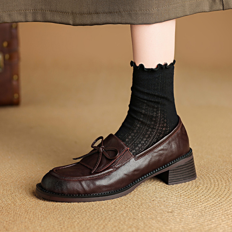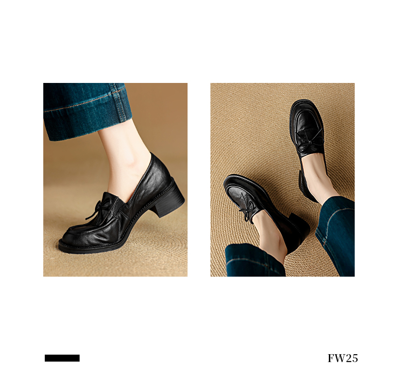 【预售5天】秋季新款羊皮英伦风小皮鞋圆头粗跟单鞋蝴蝶结中粗跟乐福鞋女NJMK&K1722