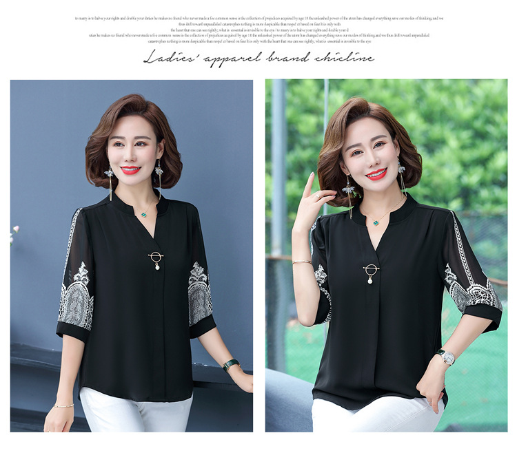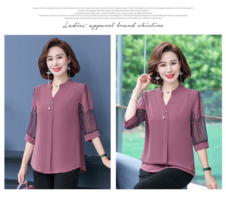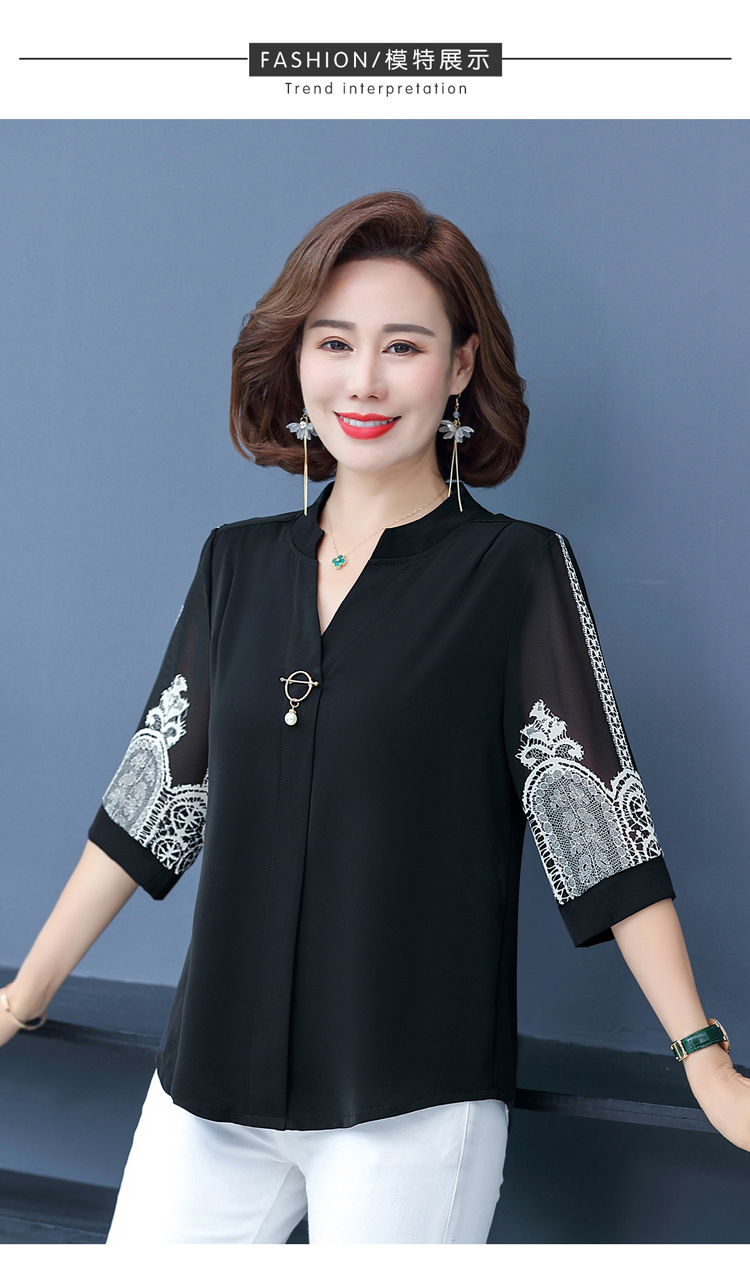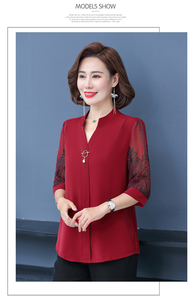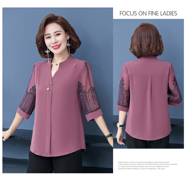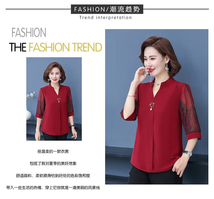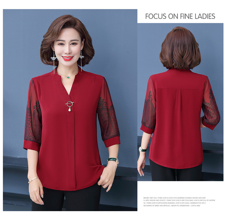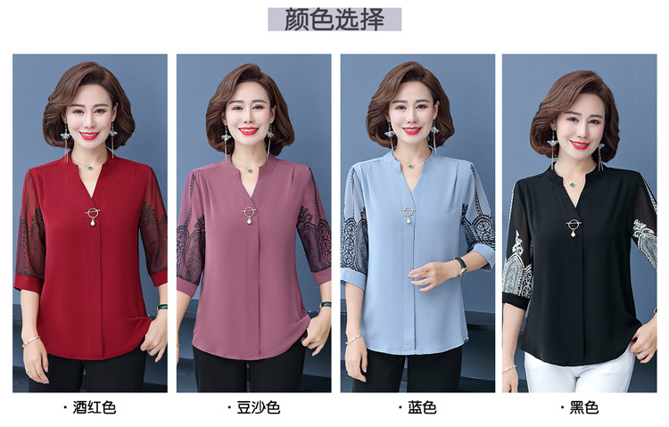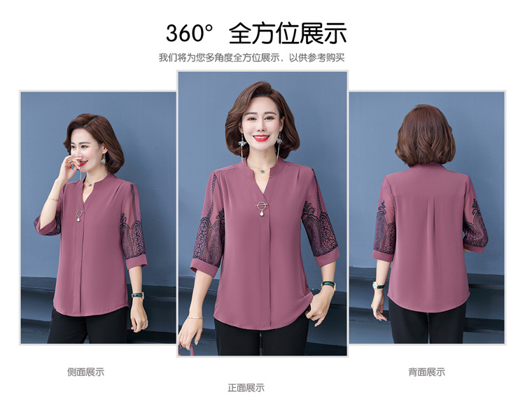 大码中老年打底衫,宽松上衣妈妈装中袖雪纺衫TYWF-A355