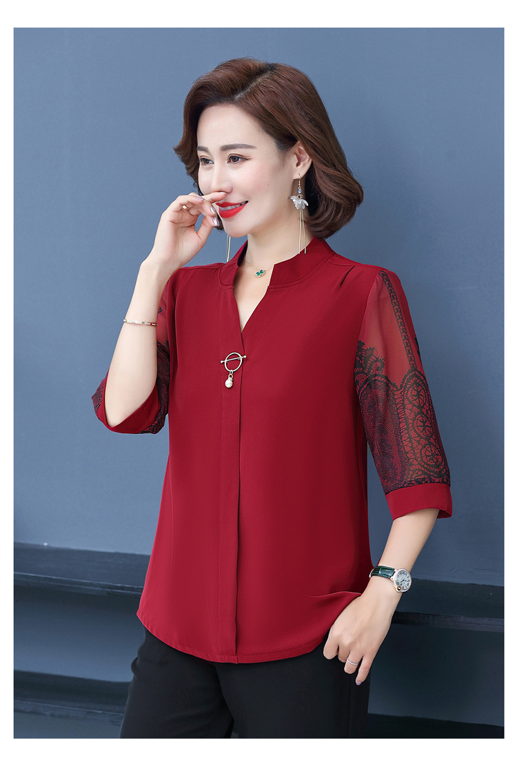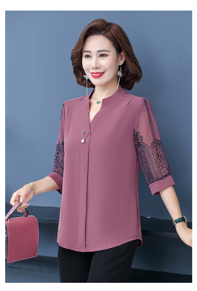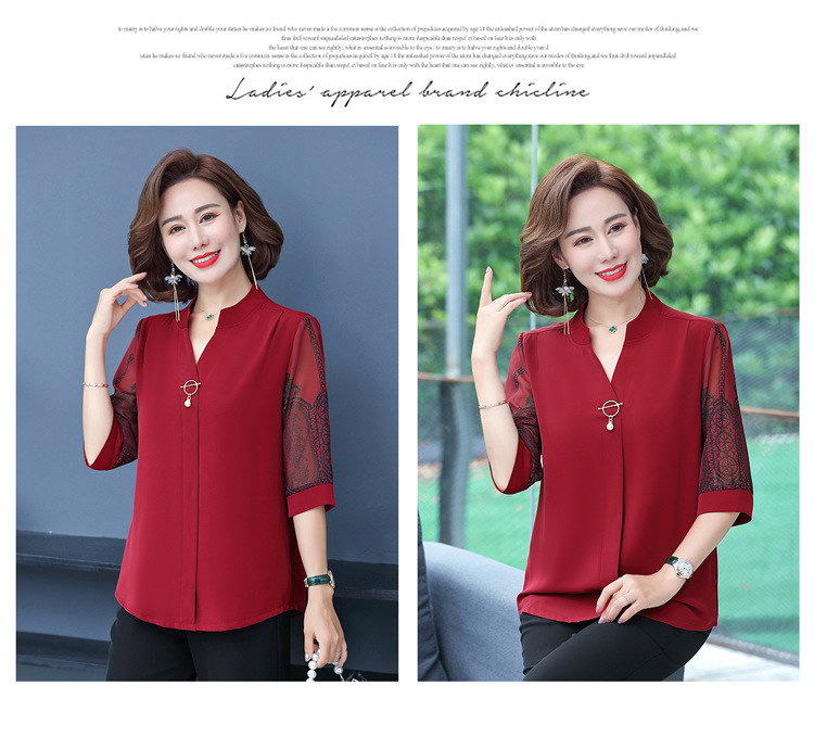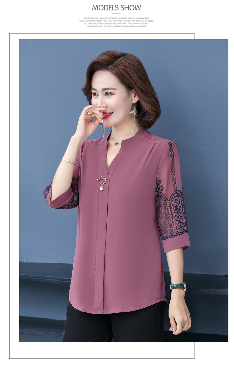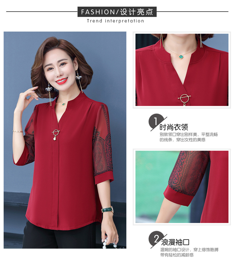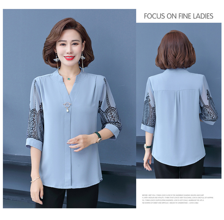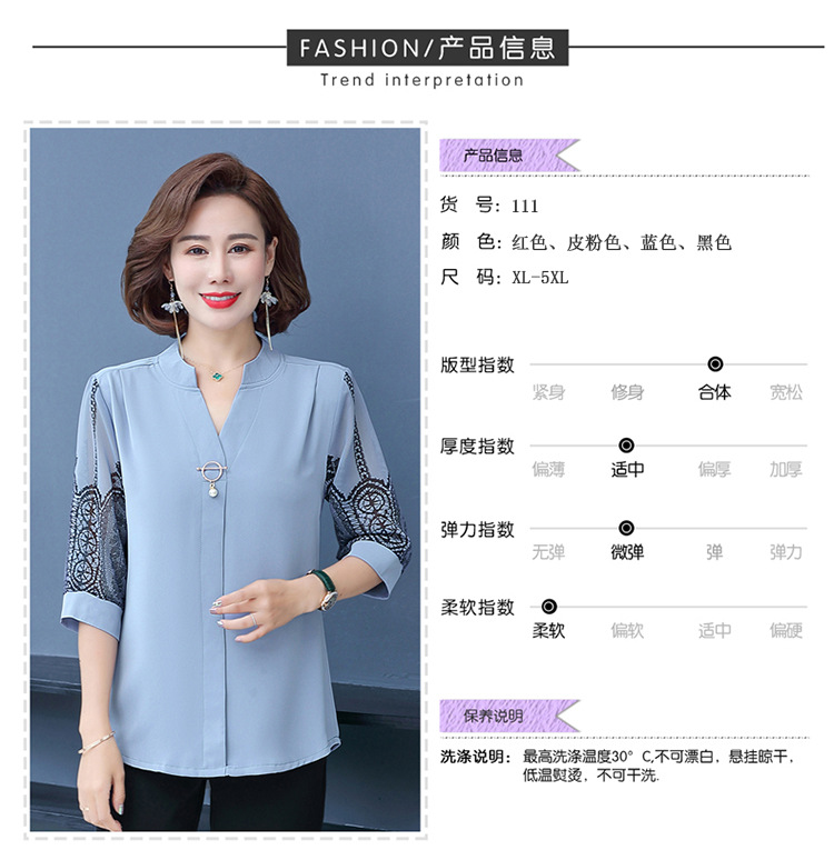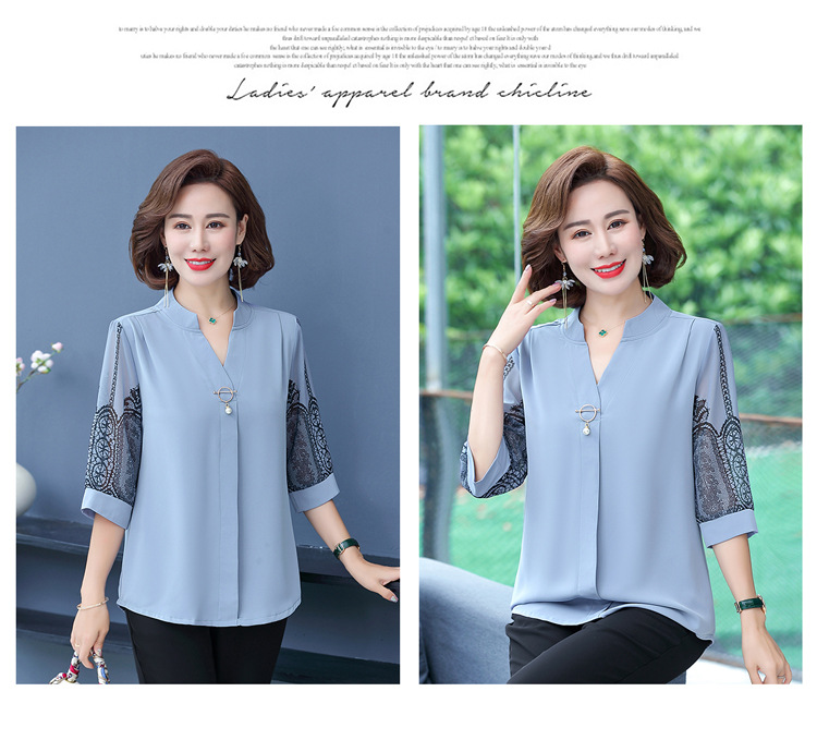 大码中老年打底衫,宽松上衣妈妈装中袖雪纺衫TYWF-A355