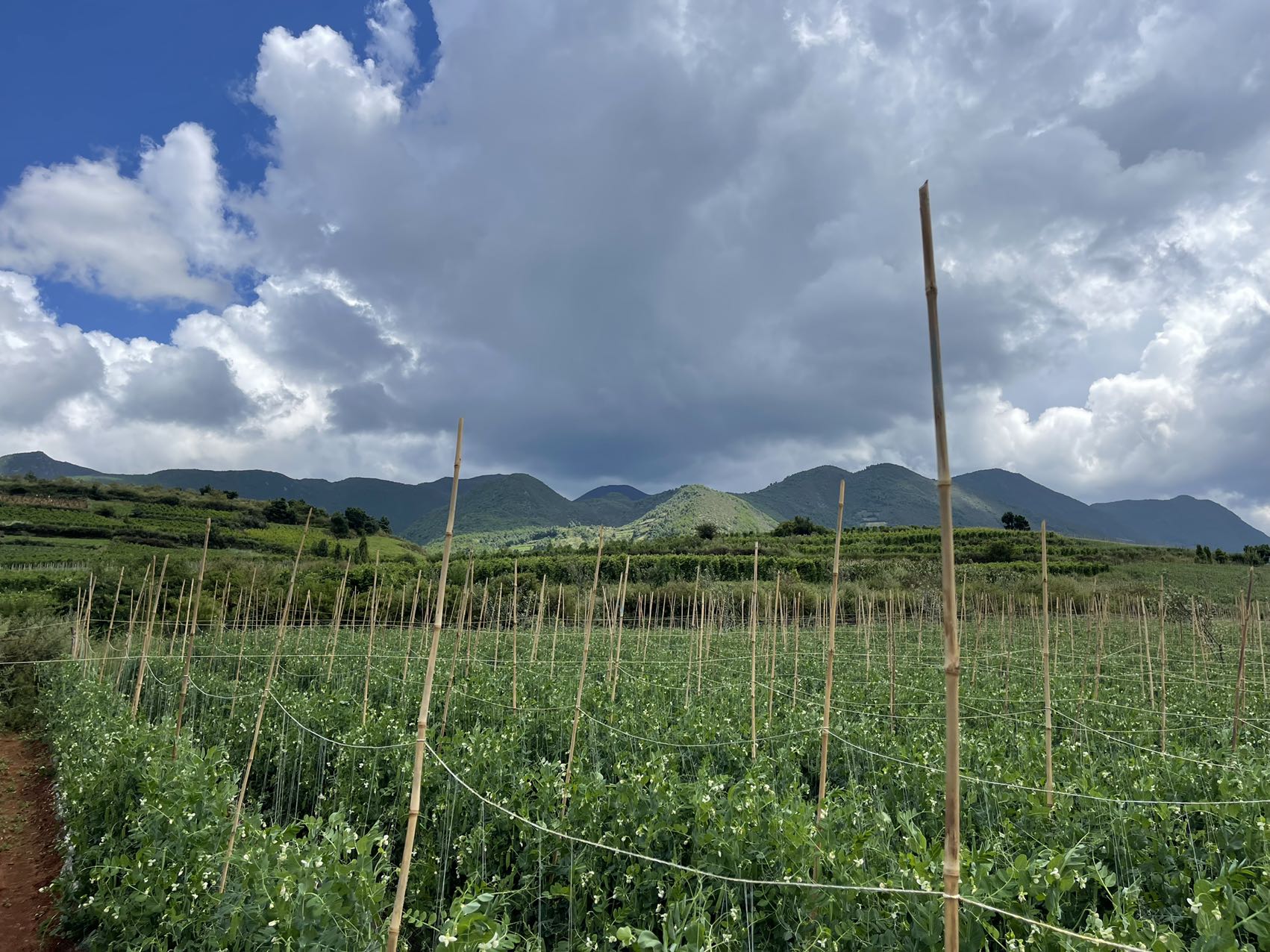 宾川位于云南省西部,金沙江南岸干热河谷地区是全国有名的柑橘之乡、葡萄之乡。宾川资源丰富,有得天独厚的热区资源优势。光照充足,热量丰沛,适合经济作物生长。在每年的7、8月份,葡萄结束后农户都会在葡萄地里套种上豌豆,充分利用资源让我们在寒冷的冬天就能吃到属于春天的味道。农户也提高了收益我们也能有新鲜蔬菜可以供给。