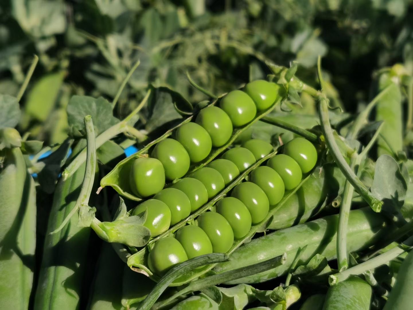豌豆其豆荚坚实而圆润,豆荚内的豆子饱满浑圆,像一颗颗翠绿的宝石。