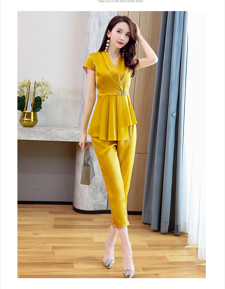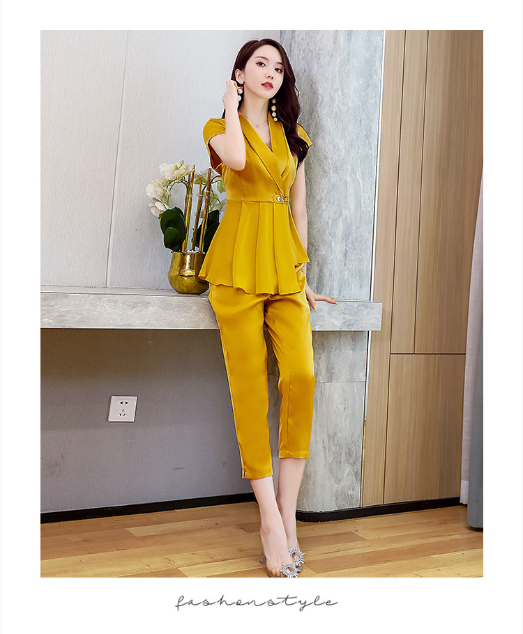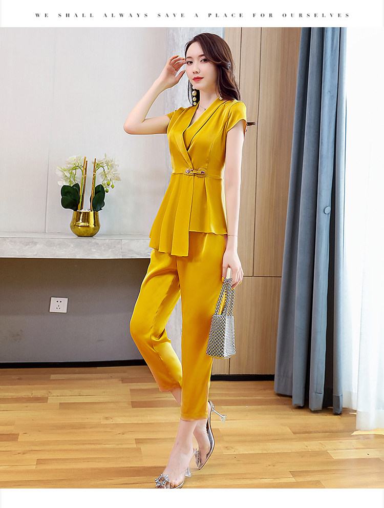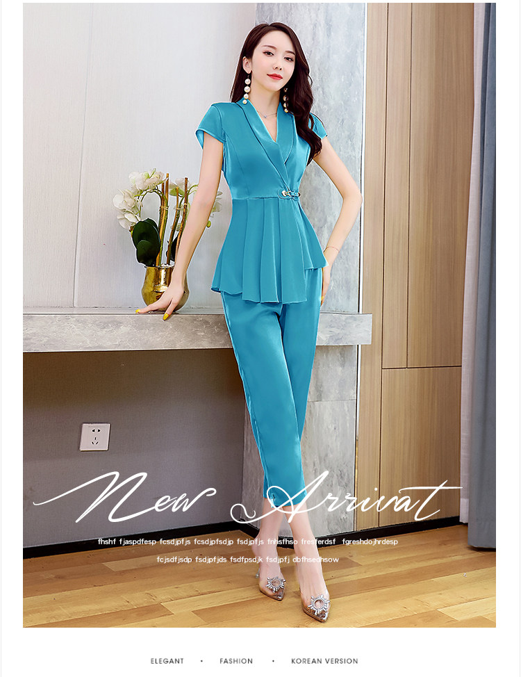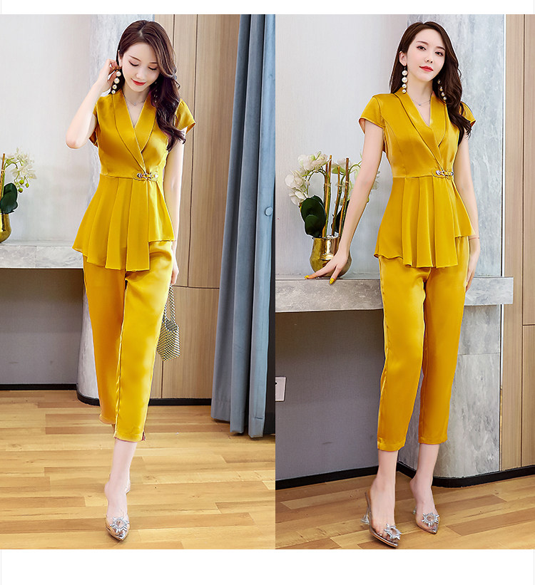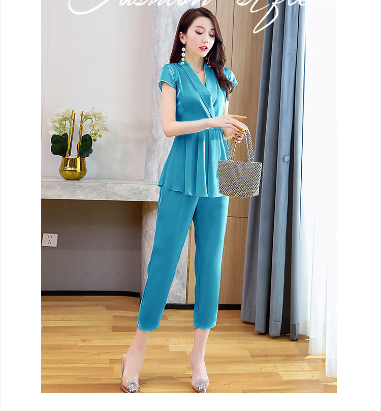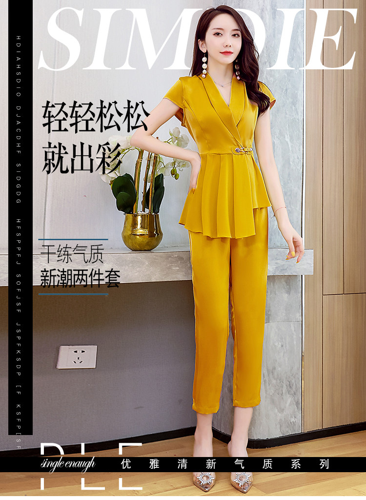 欧洲站御姐气质雪纺衫套装女2020新款时尚洋气小脚裤职业两件套夏