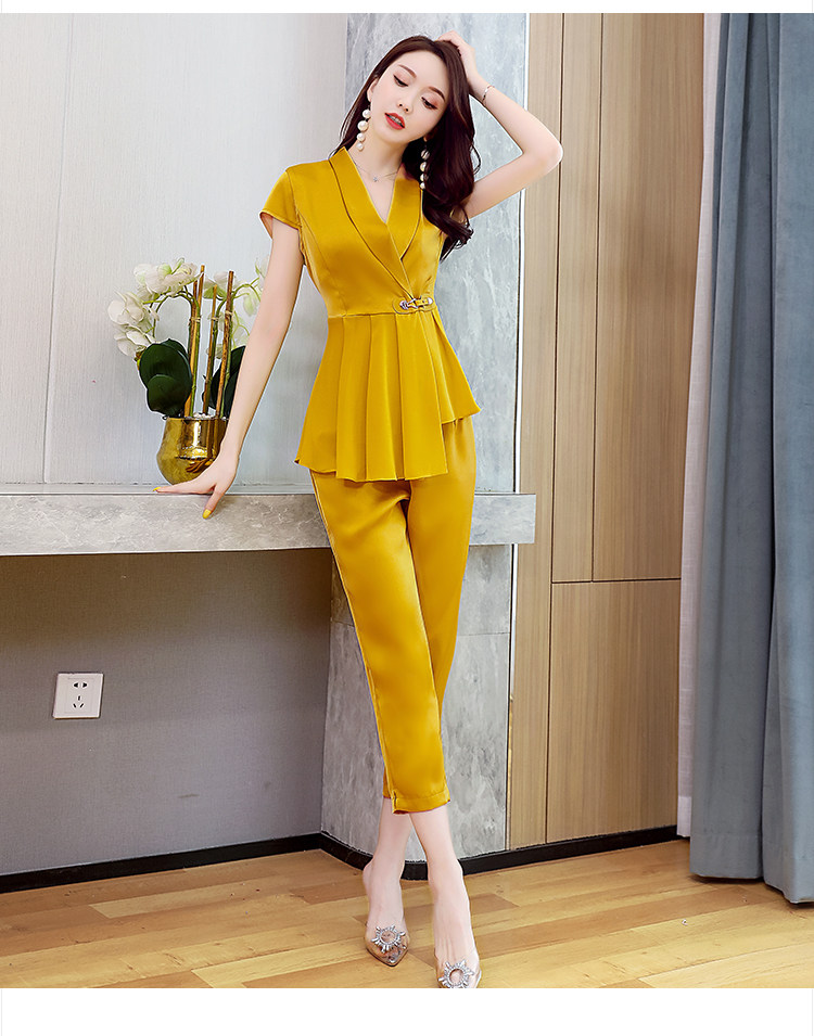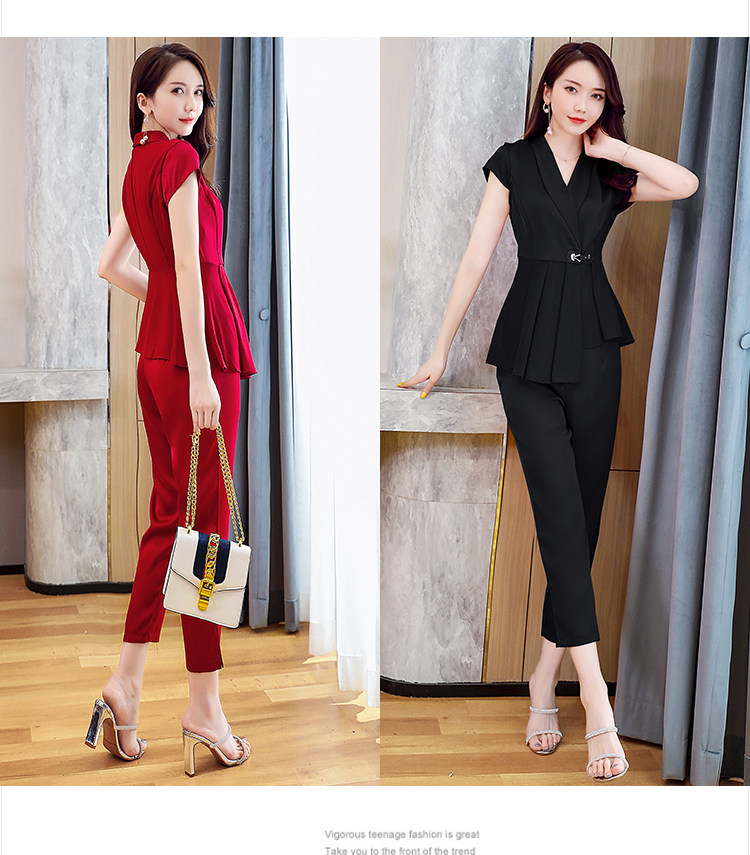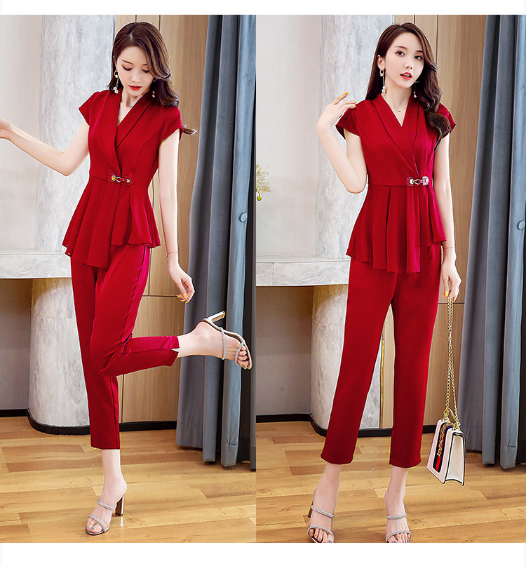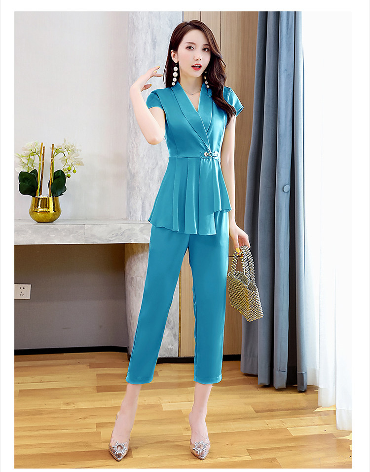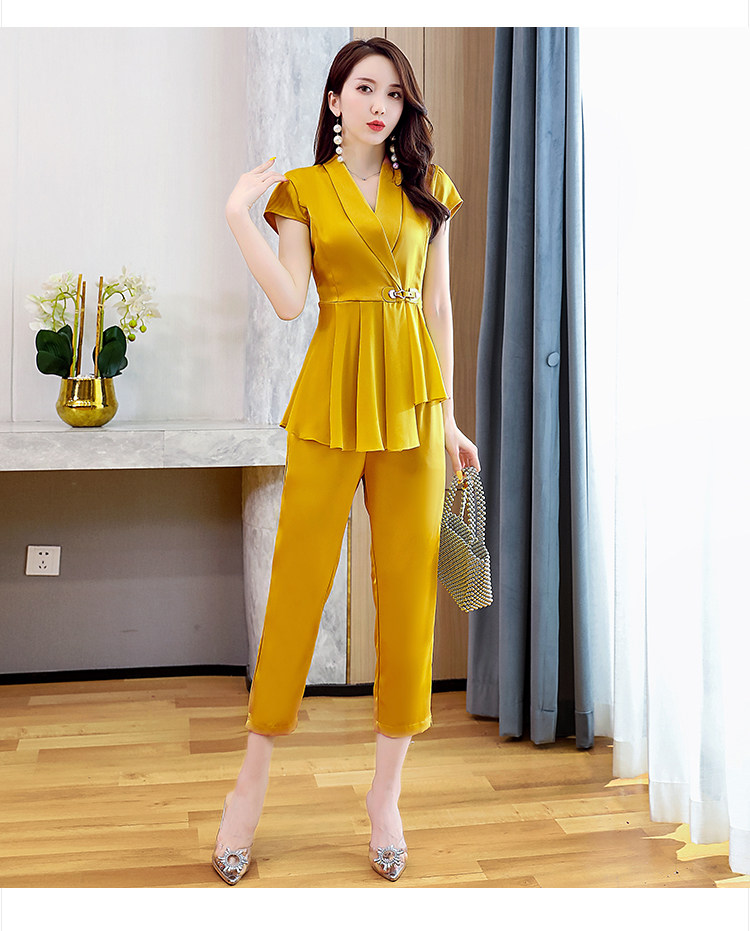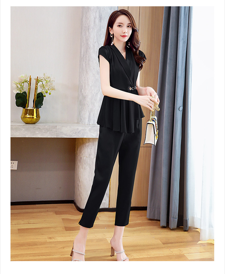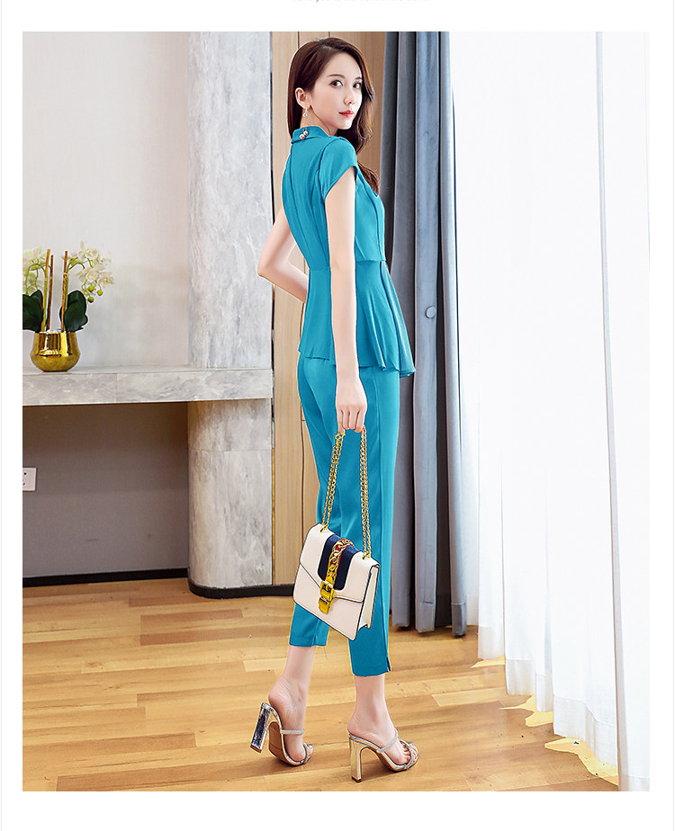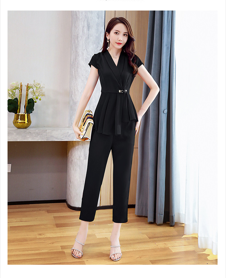 欧洲站御姐气质雪纺衫套装女2020新款时尚洋气小脚裤职业两件套夏