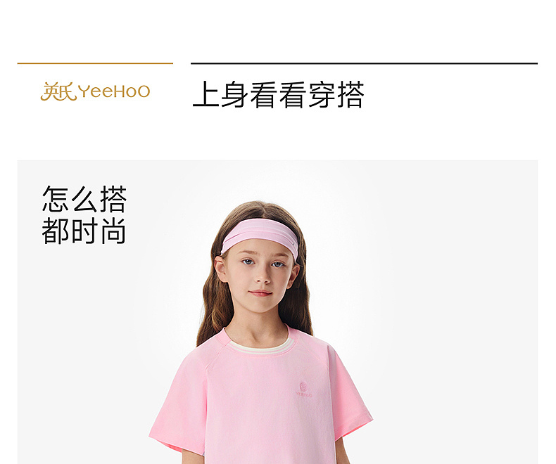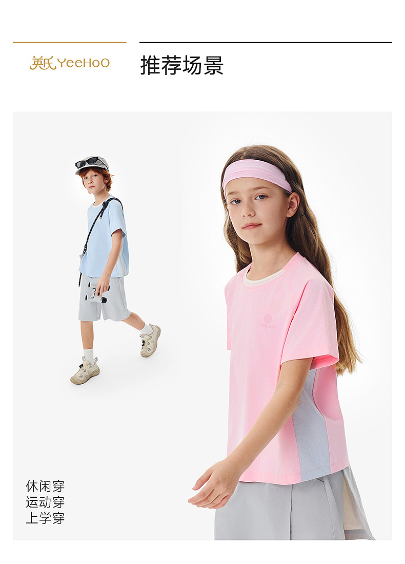 英氏儿童衣服男女童短袖T恤夏季凉感防晒上衣吸湿速干运动抑菌T恤