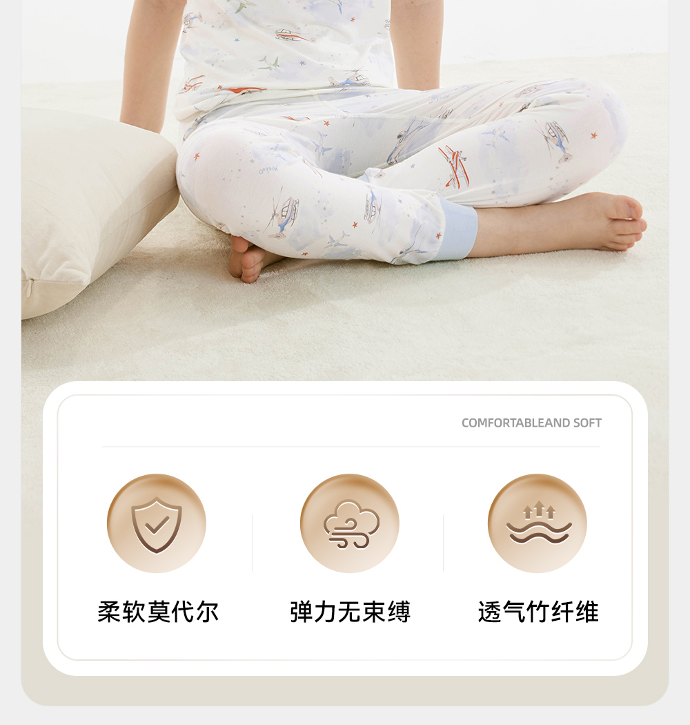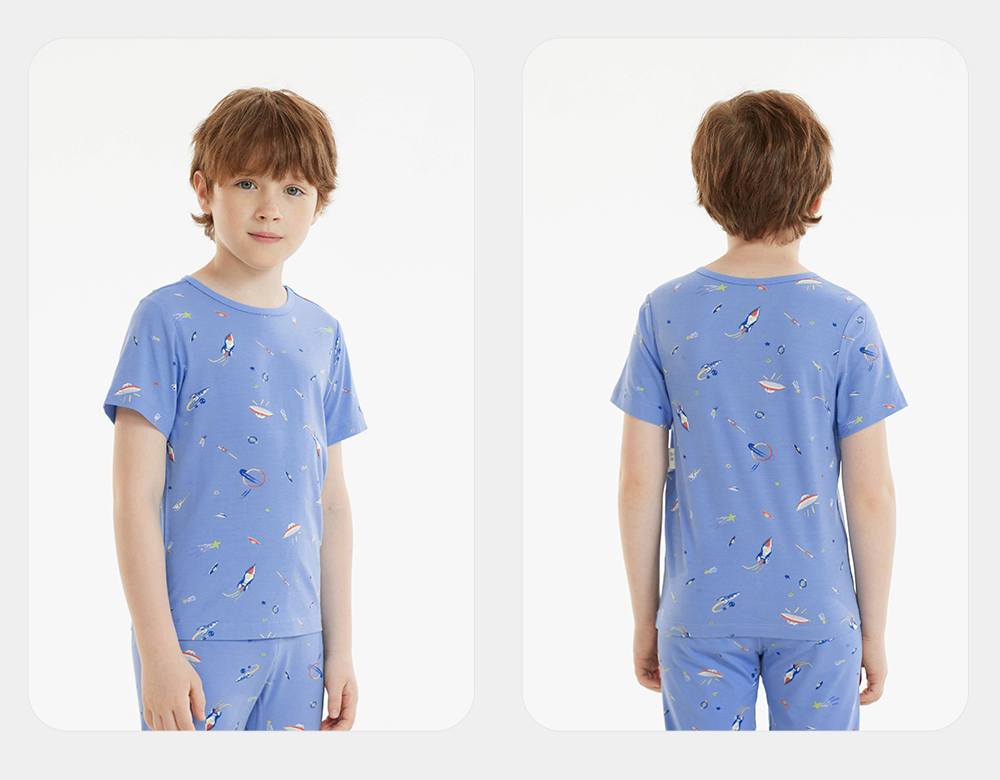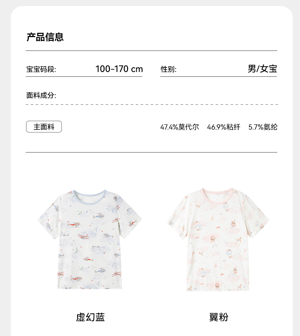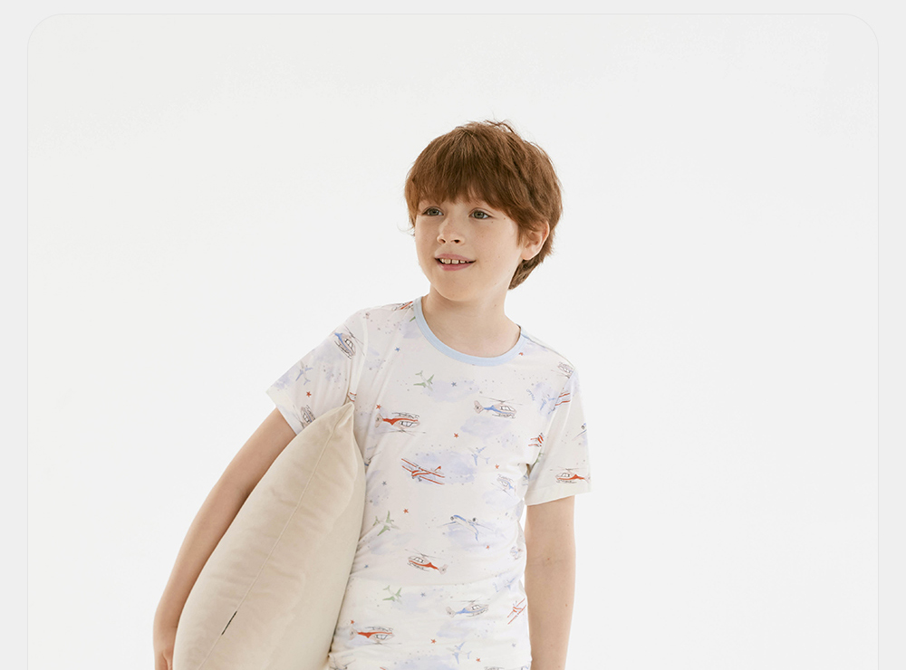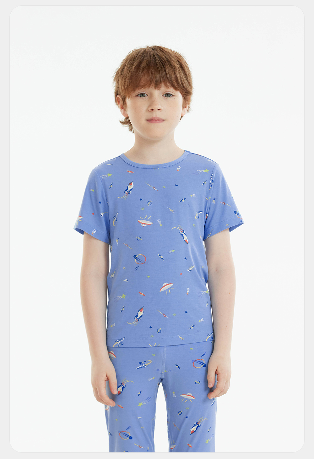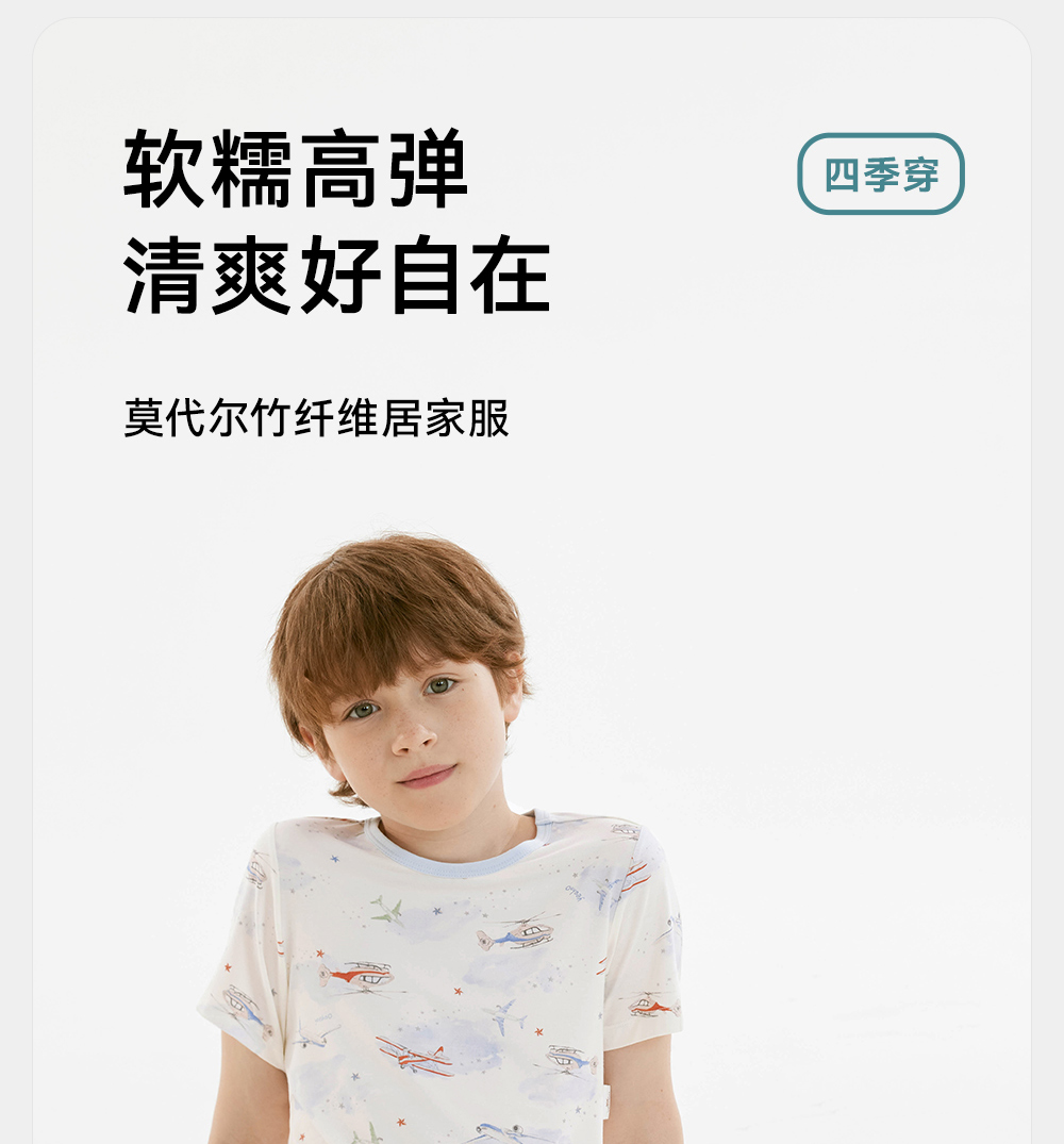 【商场同款】英氏儿童家居服上衣夏季短袖透气竹纤维睡衣男童女童