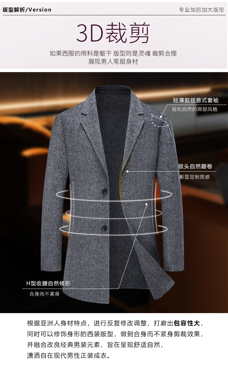 【新款DDS】大依优型大码绵羊毛双面呢毛呢大衣保暖外套上衣男士绅士胖子休闲商务
