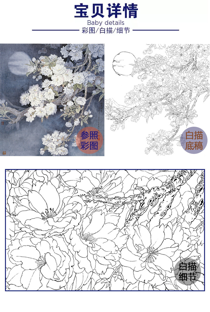 工笔花鸟白描底稿-周中耀-樱花《玉质凝香》-斗方小品册页-多种白描尺寸可选-ZT27