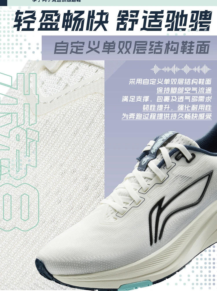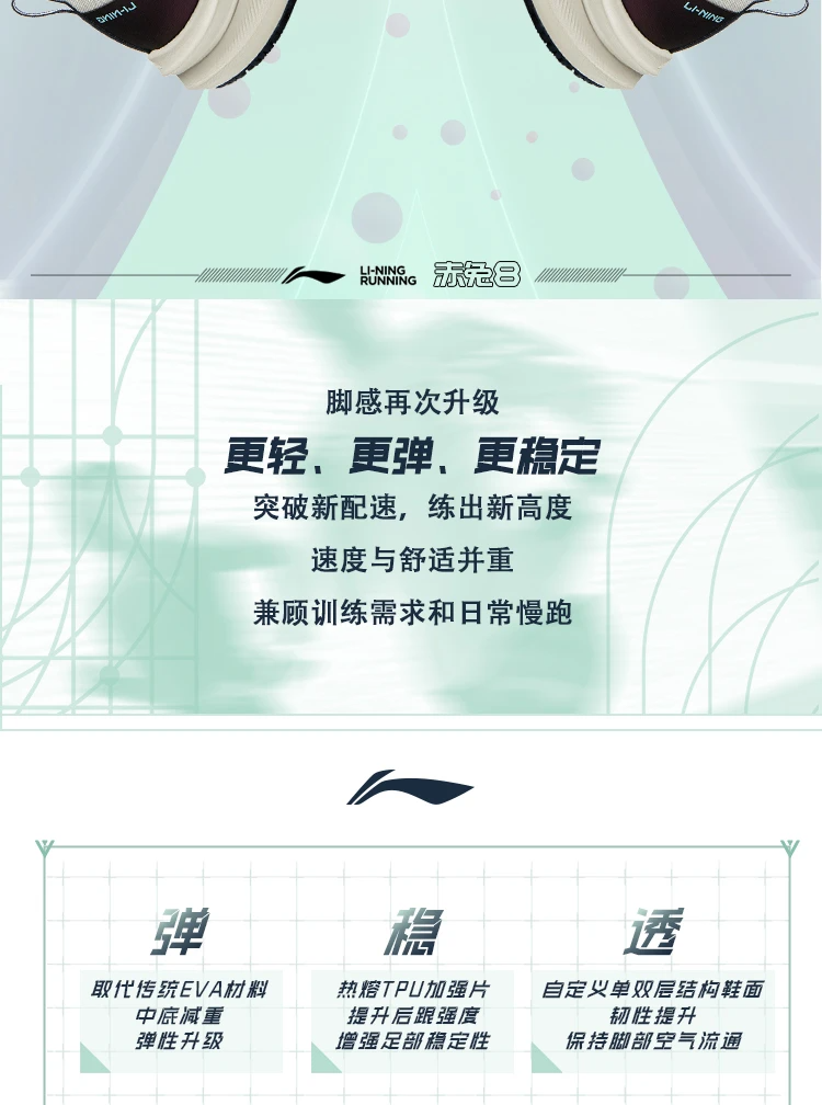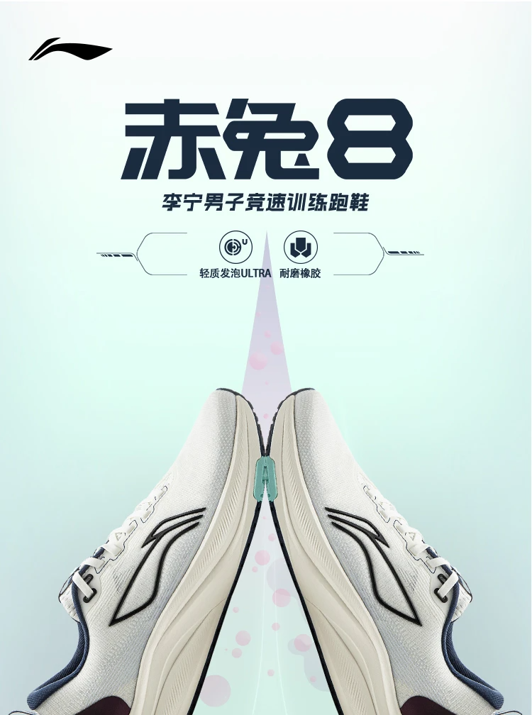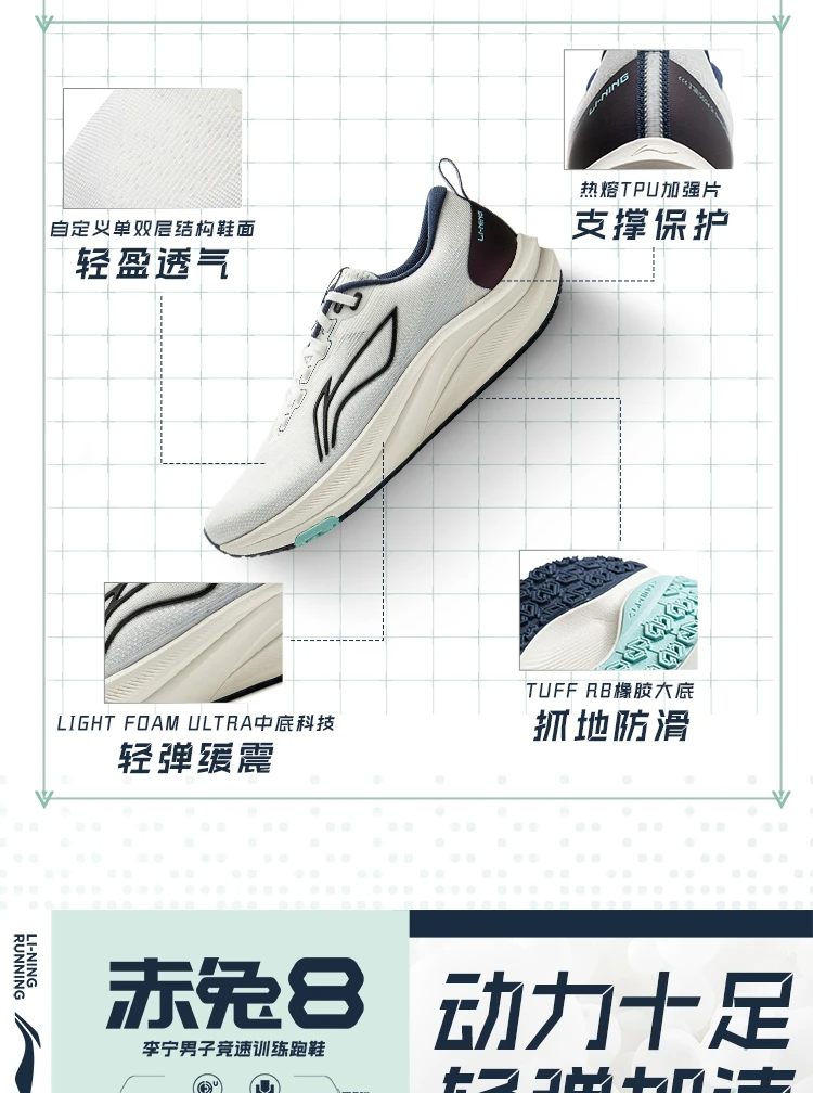 李宁赤兔8男子2025秋季新款反光轻量竞速训练跑鞋ARPV001-18