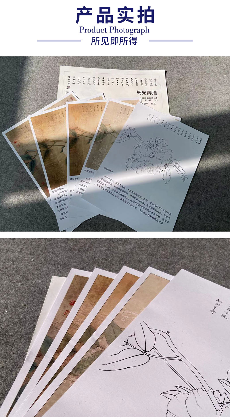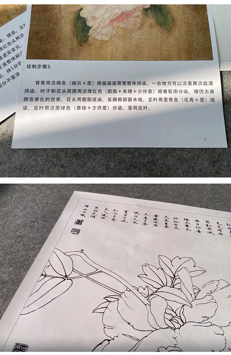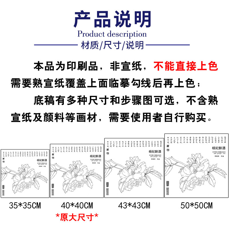 【有步骤、大彩图】李晓明工笔画白描底稿斗方小品《杨妃醉酒》牡丹初学者临摹花鸟线稿KD17