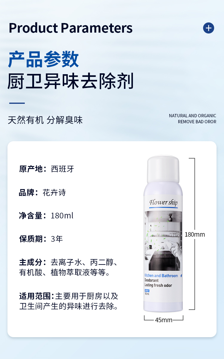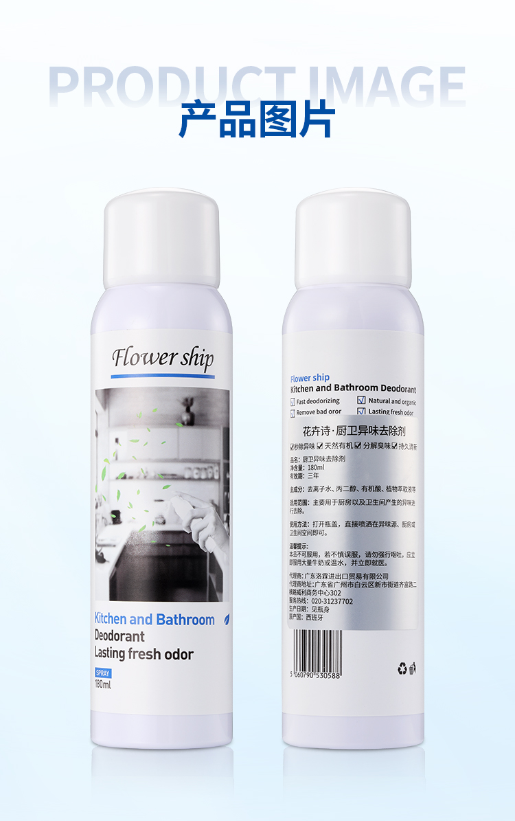 花卉诗厨房除味神器去油烟味喷雾下水道消除异味橱柜子除臭除霉味清新剂