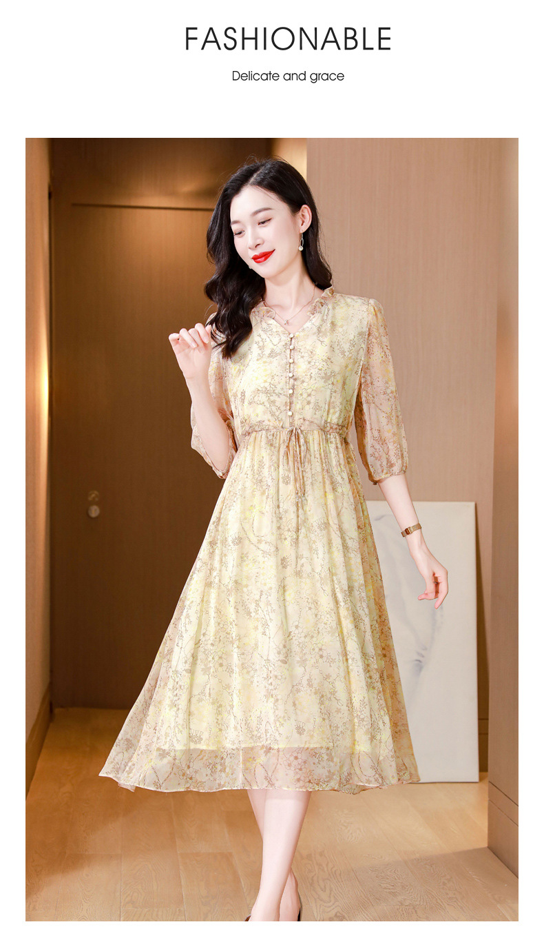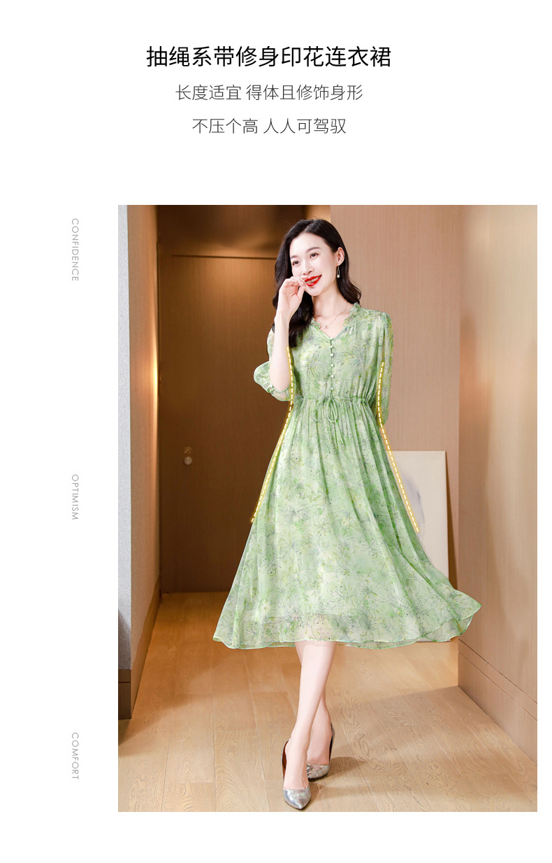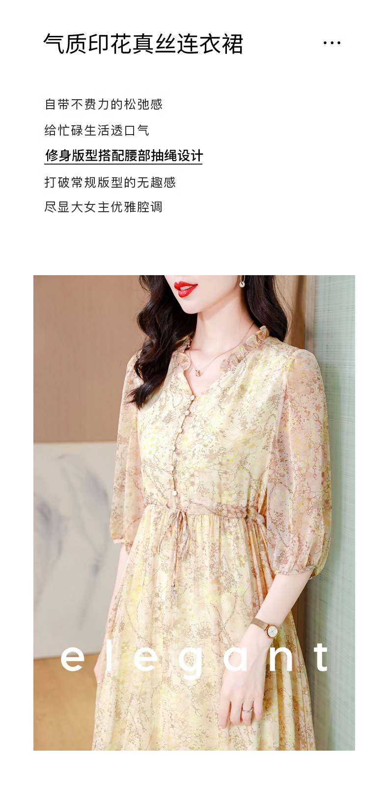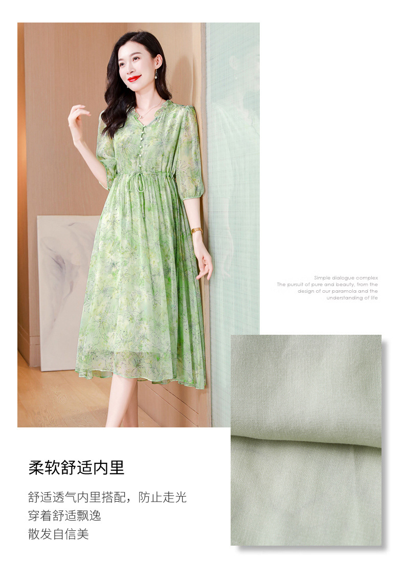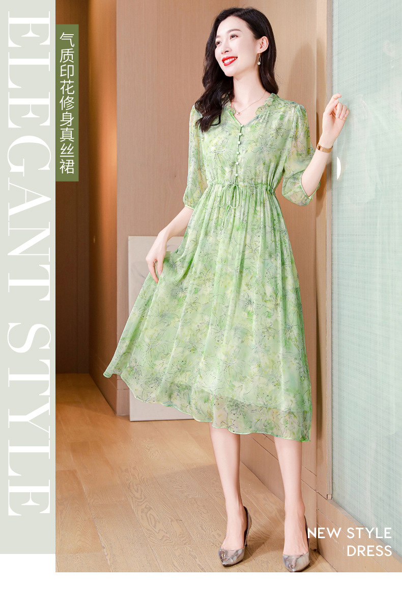 ASE-25015夏季V领气质优雅时尚真丝连衣裙