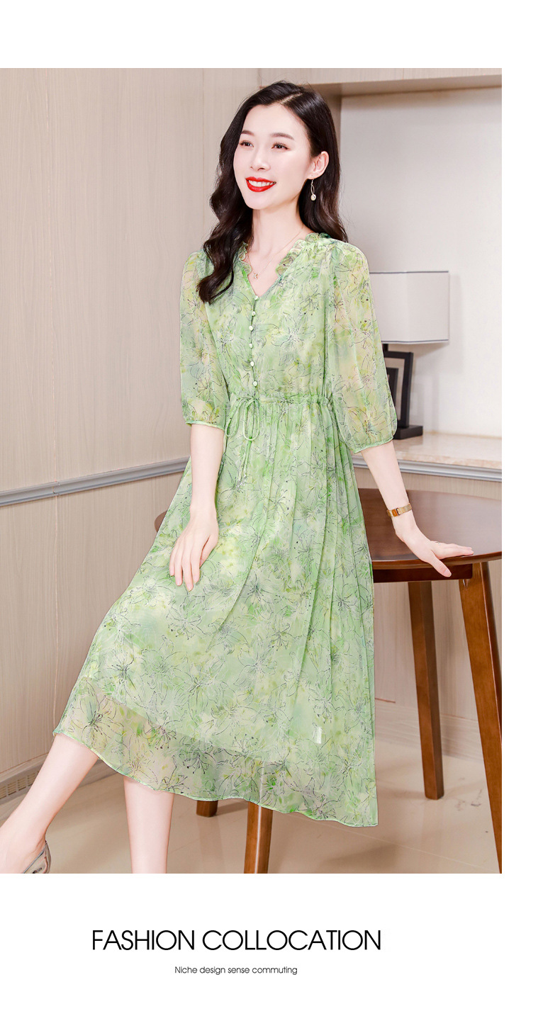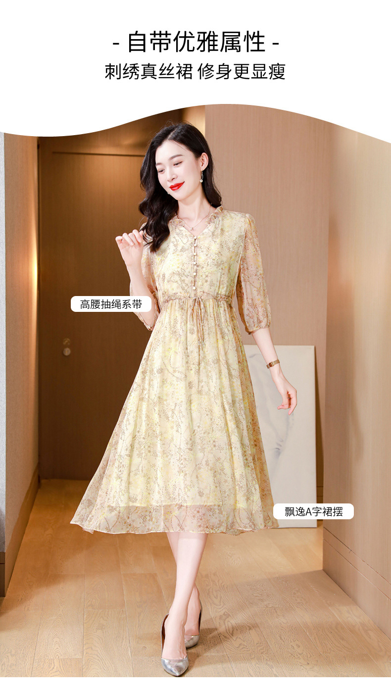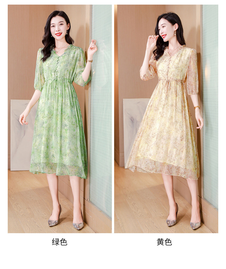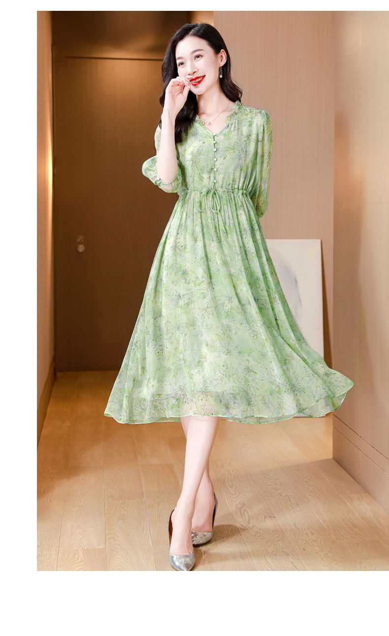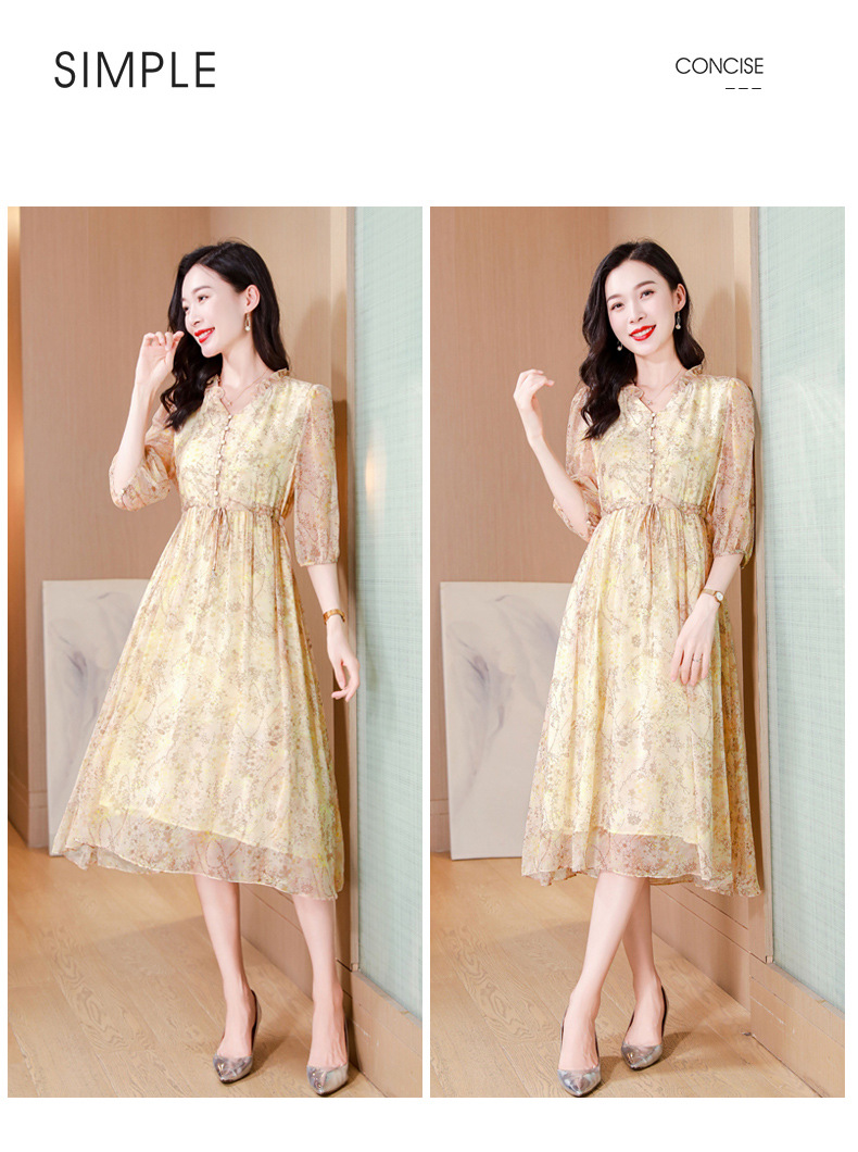 ASE-25015夏季V领气质优雅时尚真丝连衣裙