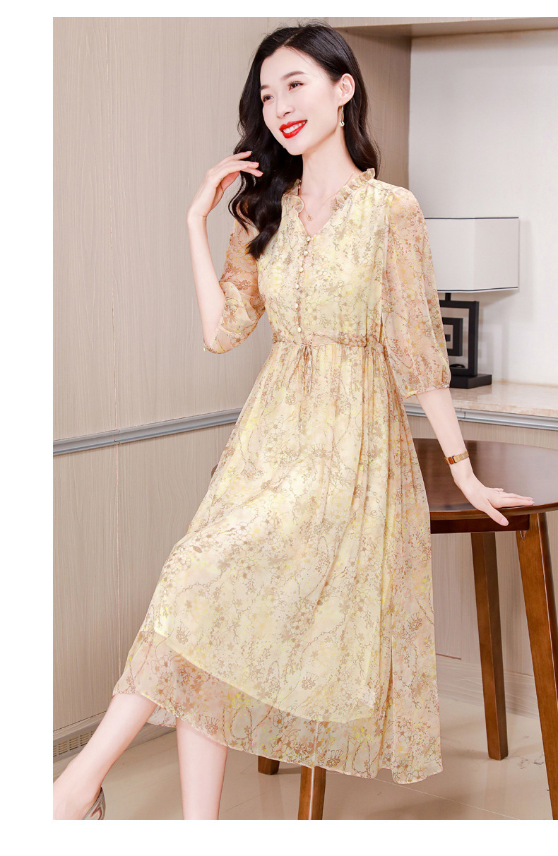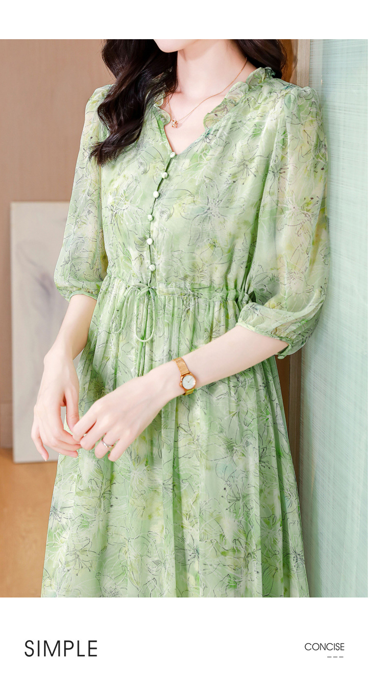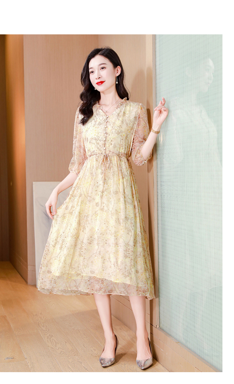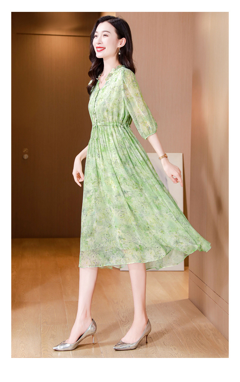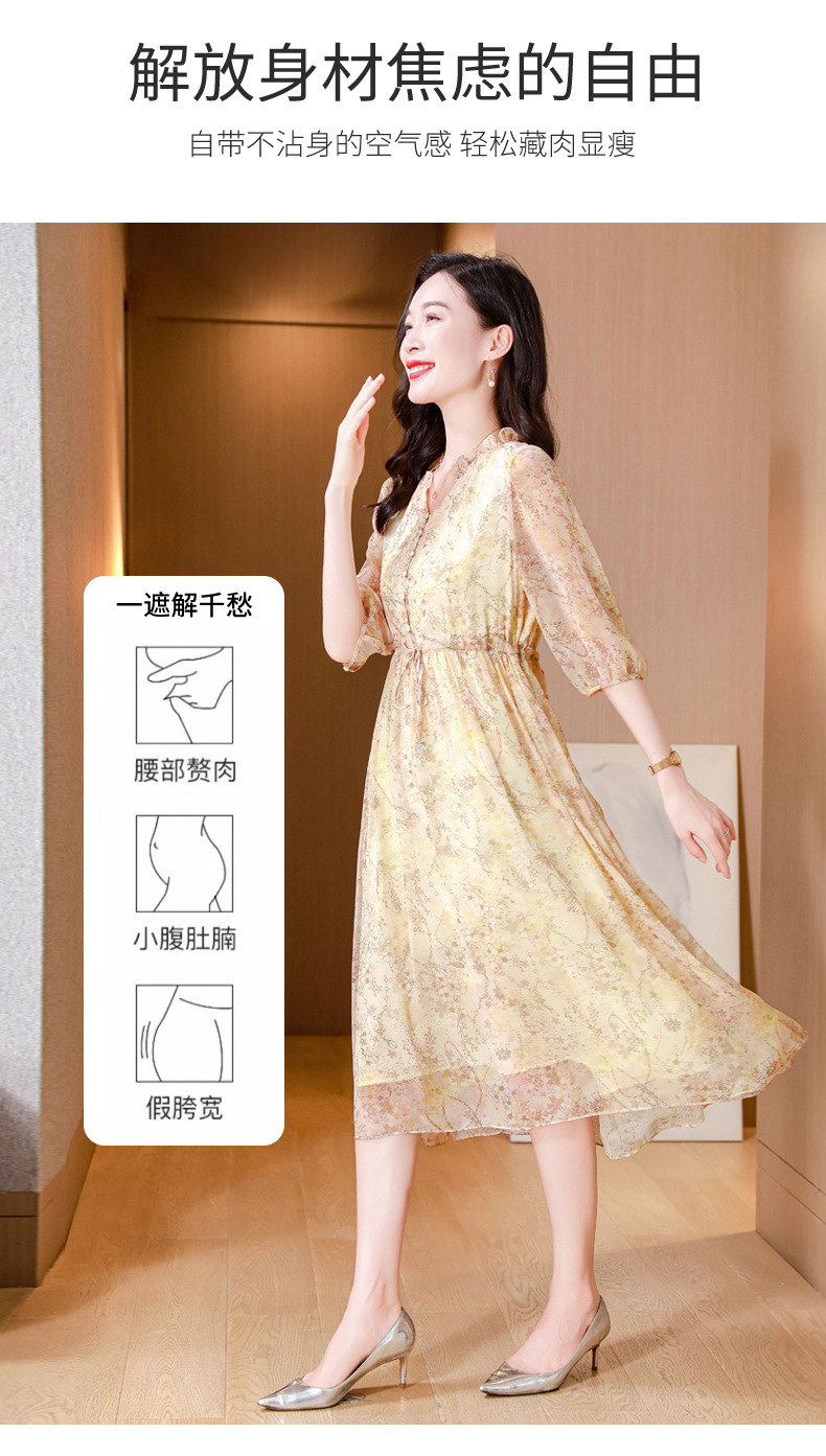 ASE-25015夏季V领气质优雅时尚真丝连衣裙