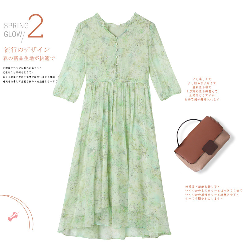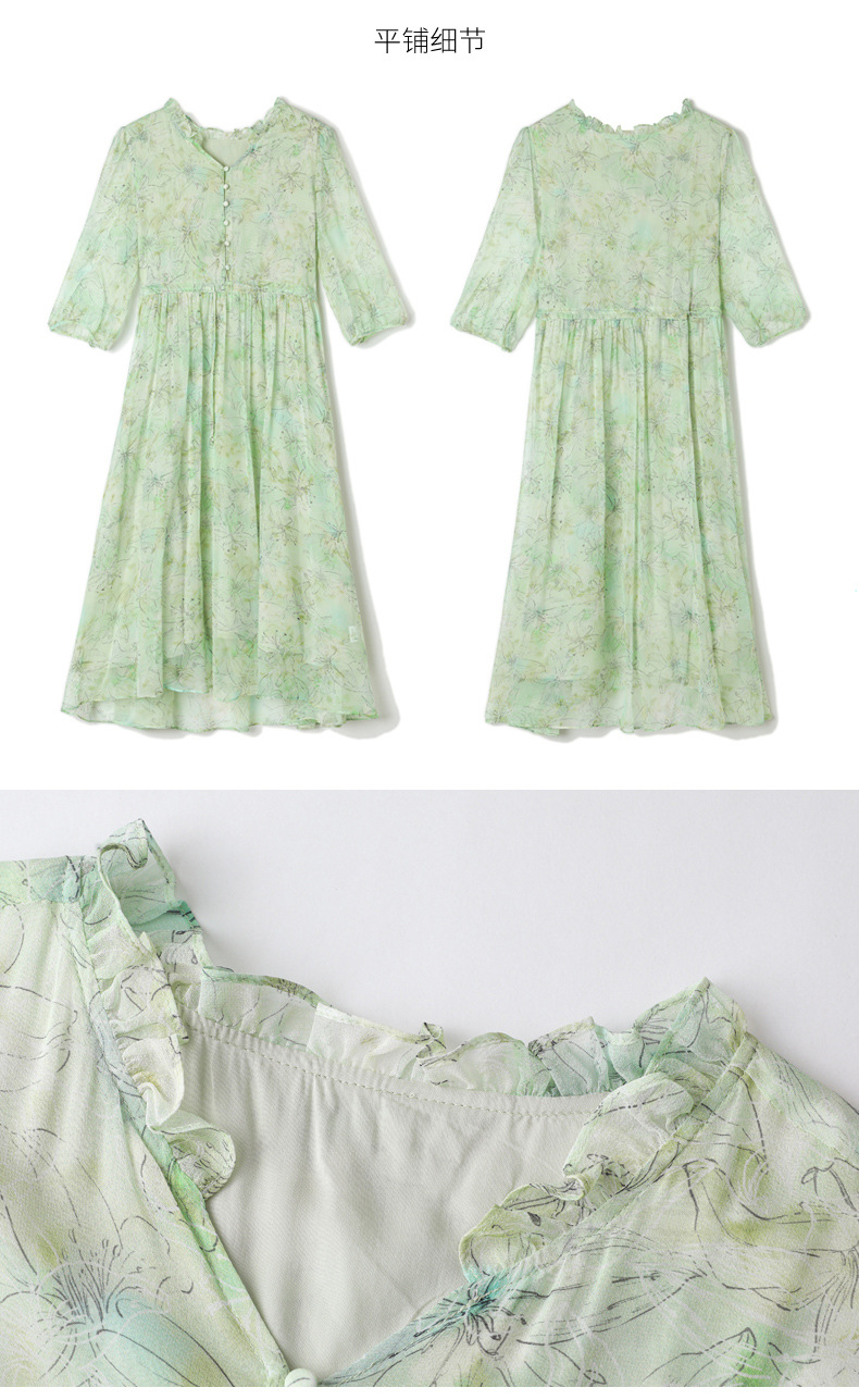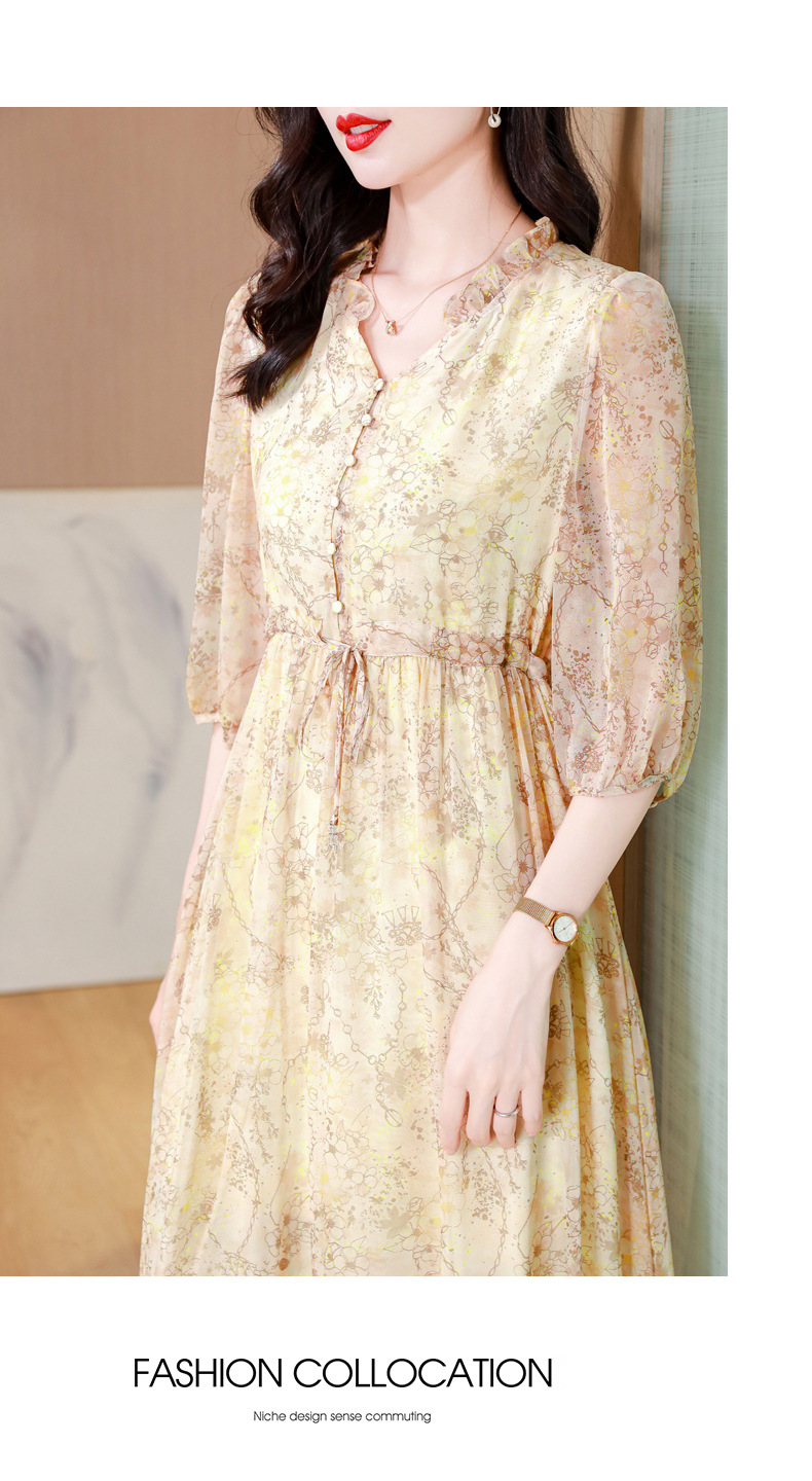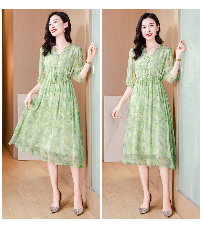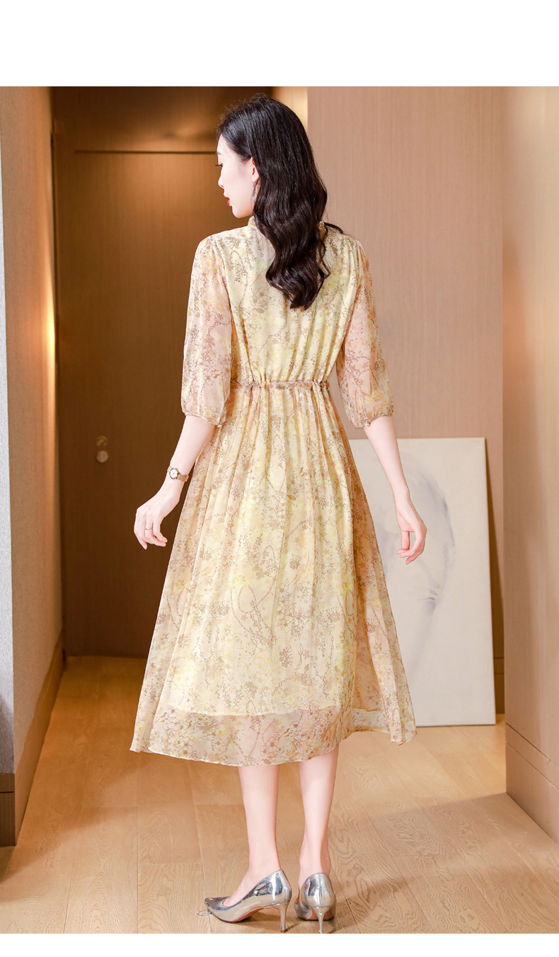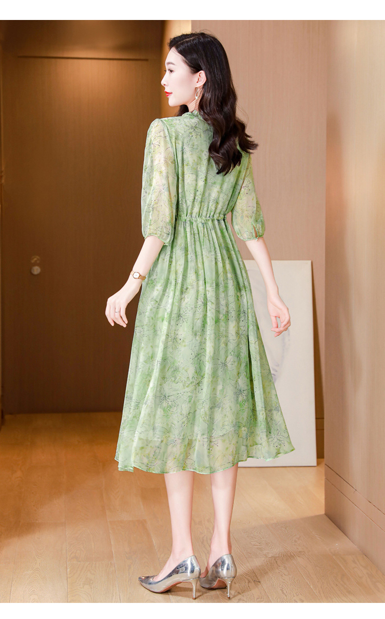 ASE-25015夏季V领气质优雅时尚真丝连衣裙