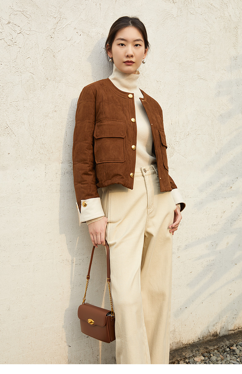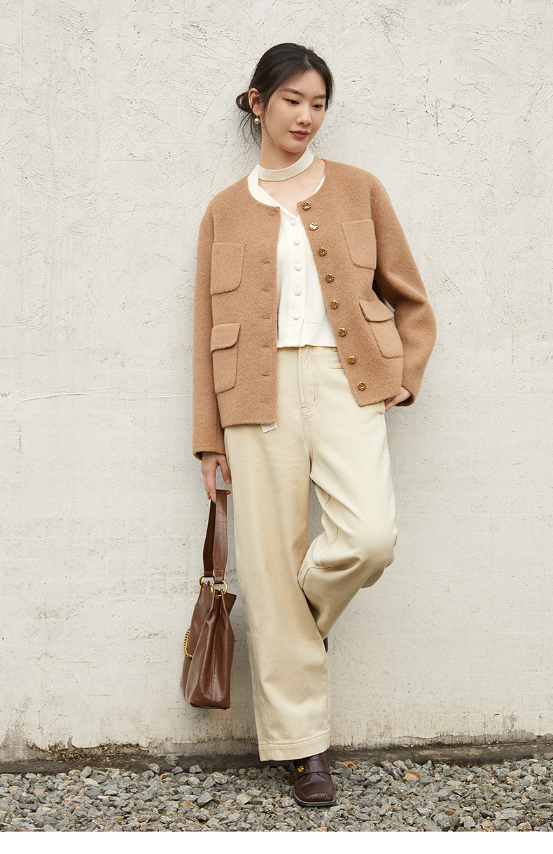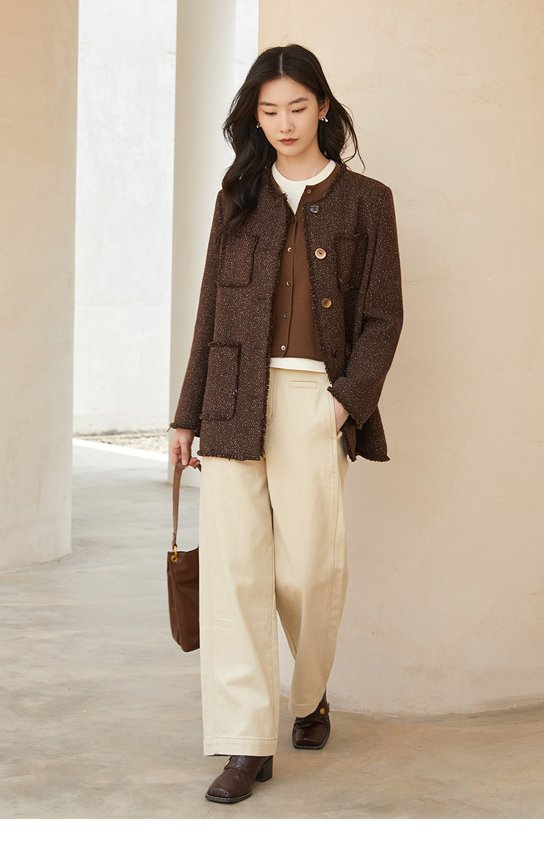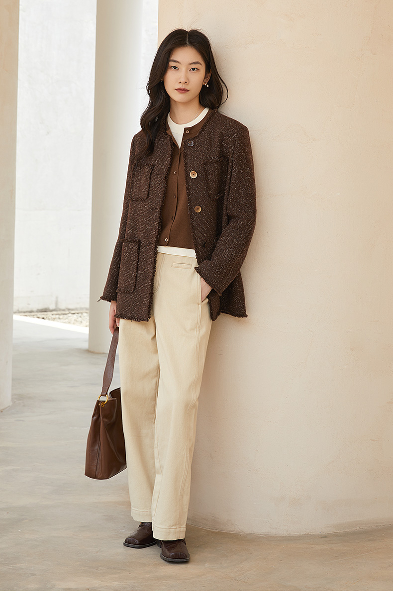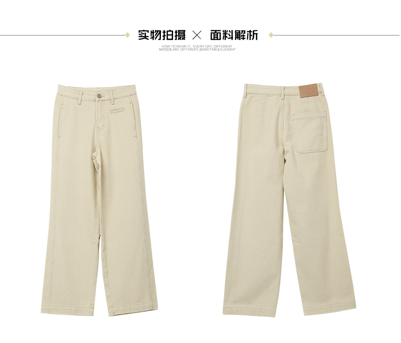 2025 秋冬浅卡其色阔腿休闲裤女 高腰显瘦直筒九分裤 简约明线设计通勤百搭宽松工装风裤子