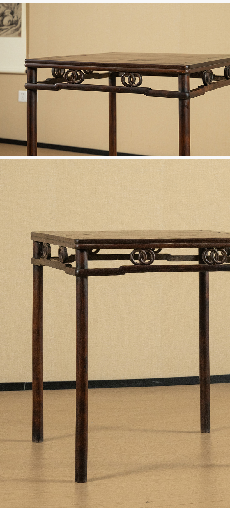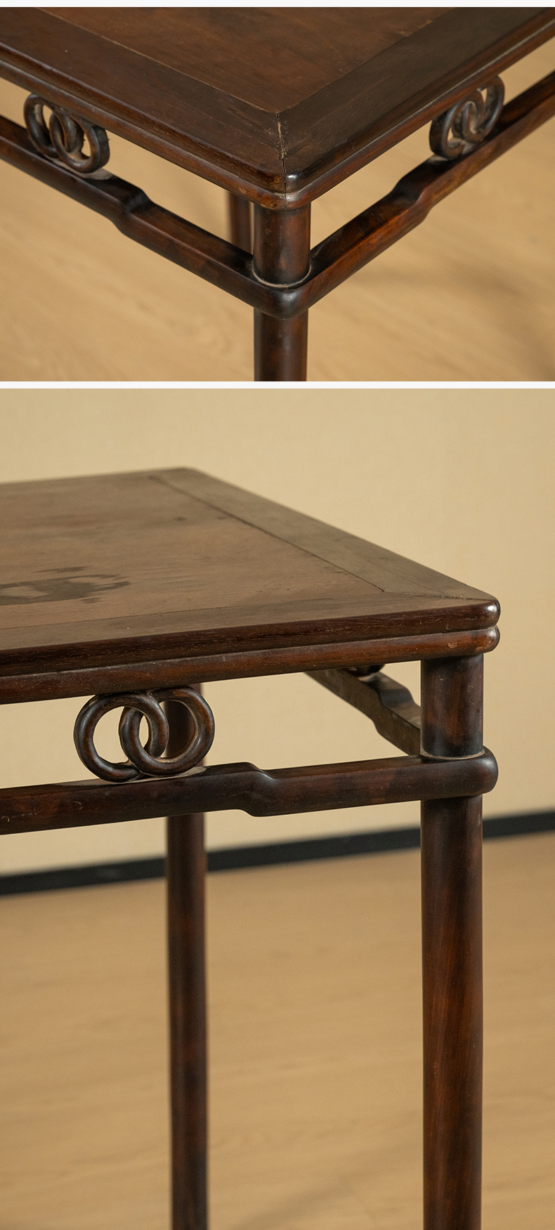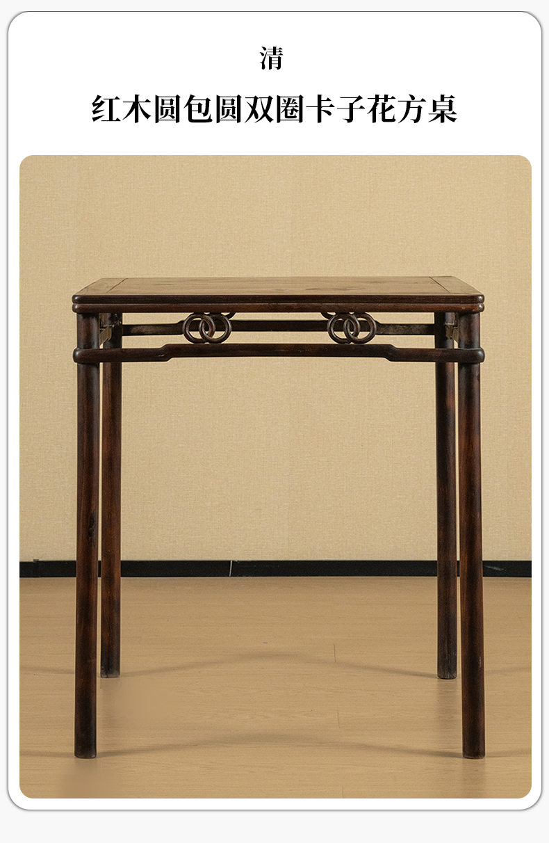 清 红木圆包圆双圈卡字花方桌