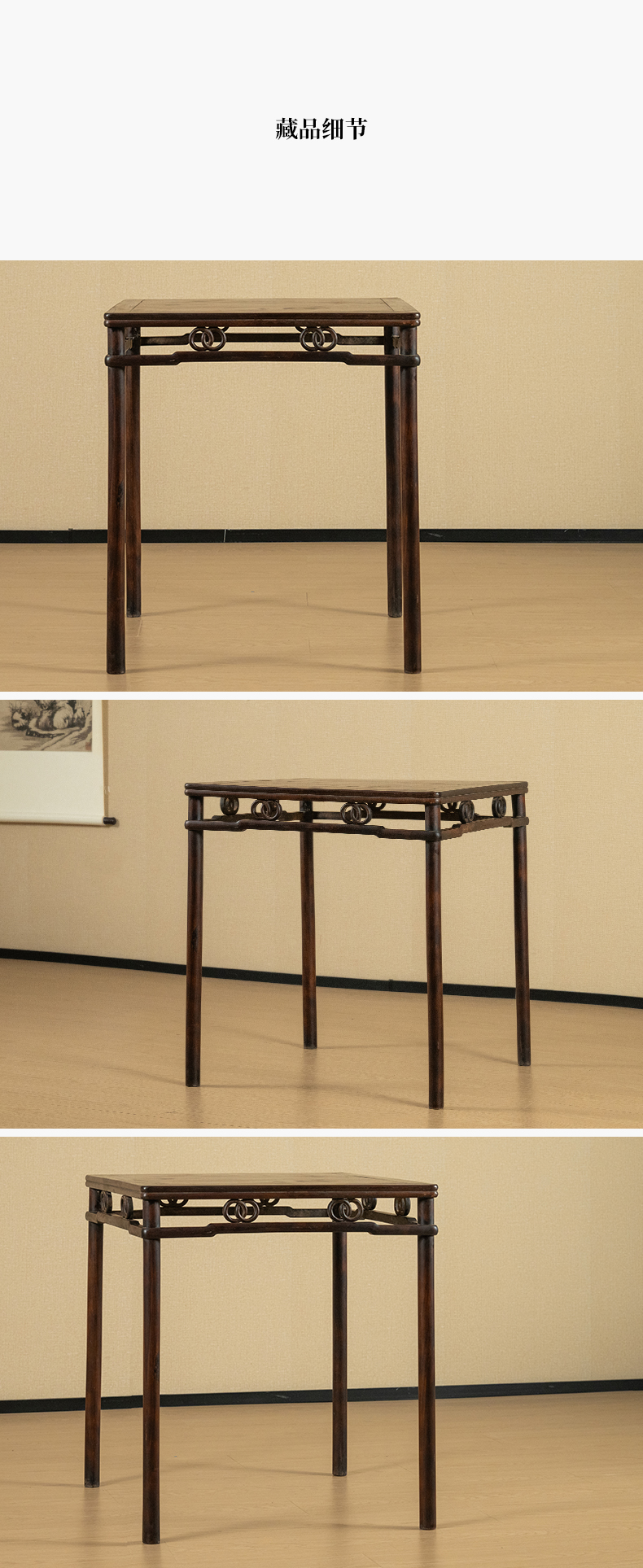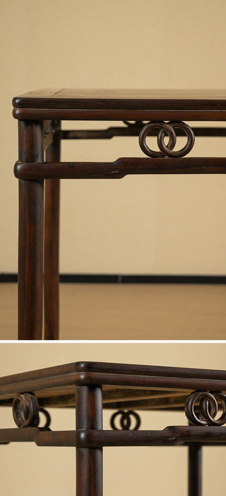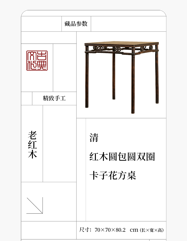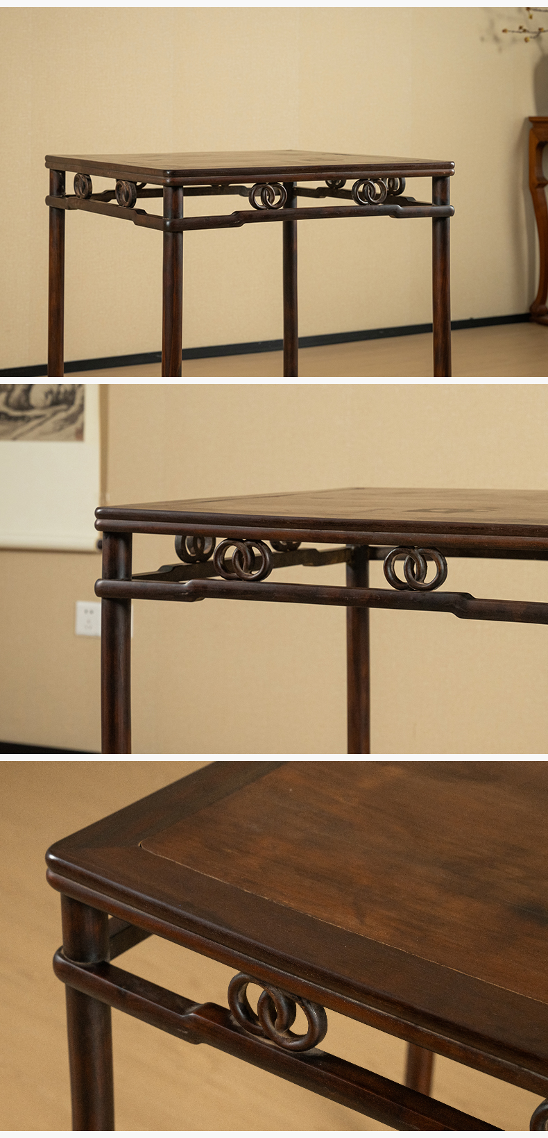 清 红木圆包圆双圈卡字花方桌