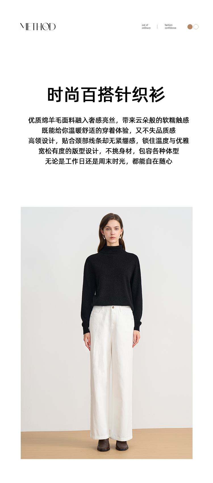 EITIE爱特爱半高领针织衫羊毛打底衫宽松保暖毛衣2025秋冬新款针织衫D2501901