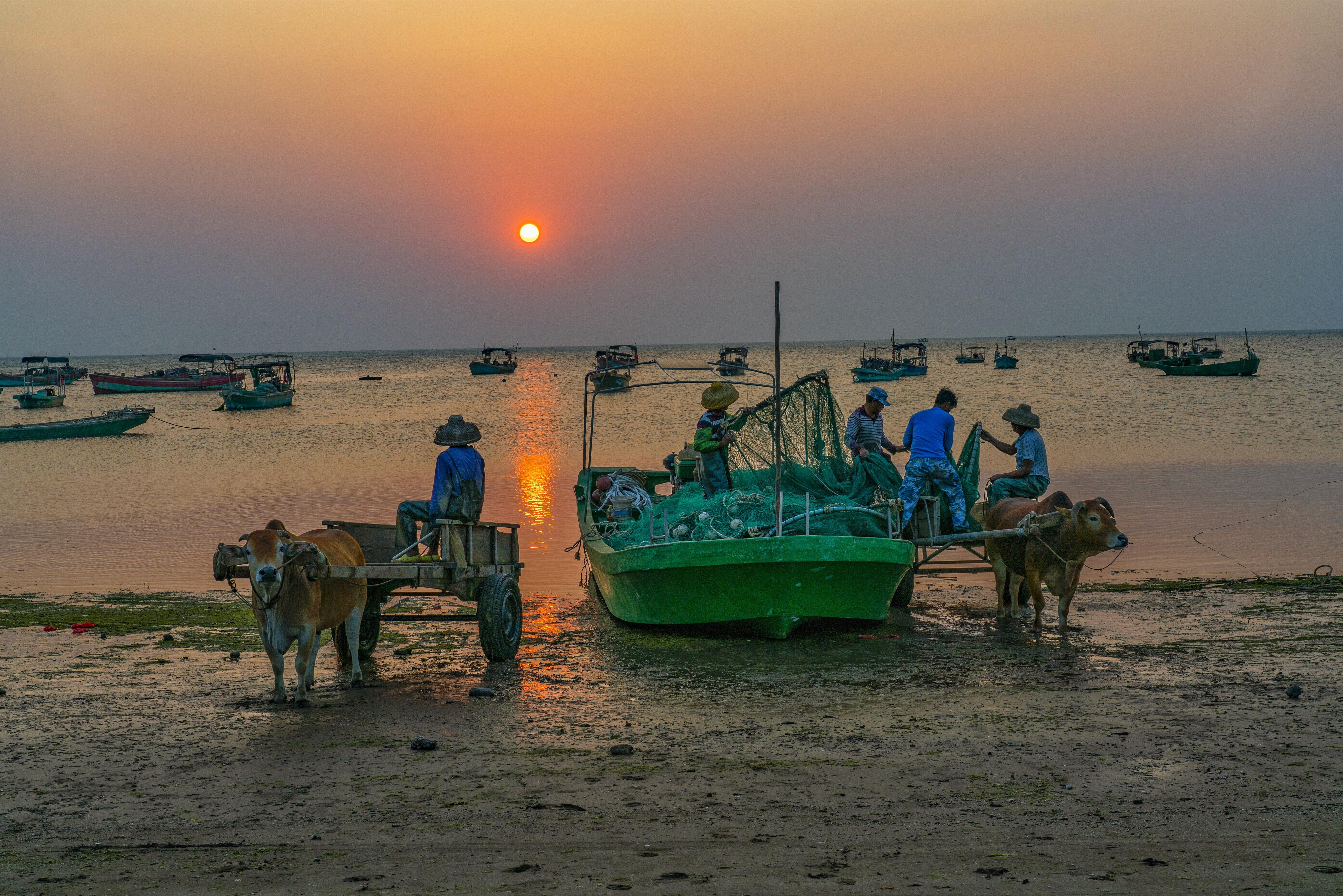 上午拍摄白茅海日出+外罗渔港,以及农场养蚕人文,下午拍徐闻最南端灯楼角风光+海边牛车拉网下船(自费)