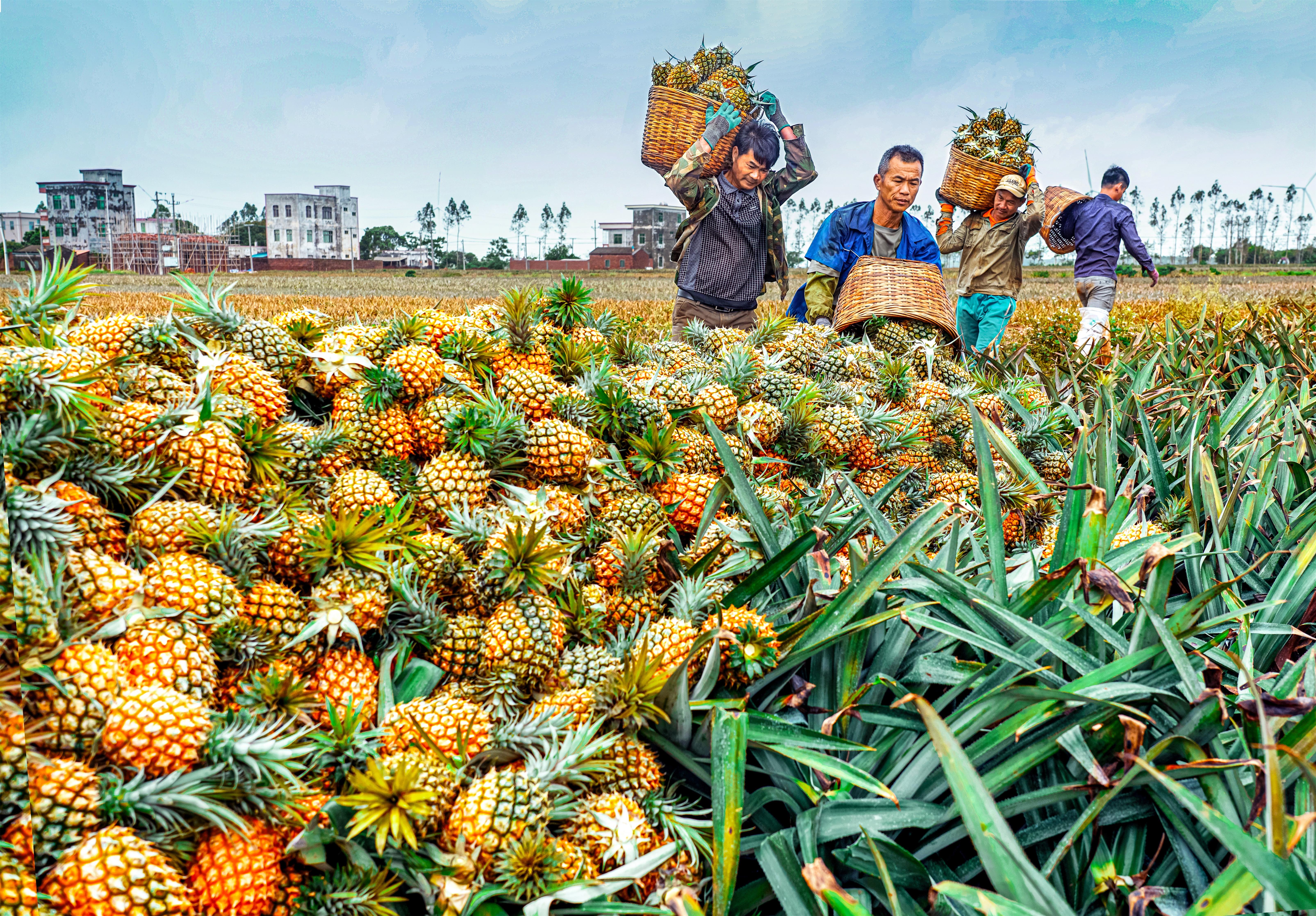 徐闻被称为中国菠萝之乡,广袤的菠萝种植园形成的“菠萝的海”,被誉为中国最壮美的菠萝种植景观,这里出产的菠萝占了全国菠萝总产量的三分之一。独特的丰收人文创作。(非菠萝收成季节,仅进行产地方块田创作。)