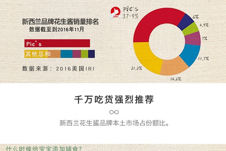 【新西兰直邮】Pic's 花生酱丝滑 红盖 380gJPY带授权招加盟代理
