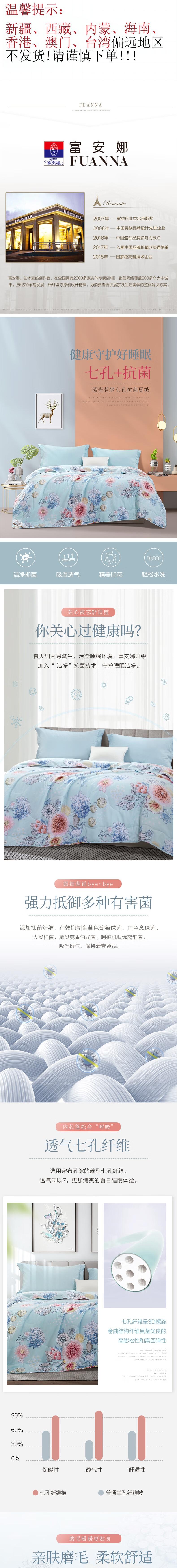 富安娜 流光若梦七孔抗菌夏被/152*210/蓝/250g 6916517654862