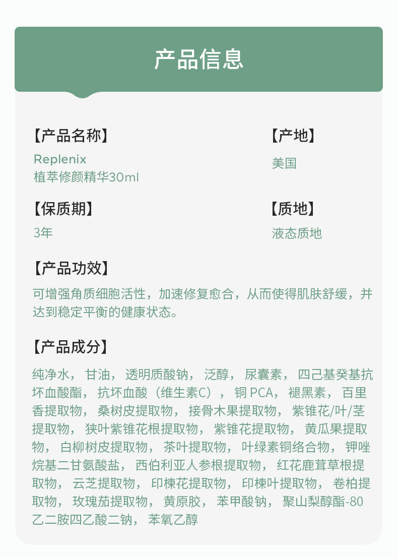 【保税仓】Topix REPLENIX 植萃修颜精华30ml 效期2027年9月
