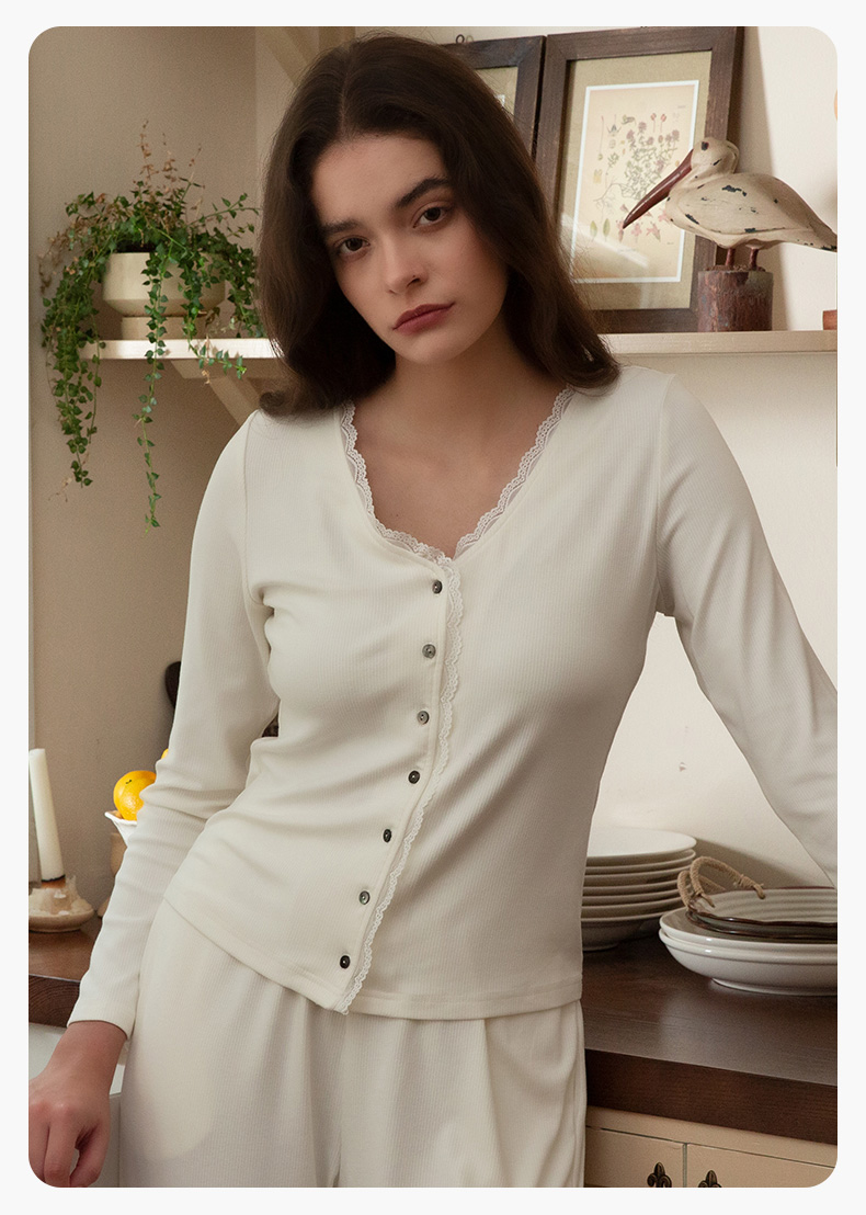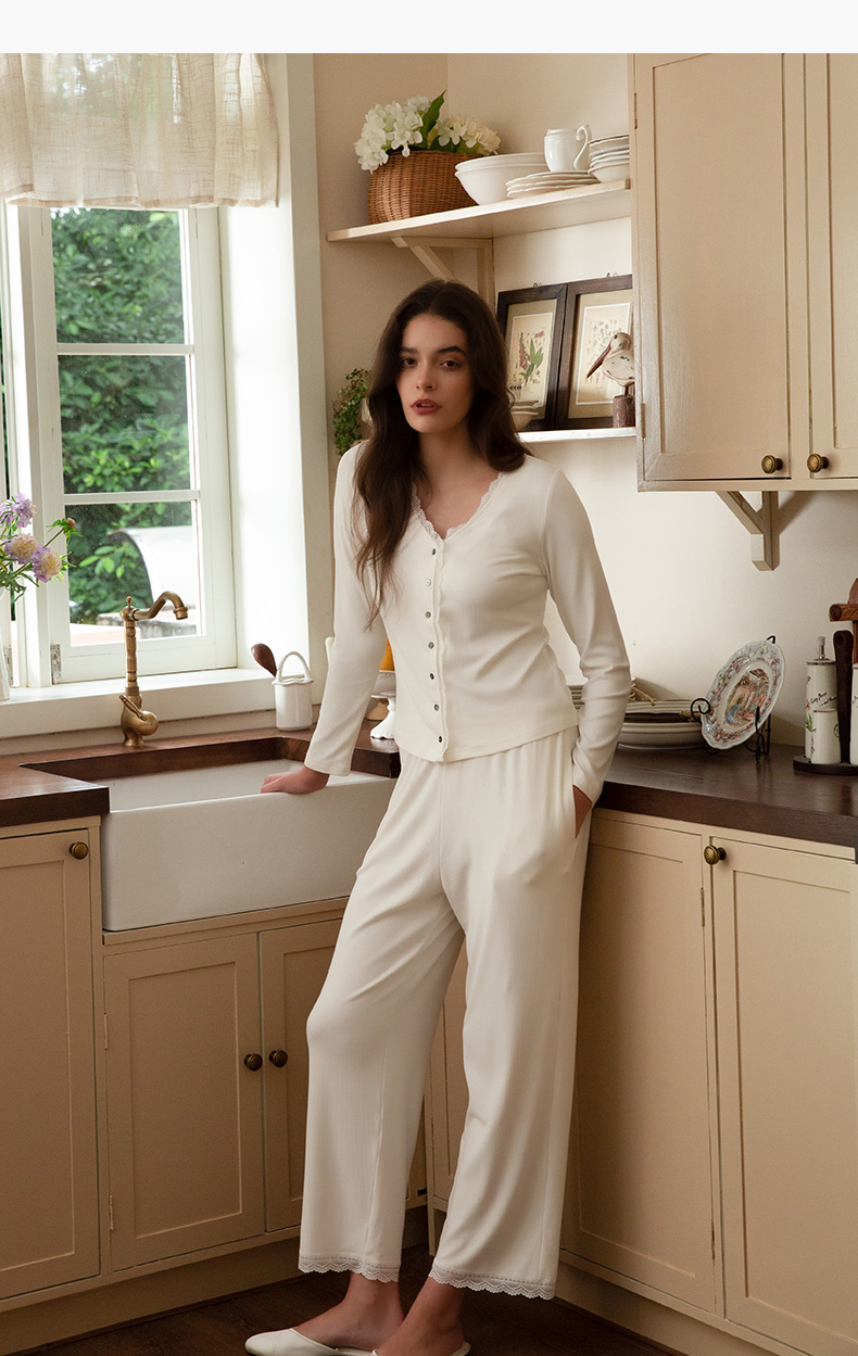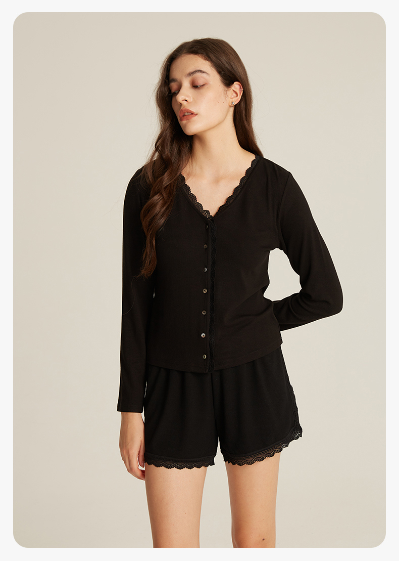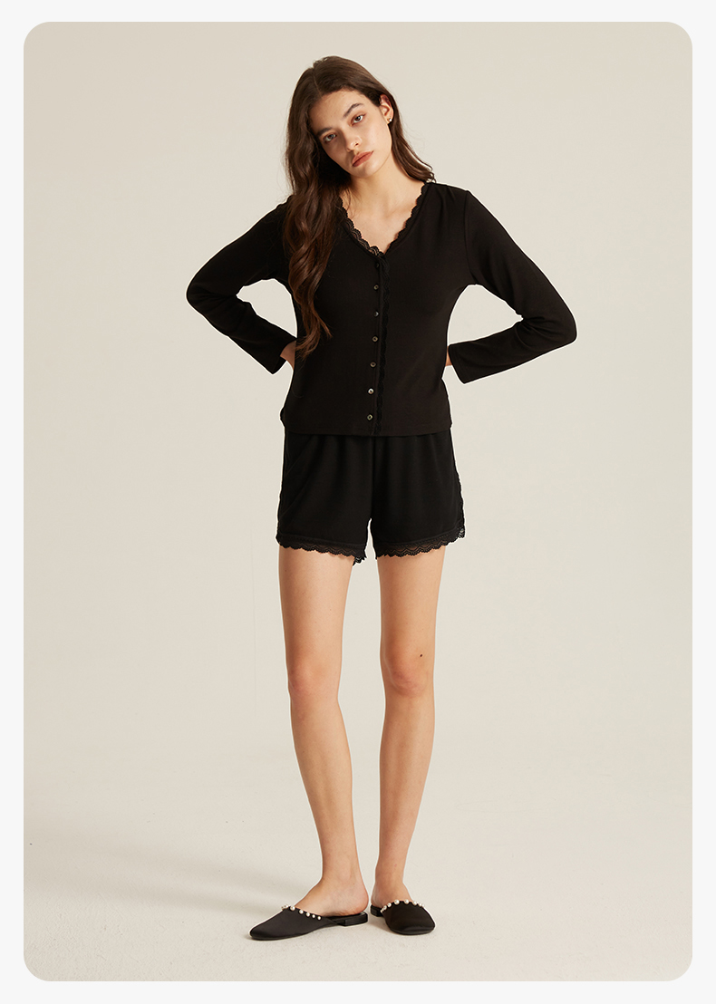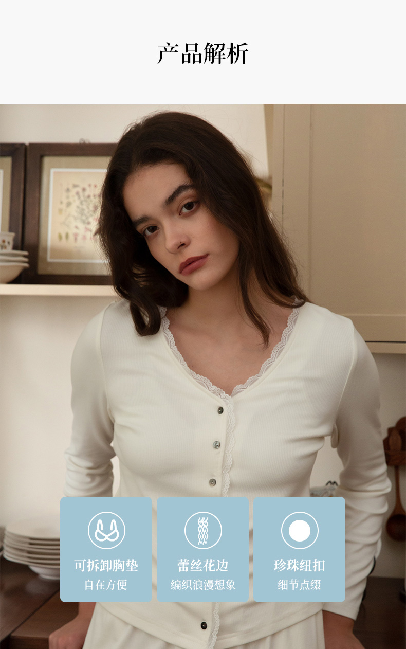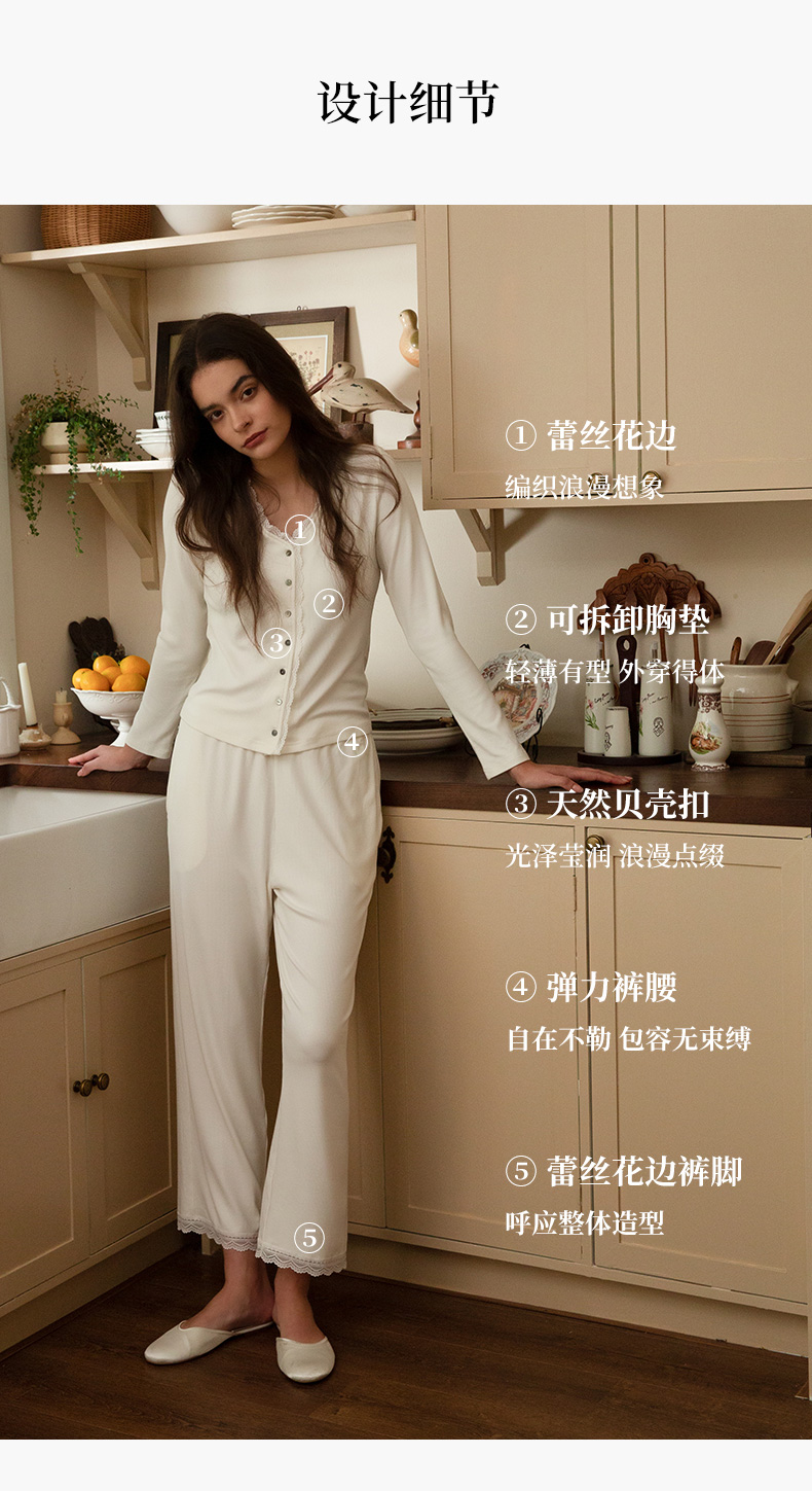 BLEO 蕾丝坑条优雅睡衣套装可外穿家居服