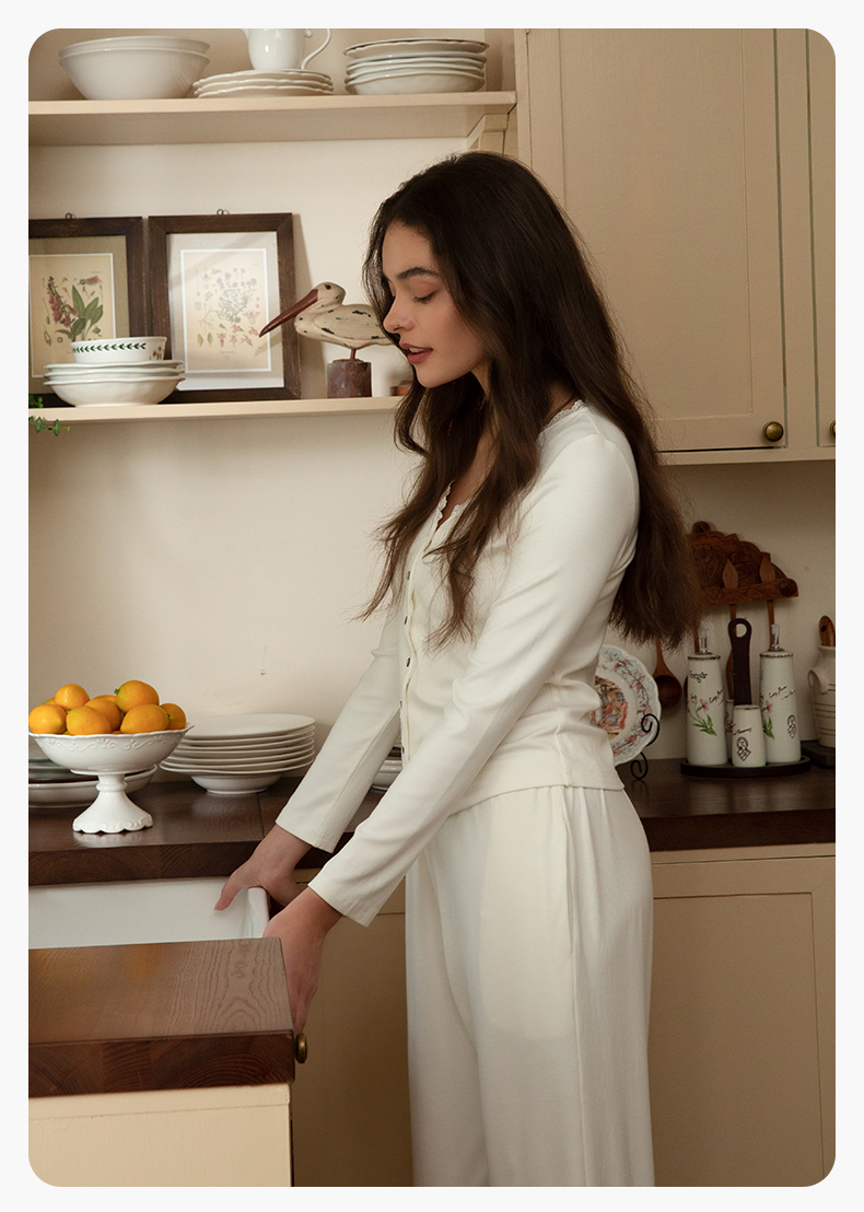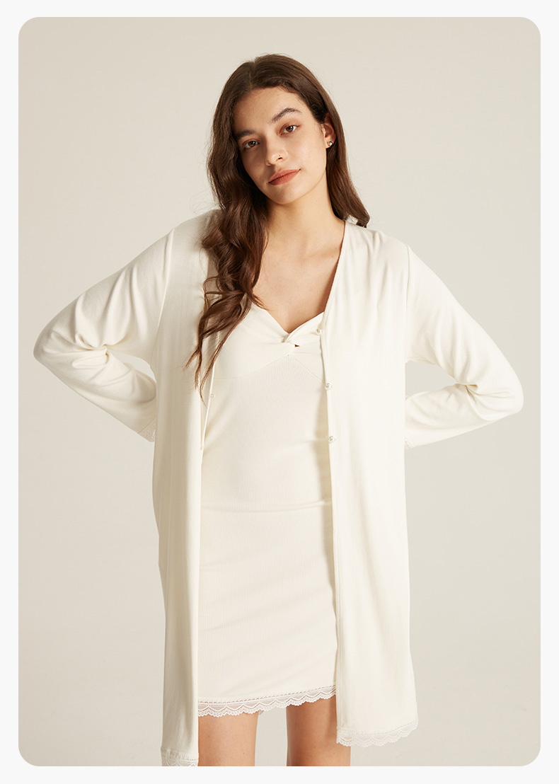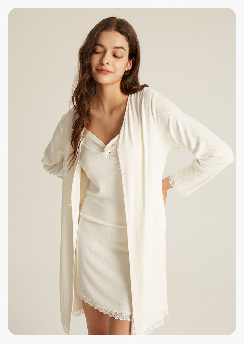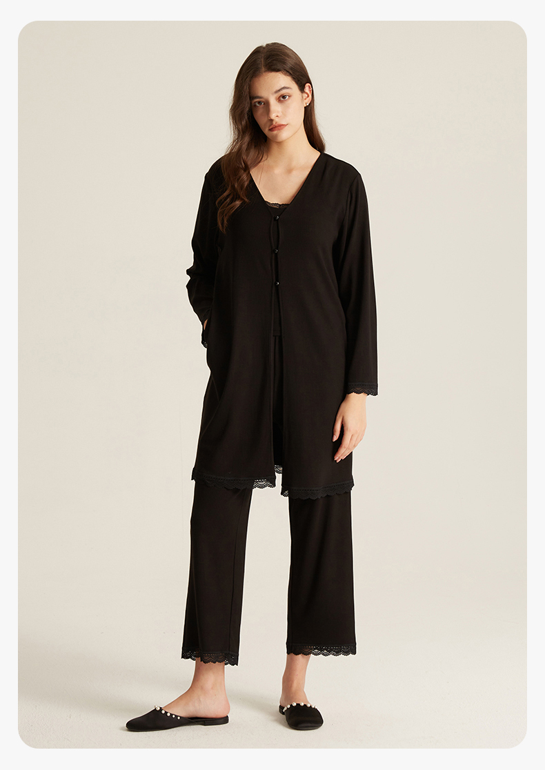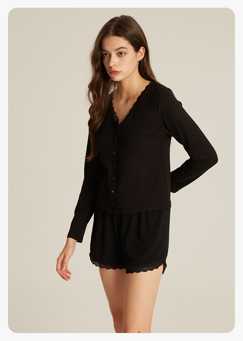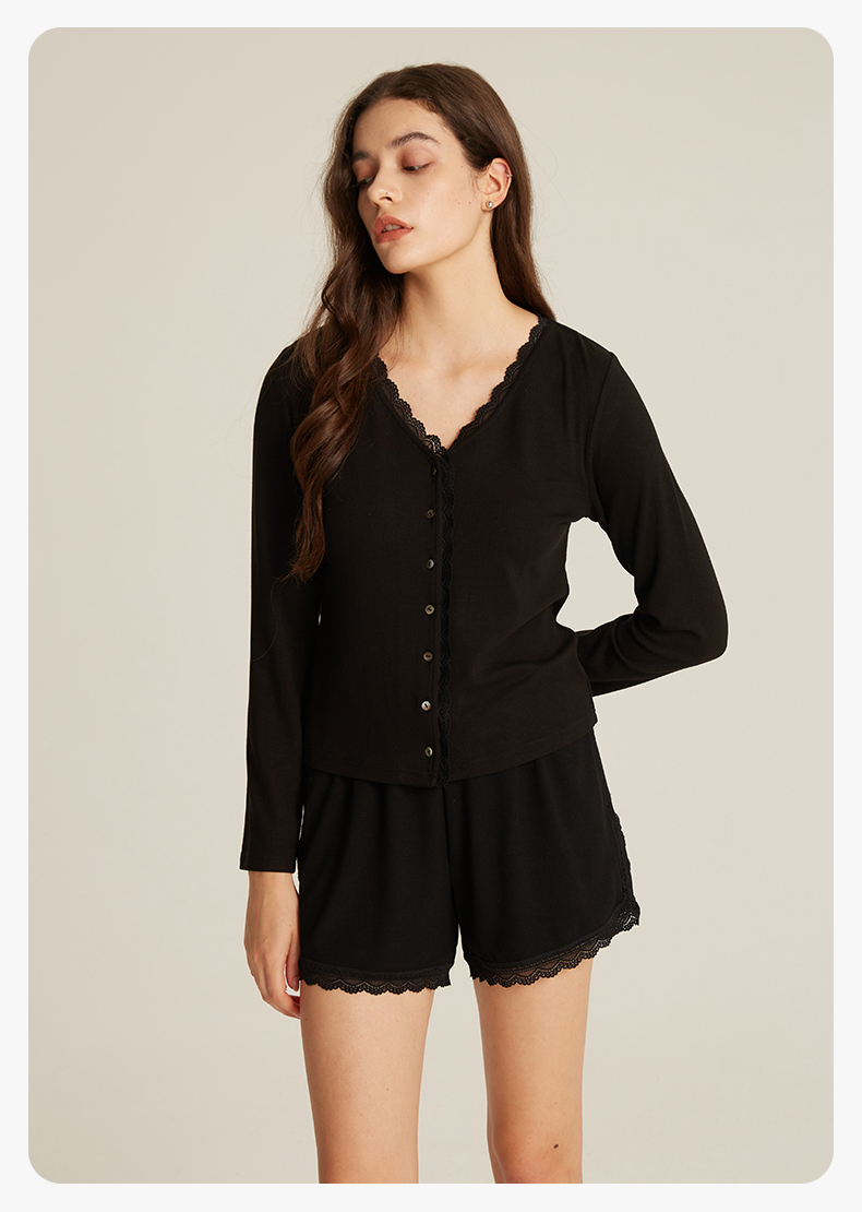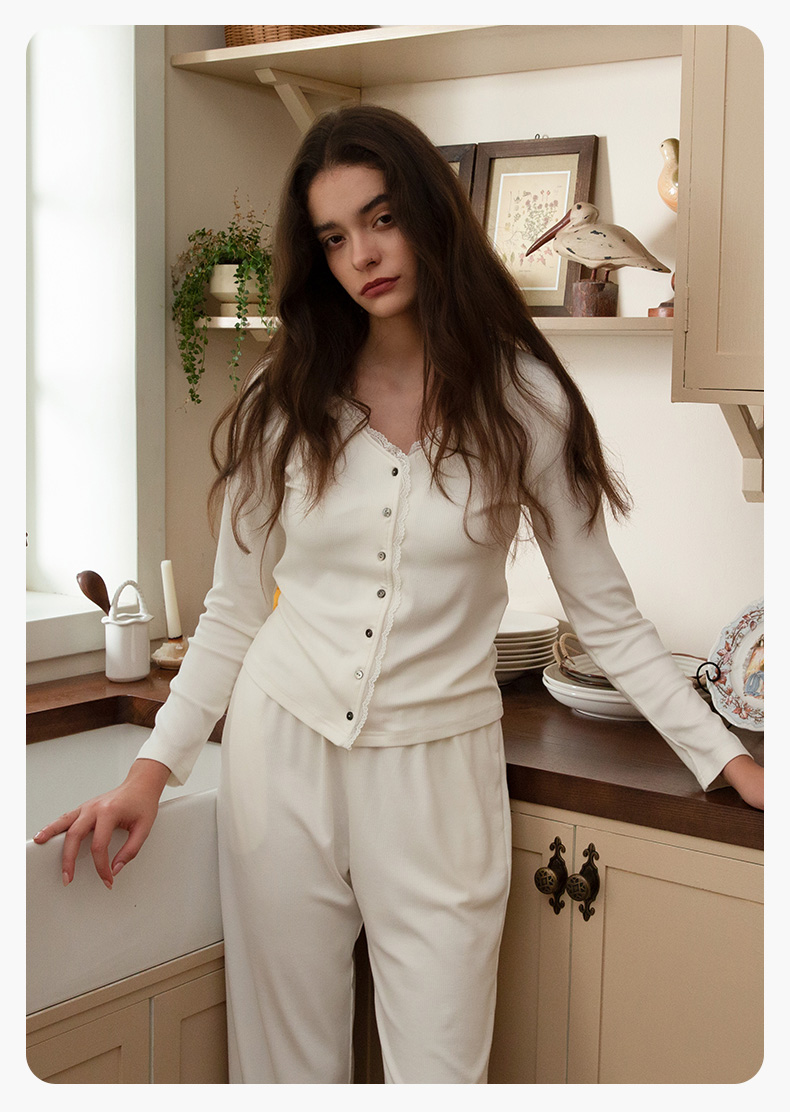 BLEO 蕾丝坑条优雅睡衣套装可外穿家居服