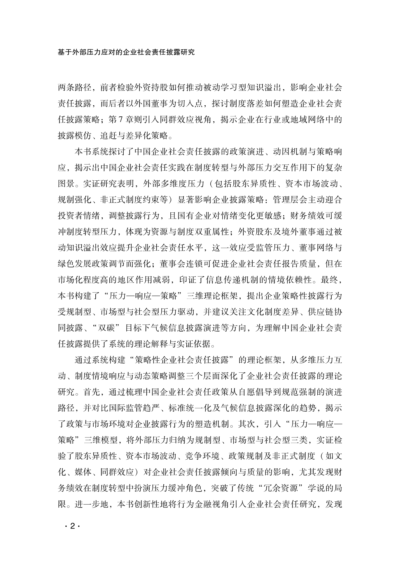 基于外部压力应对的企业社会责任披露研究